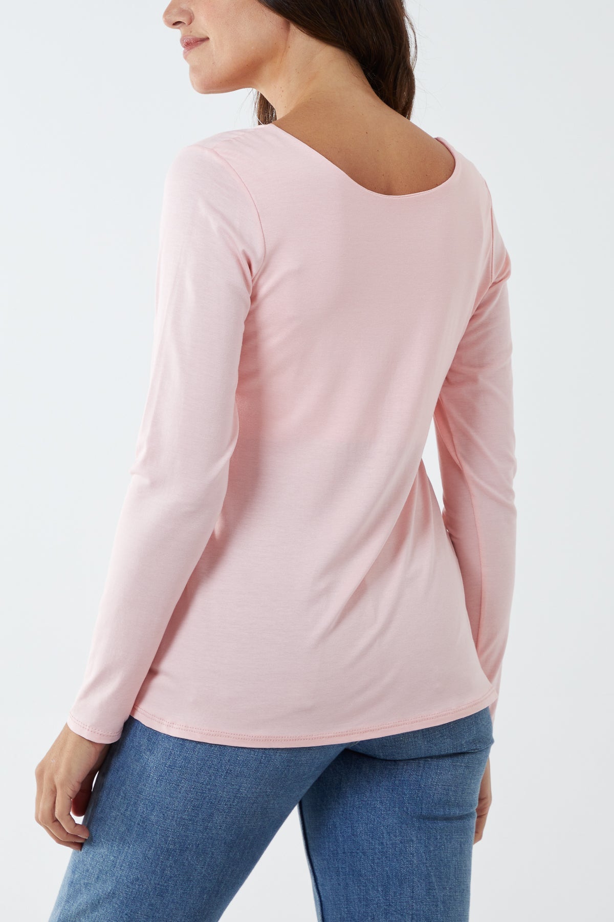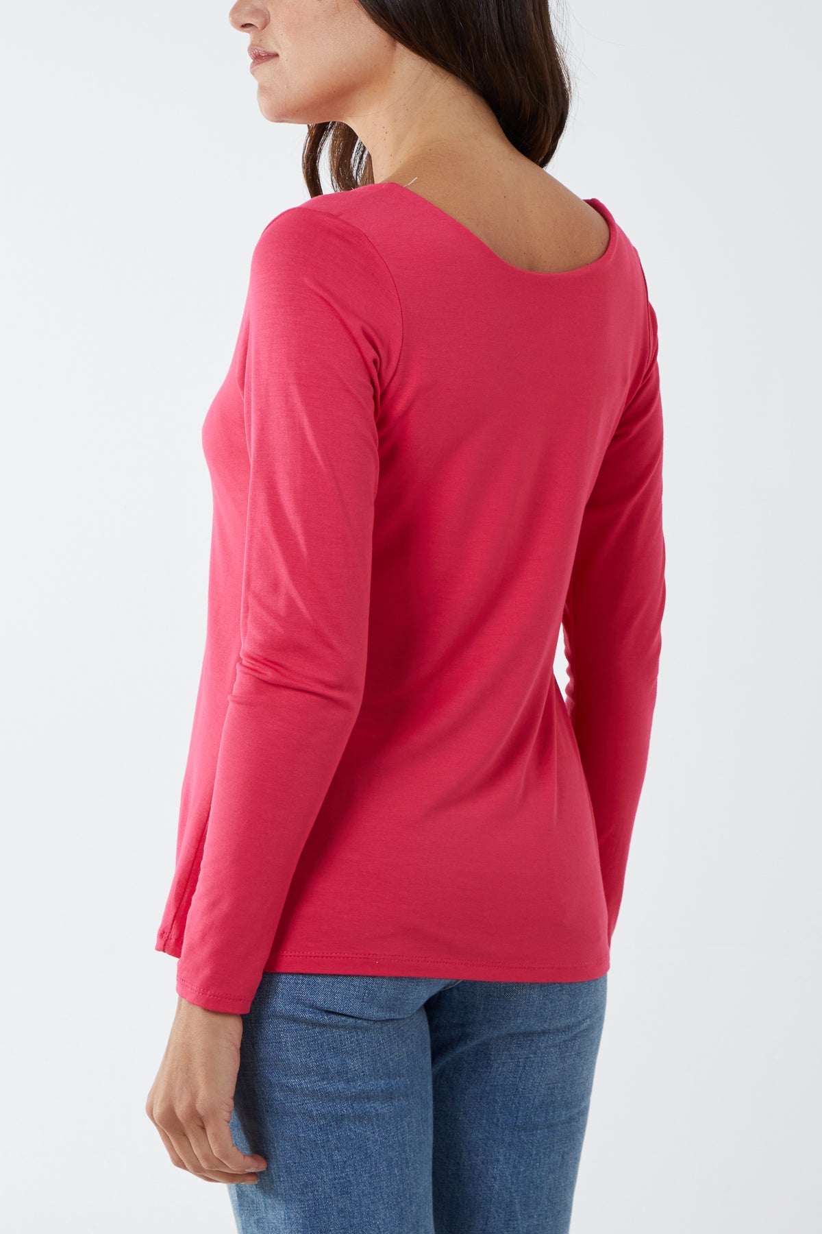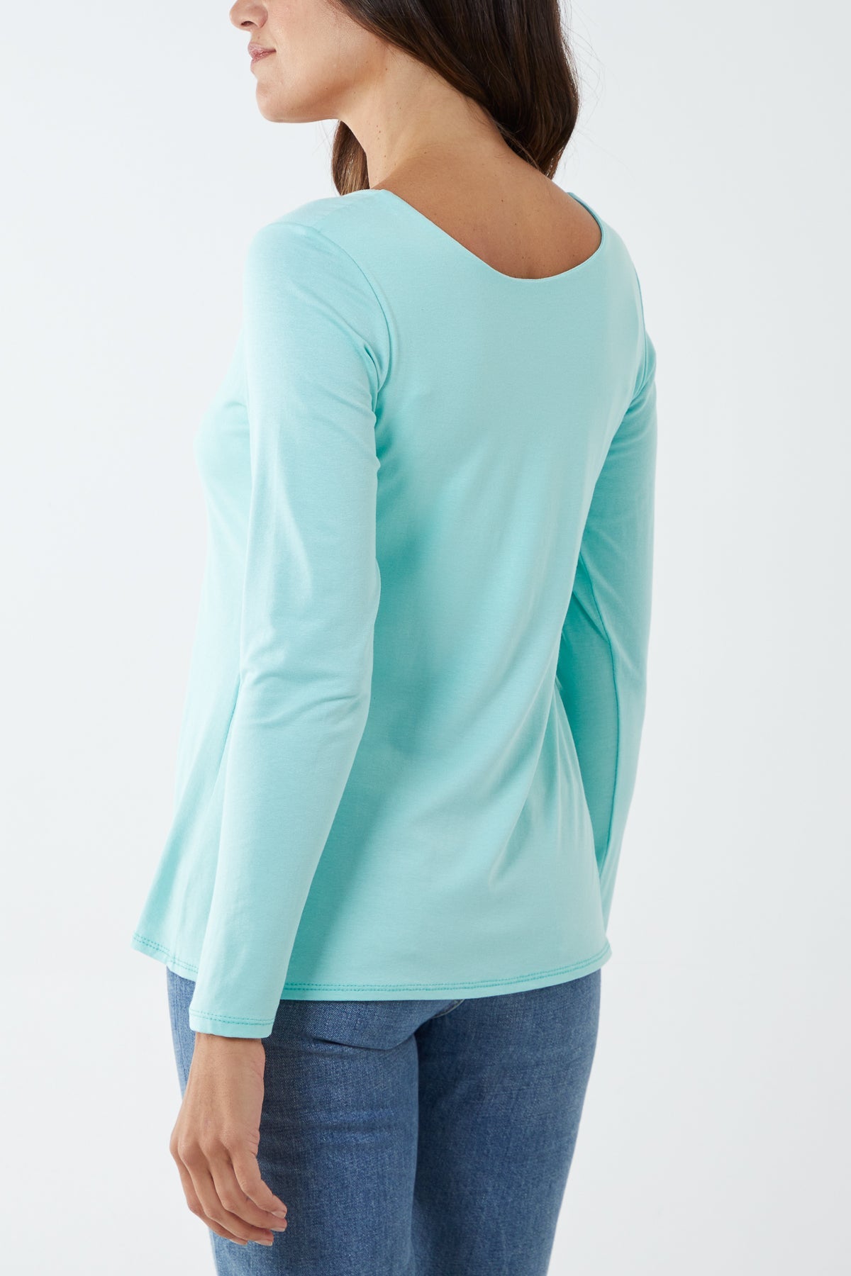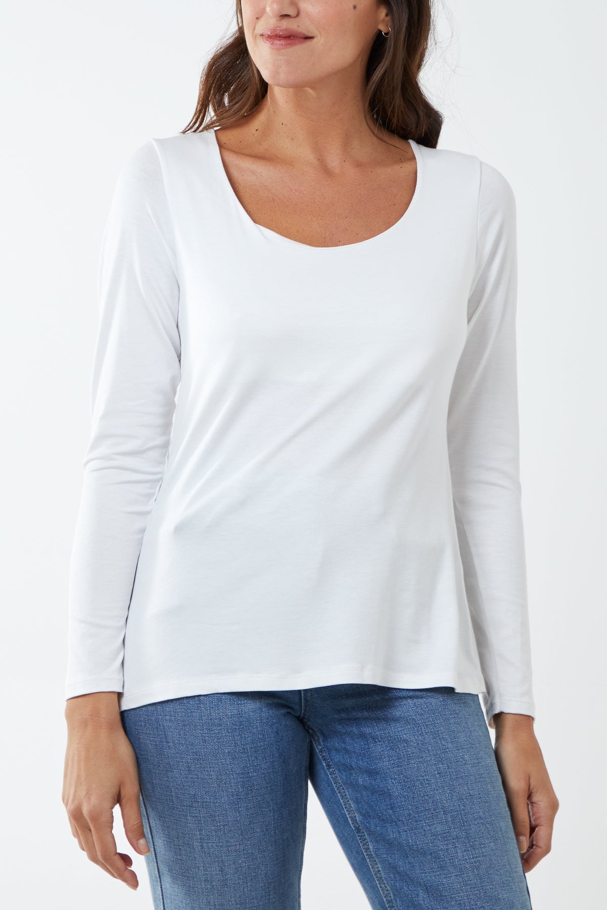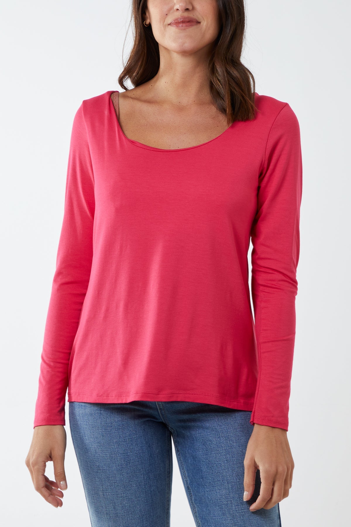 Basic Double Layer Scoop Neck Long Sleeve Top