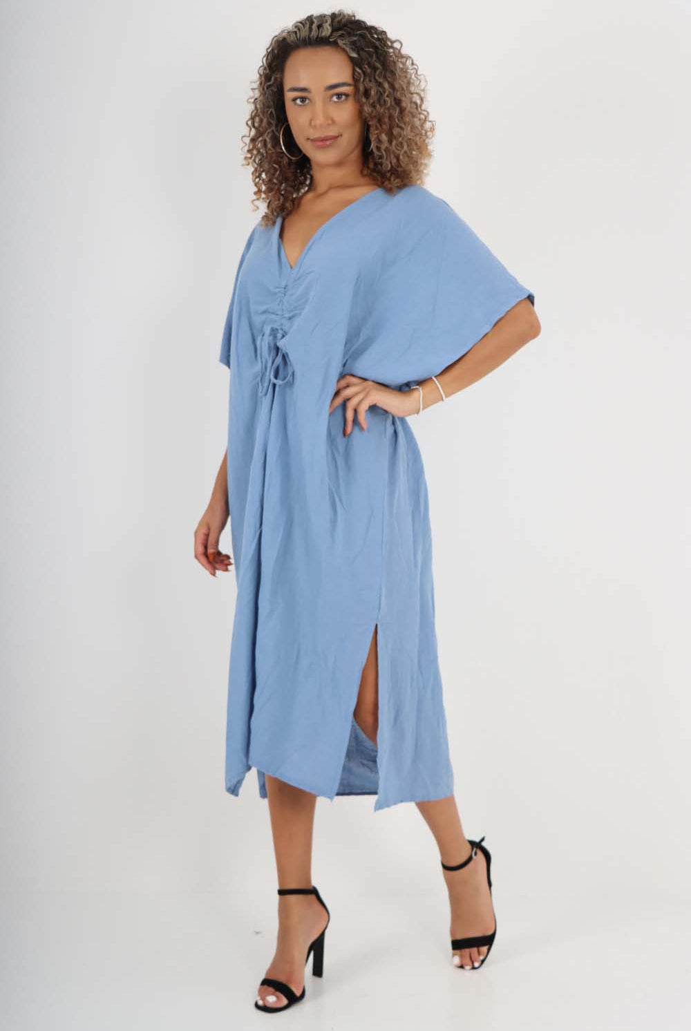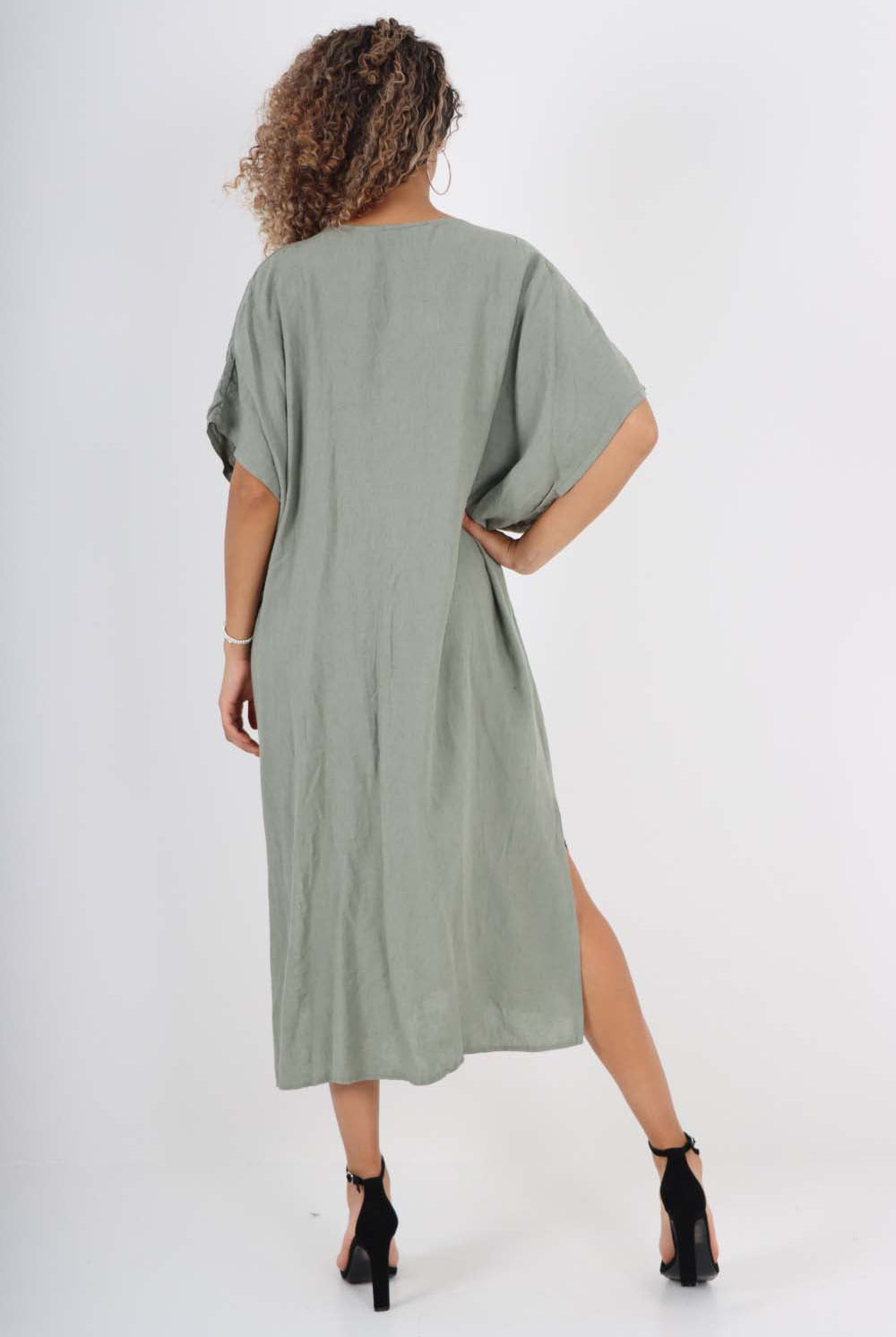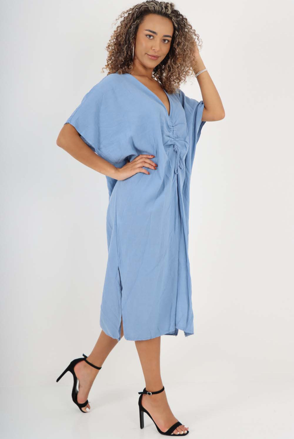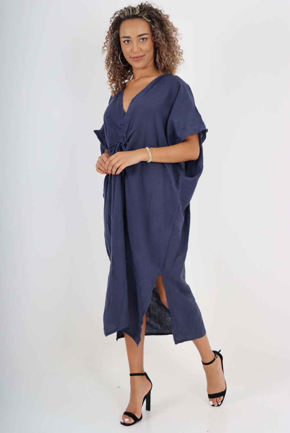 Italian Oversized V Neck Ring Detail Kaftan Dress