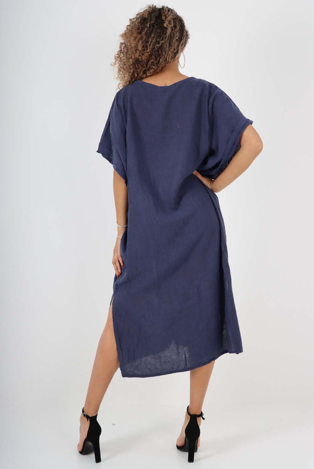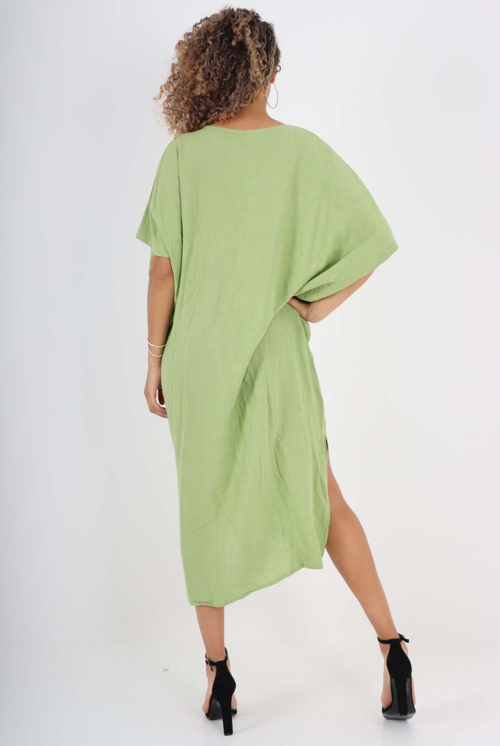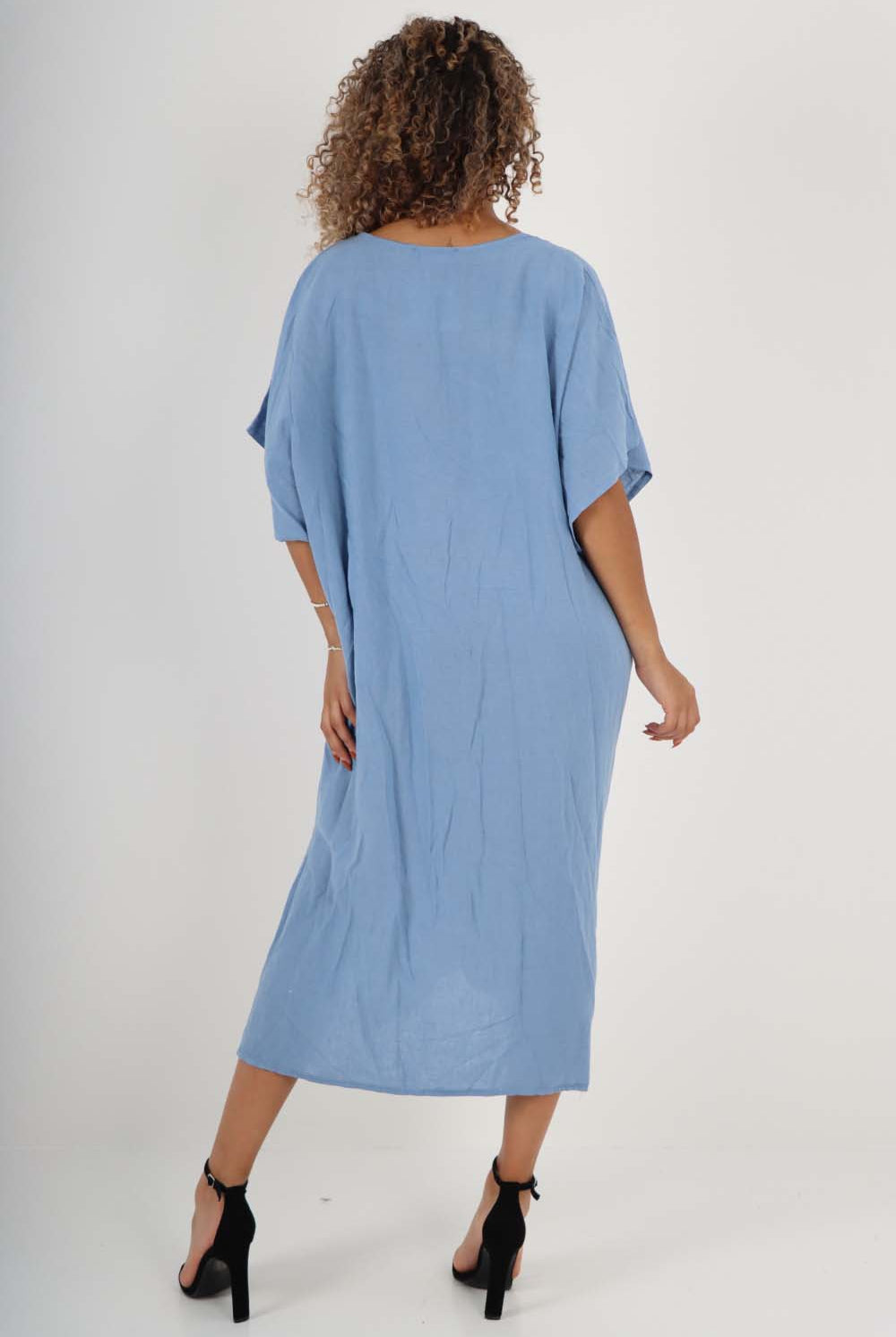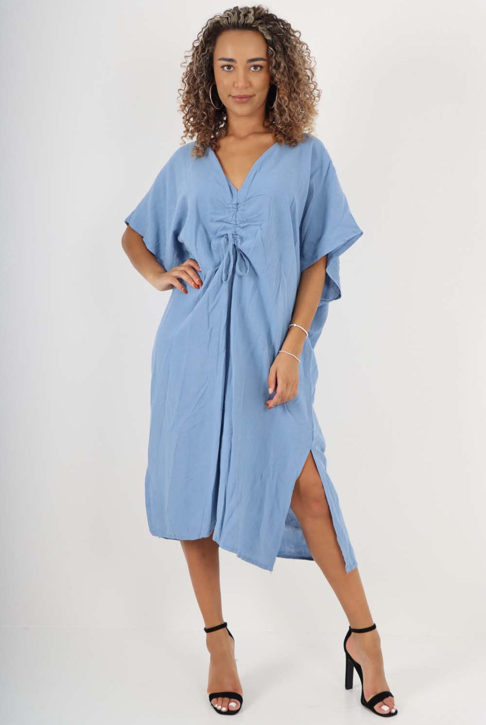 Italian Oversized V Neck Ring Detail Kaftan Dress