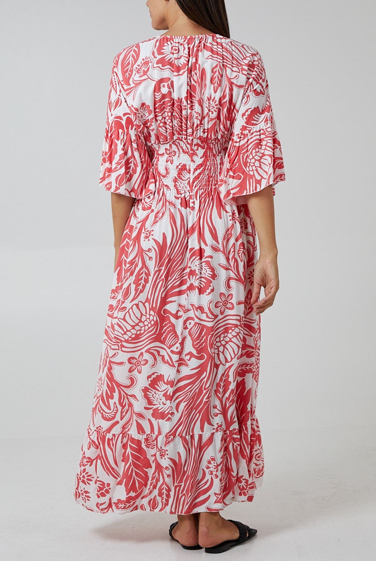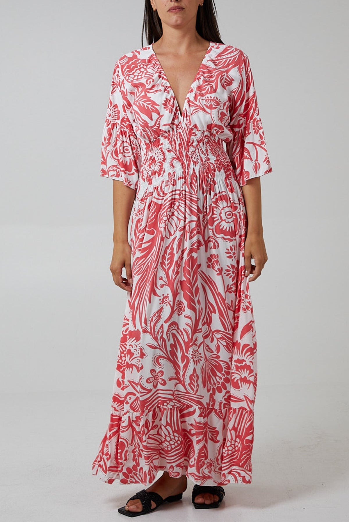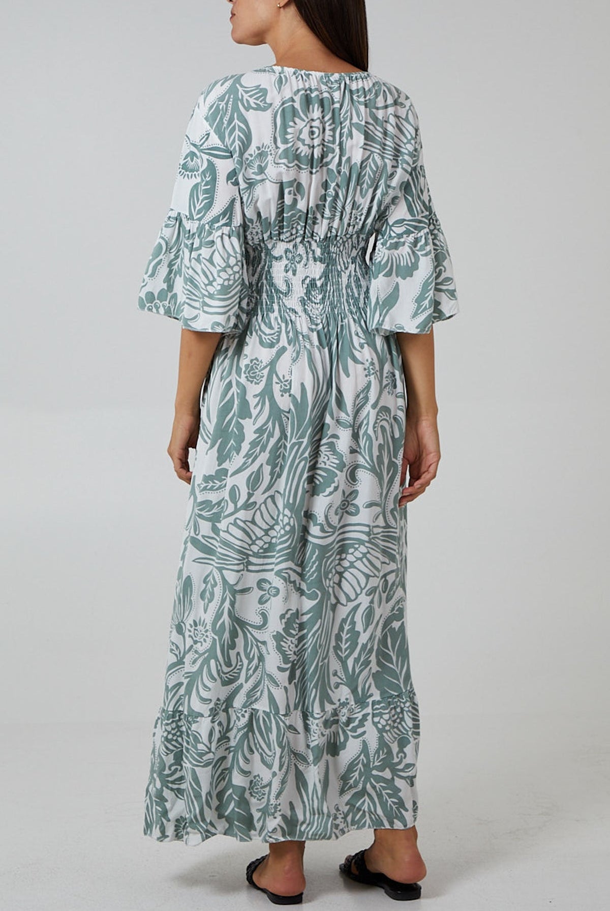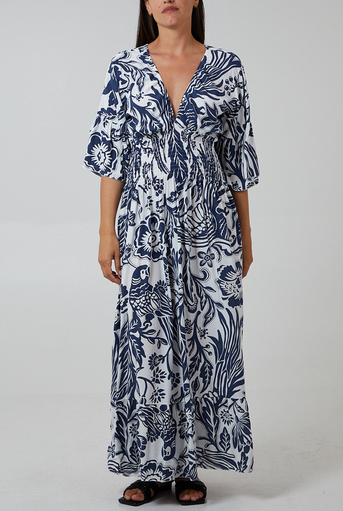 Italian Oversized V Neck Ring Detail Kaftan Dress