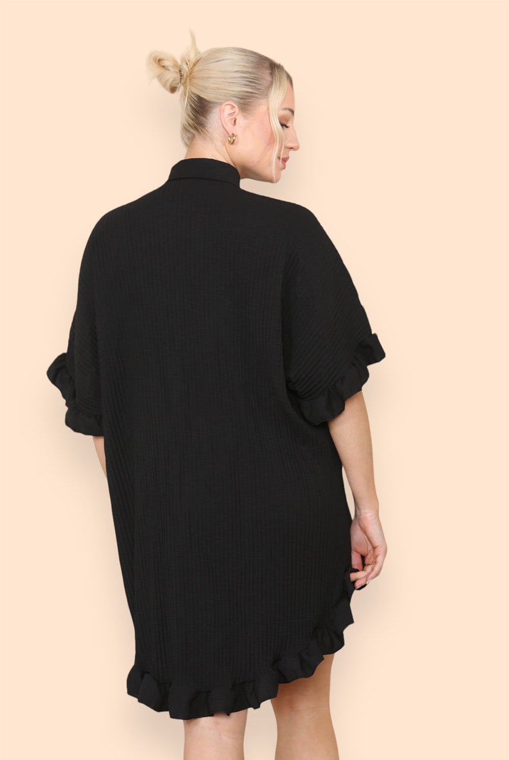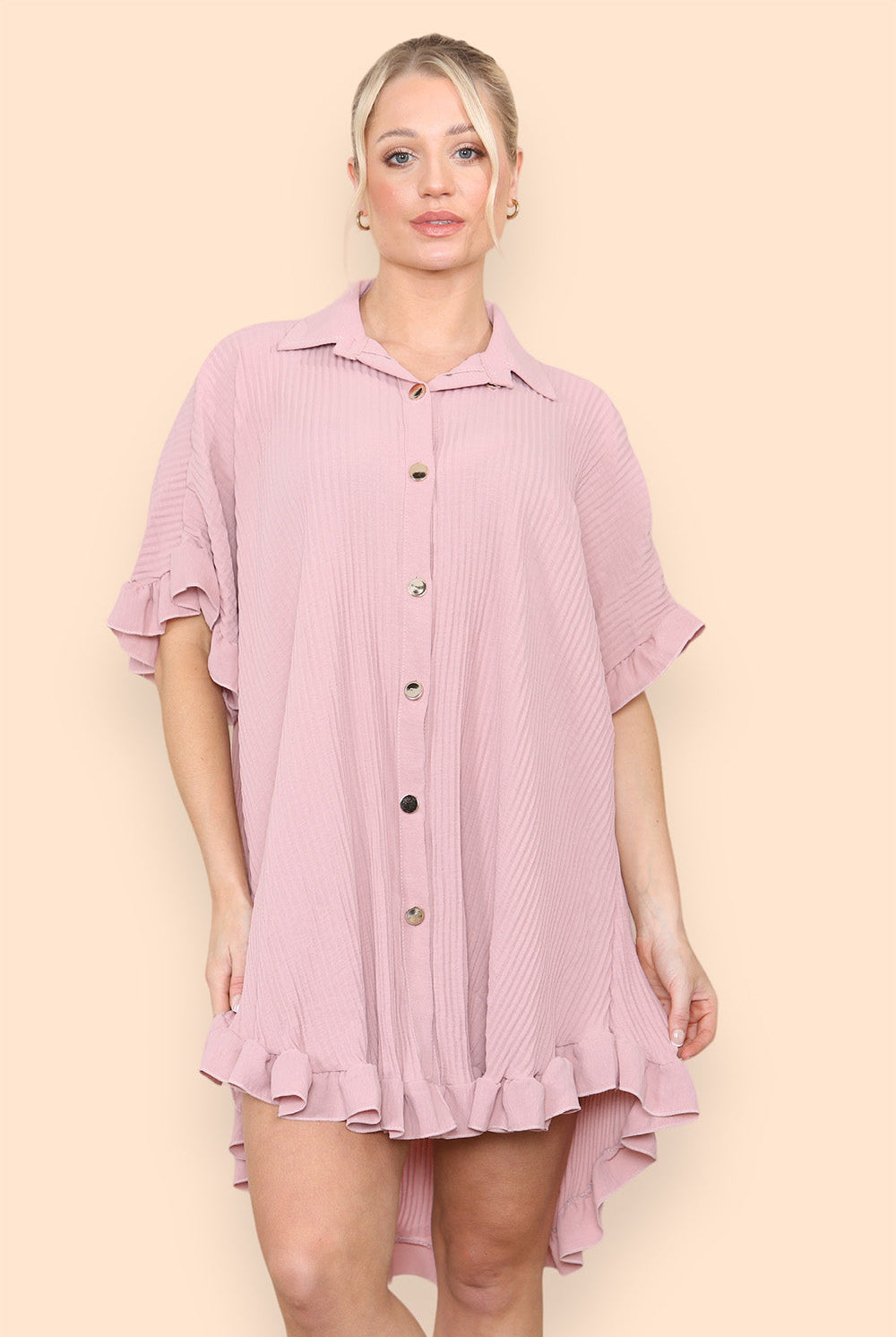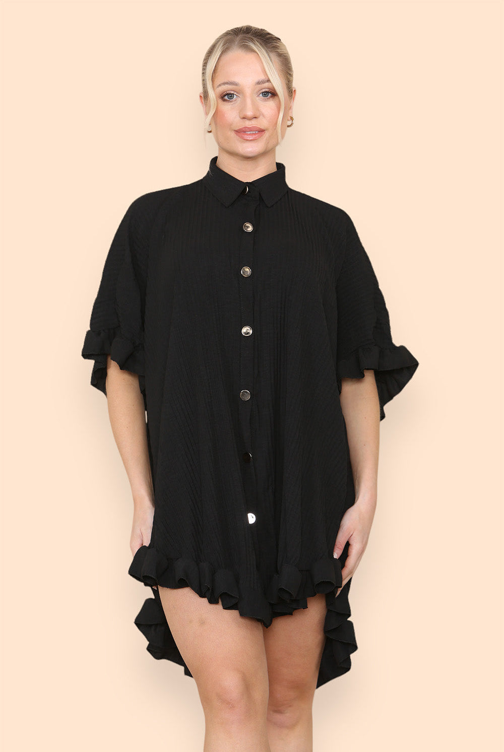 OverSized Italian Gold Button Pleated Frill Ruffle Dress Top