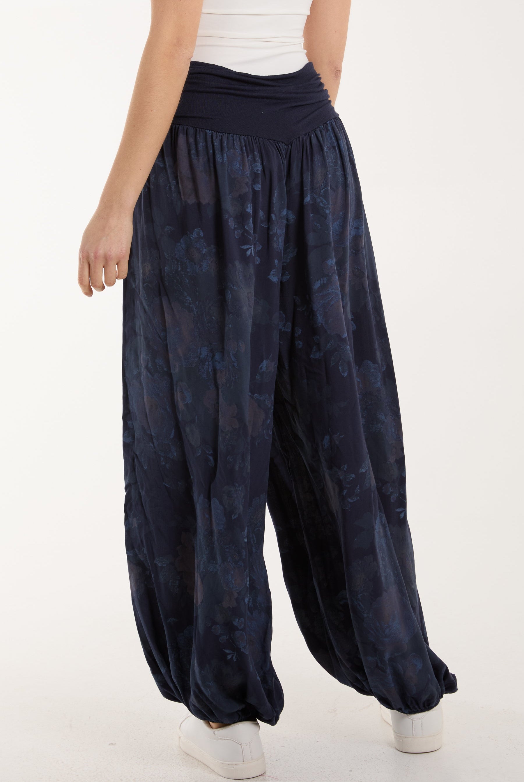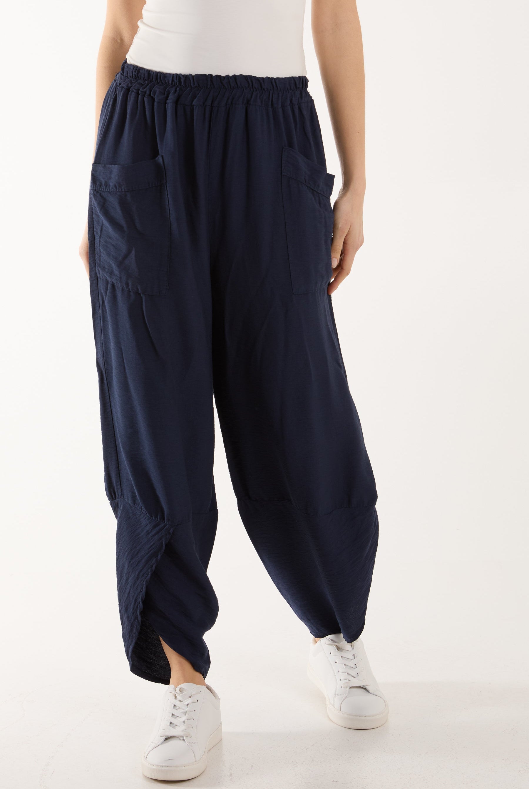 XL Drawstring Viscose Crepe Wide Leg Trousers