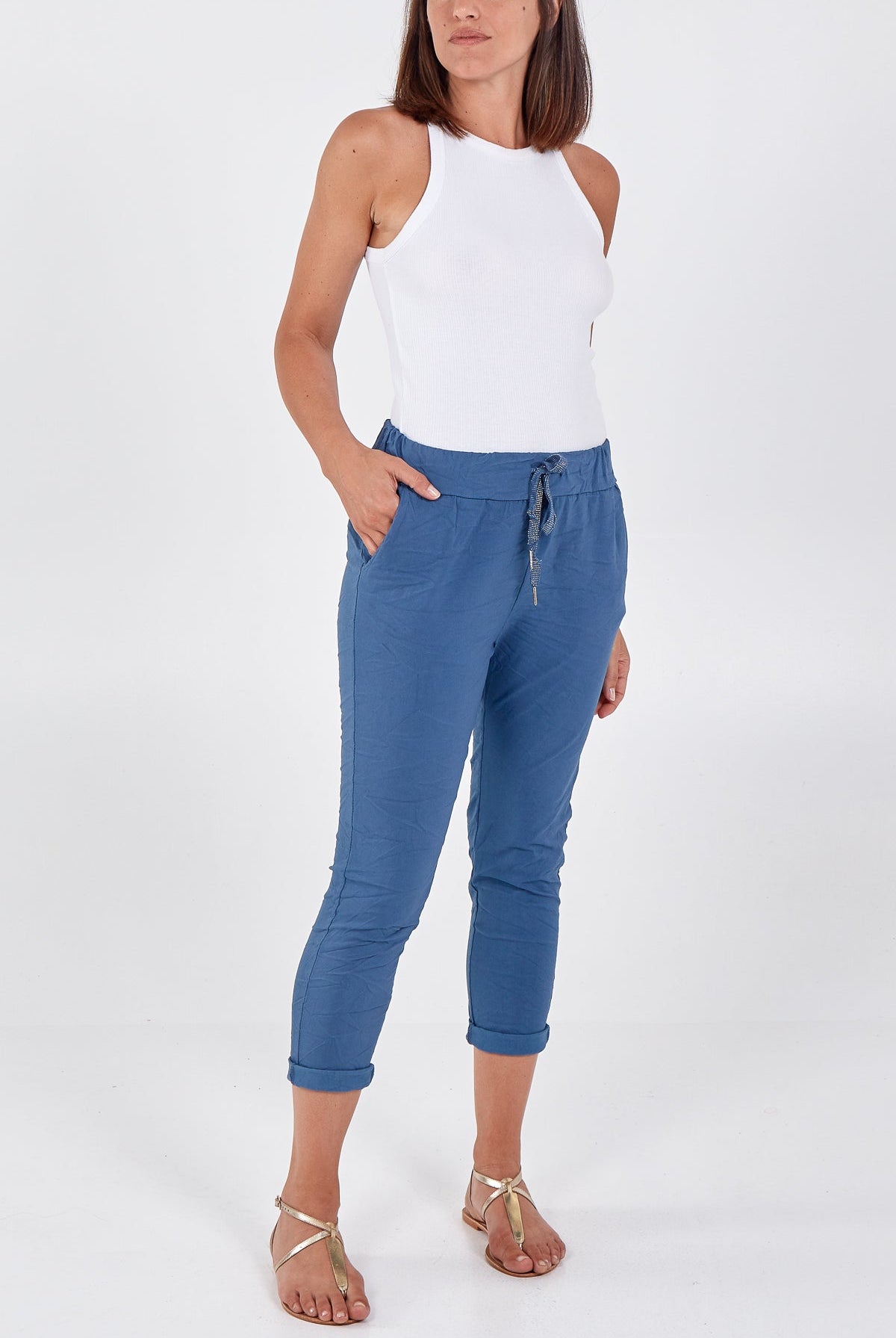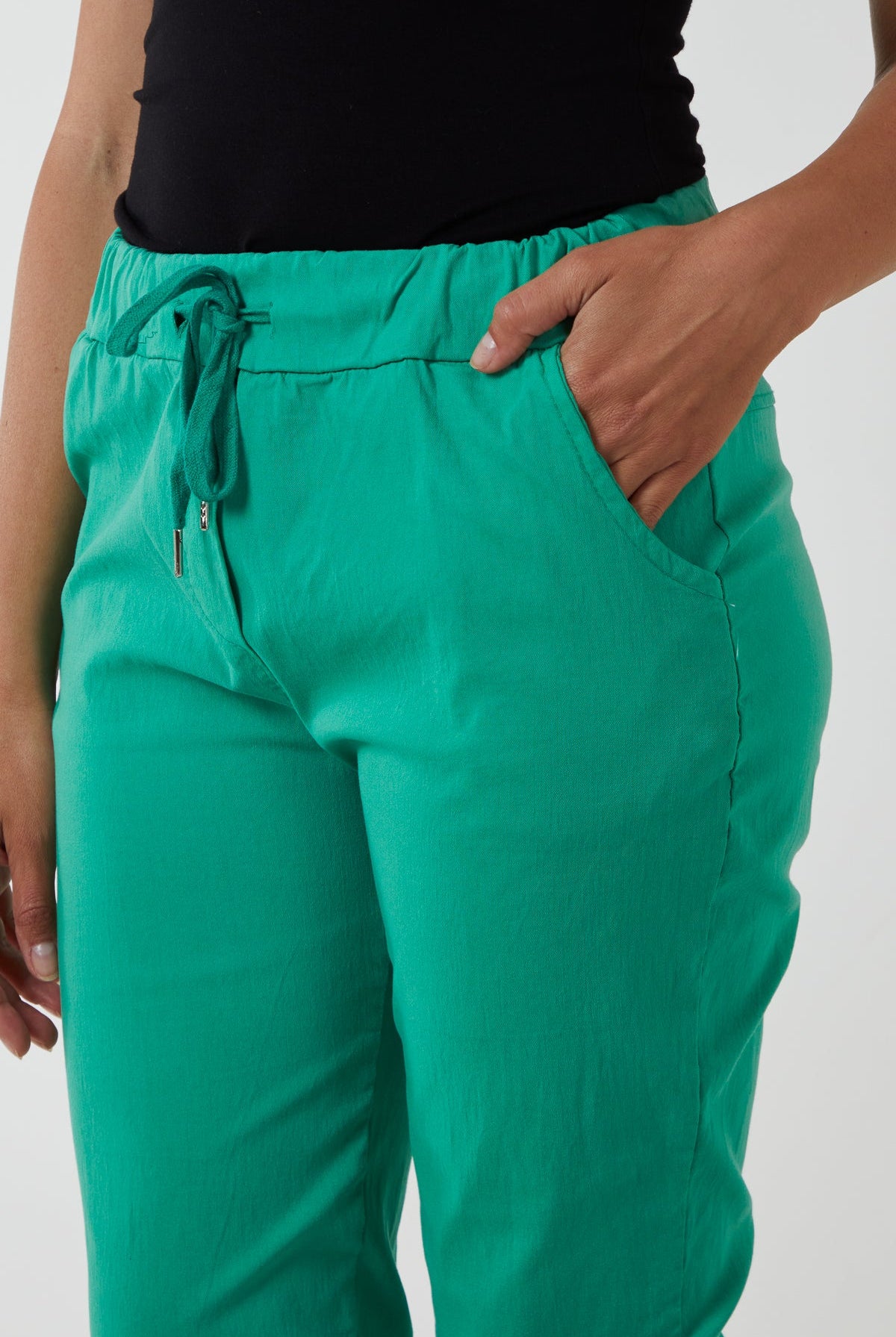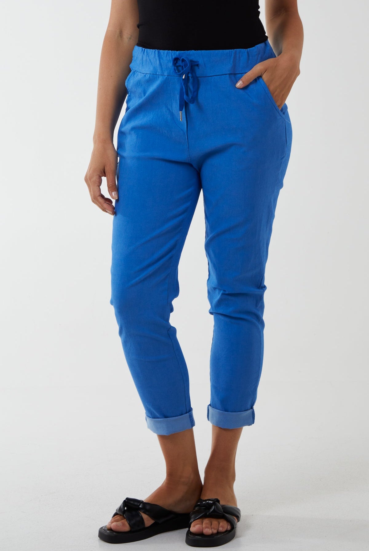Italian Plain Basic Drawstring Joggers Cotton Trousers
