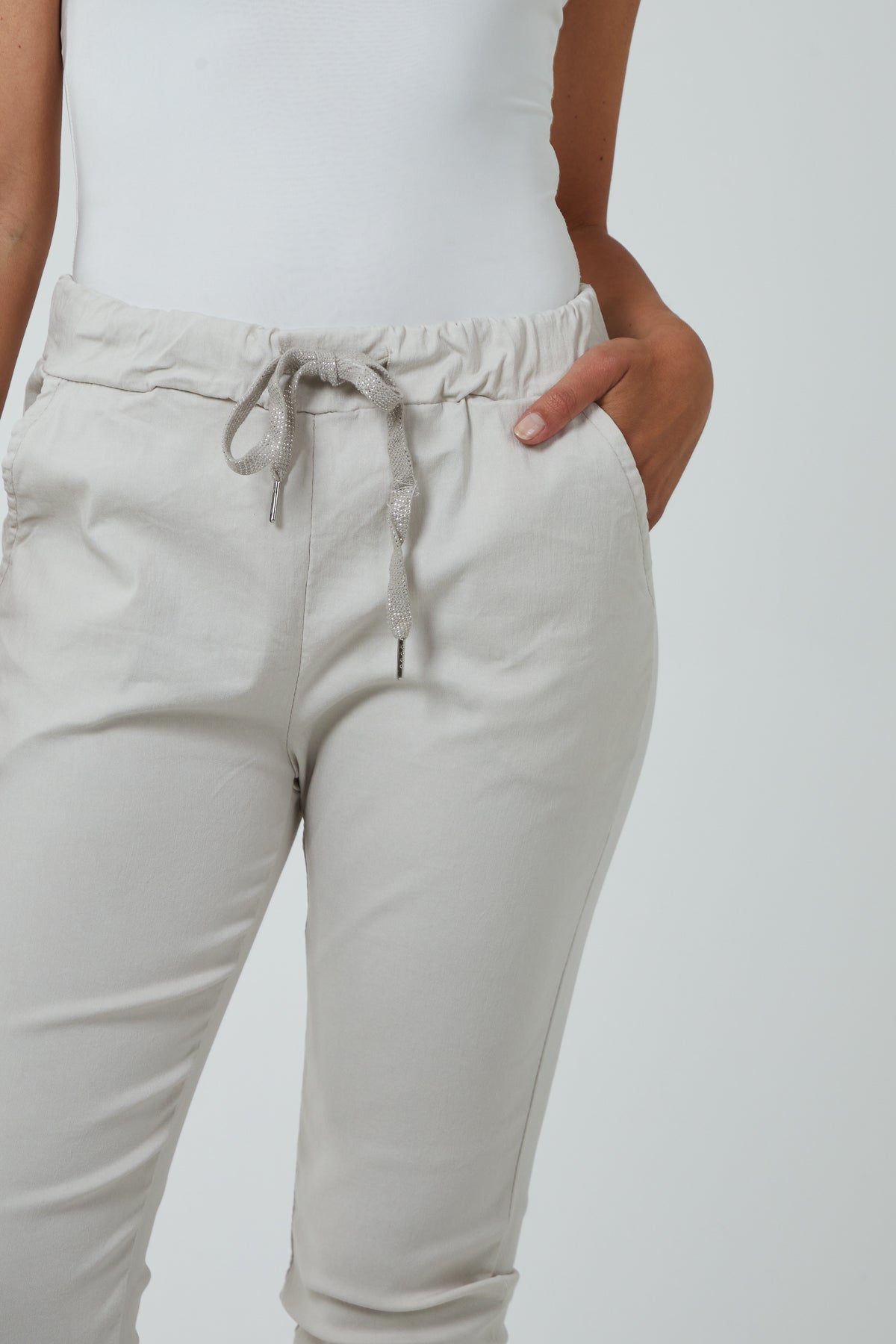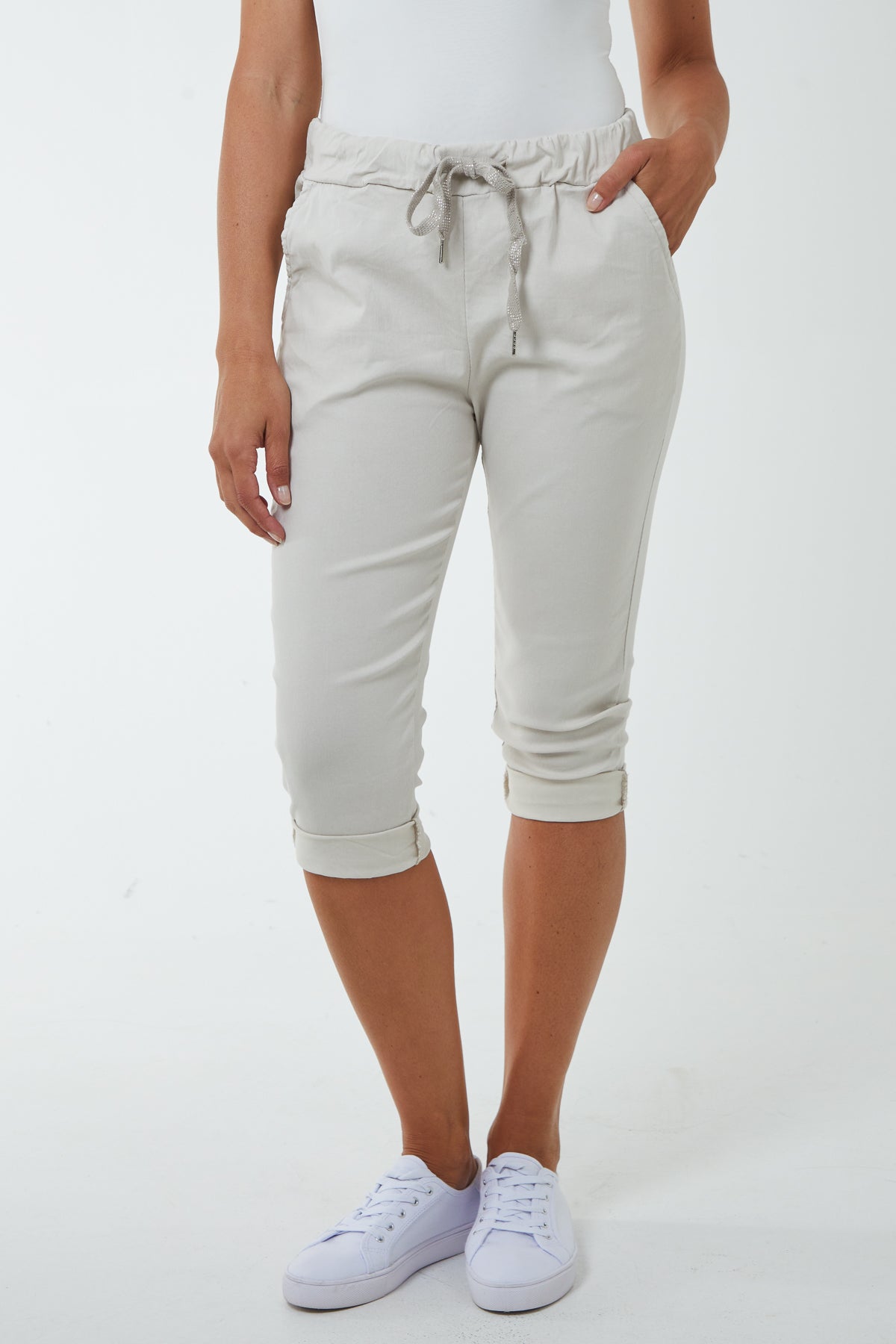 Glitter Drawstring Pocket Capri Trousers