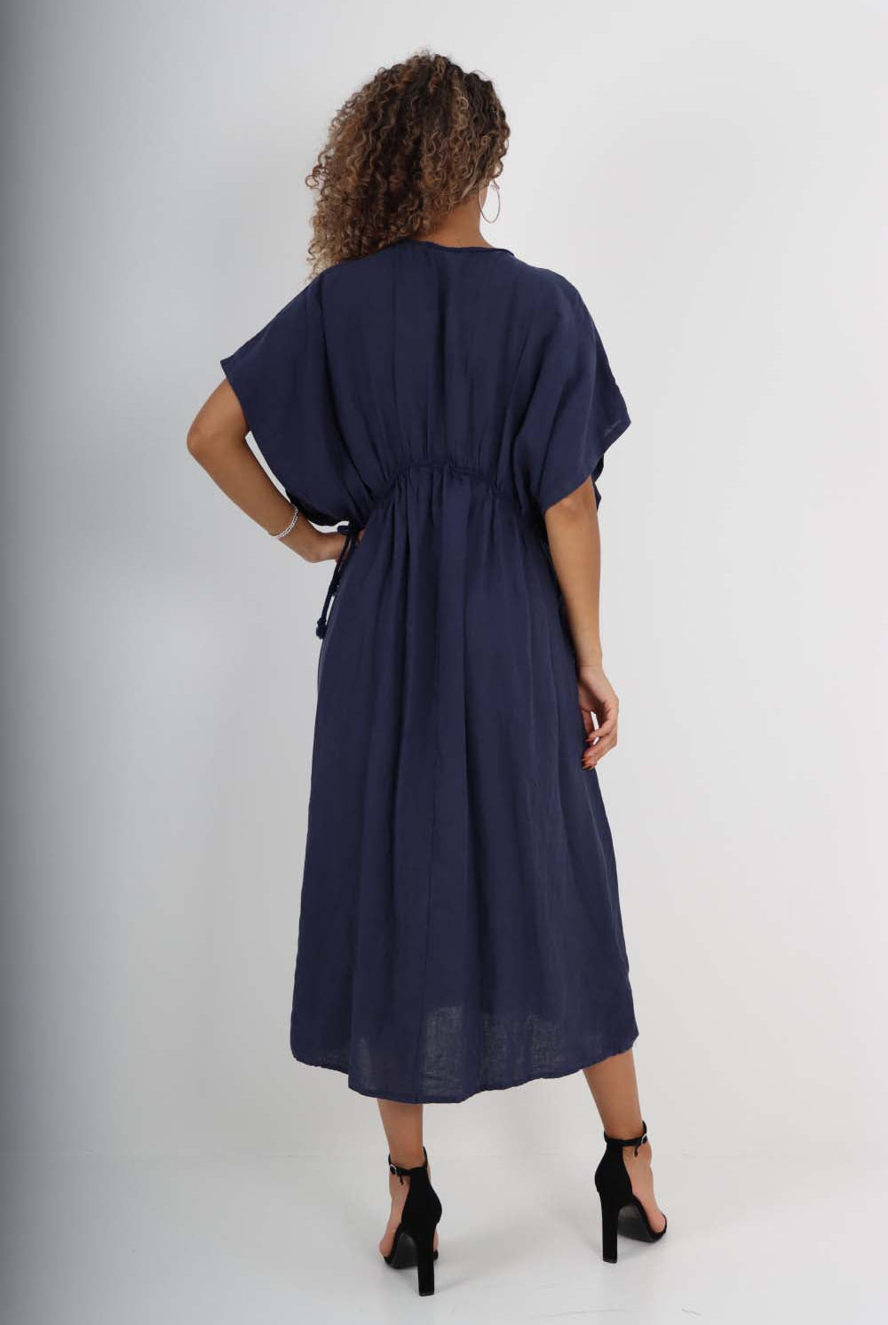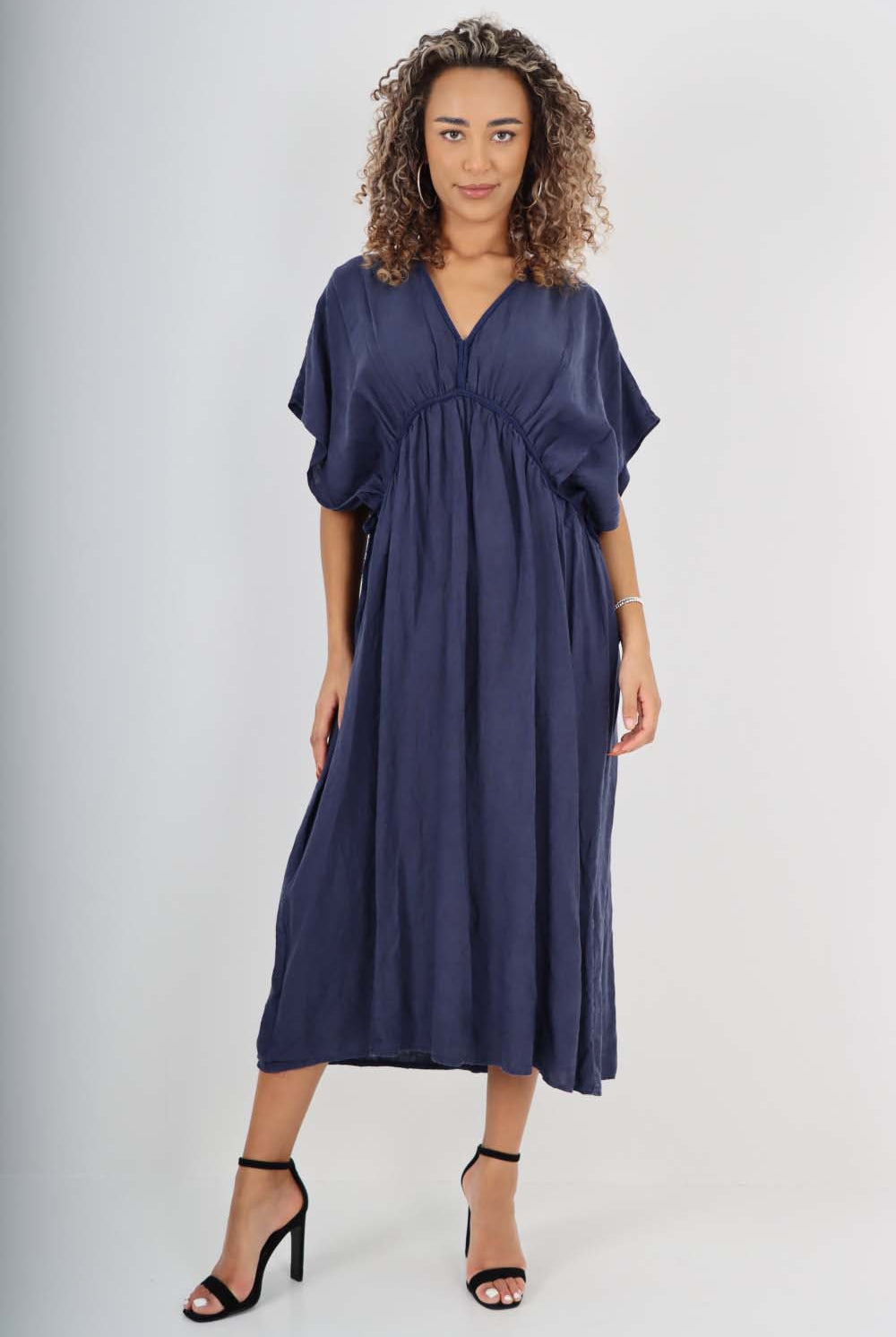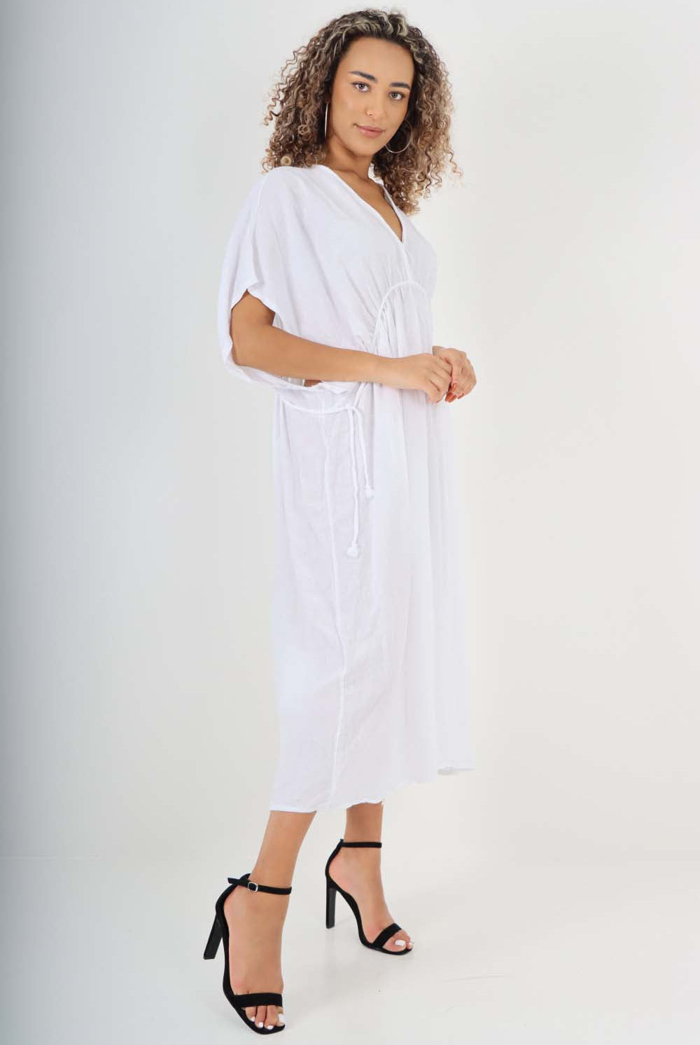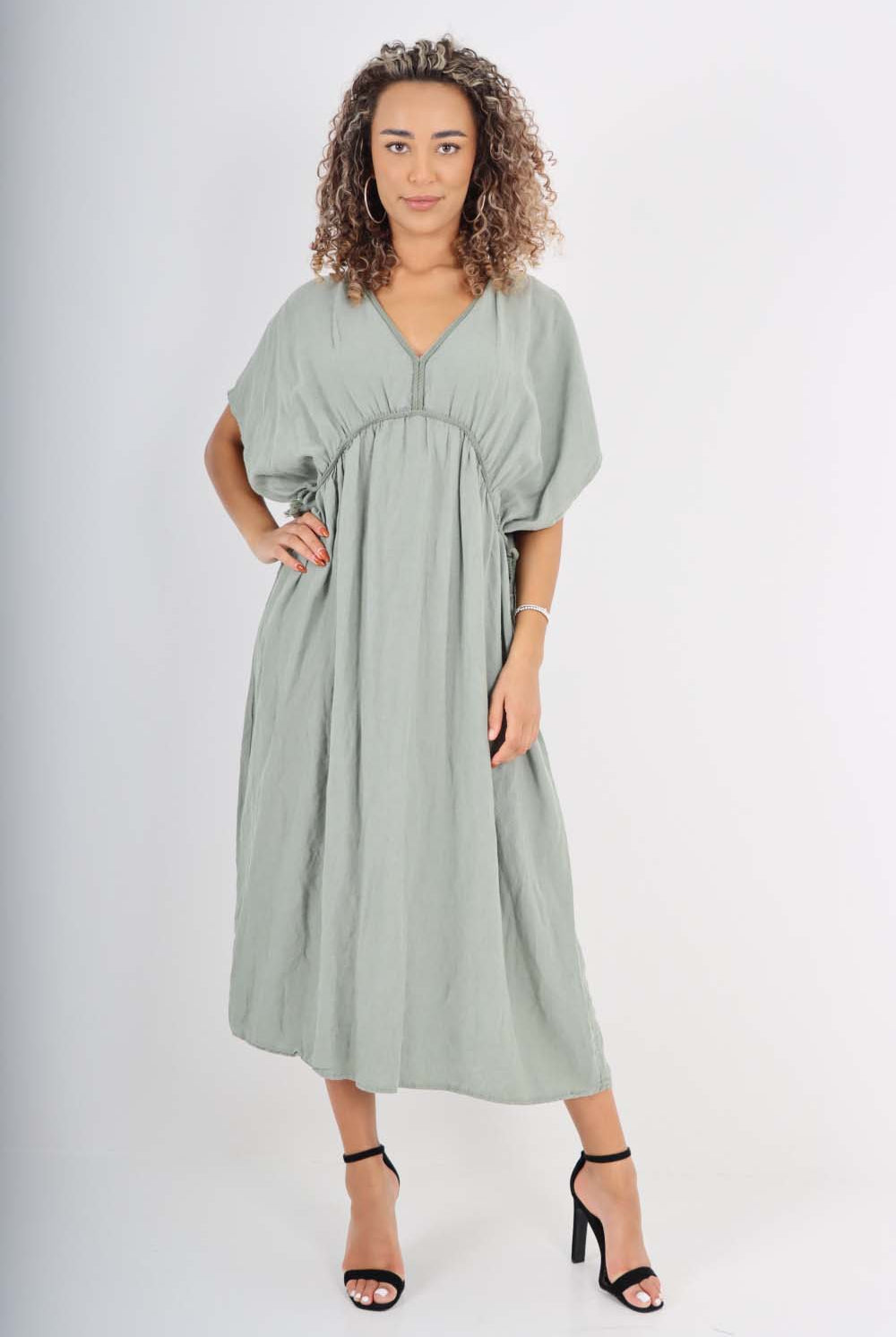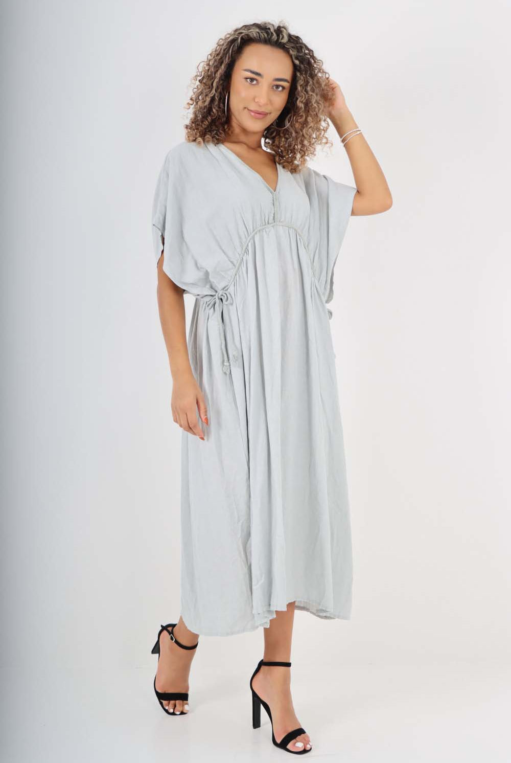 Italian Oversized V Neck Ring Detail Kaftan Dress