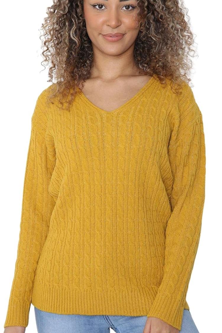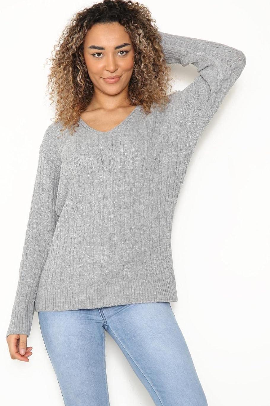 Classic V-Neck Cable Knit Sweater: Elevate your style with this cable knitted sweater featuring a timeless V-neckline and long sleeves.