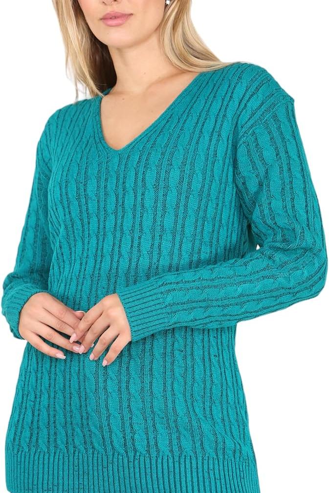 Prepare for the season with this classic Cable Knitted V-Neck Sweater Top. Crafted from a premium blend of materials, including 95% Acrylic and 5% Elastane, this sweater offers a comfortable fit with just the right amount of stretch. The classic cable-knitted pattern adds a touch of timeless elegance to your wardrobe.