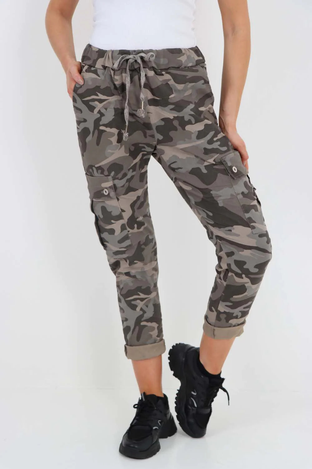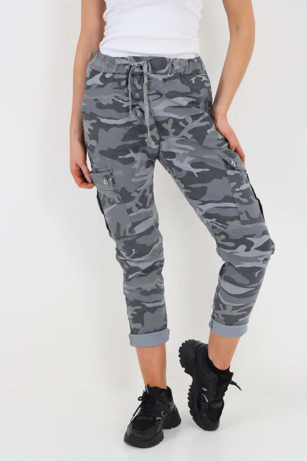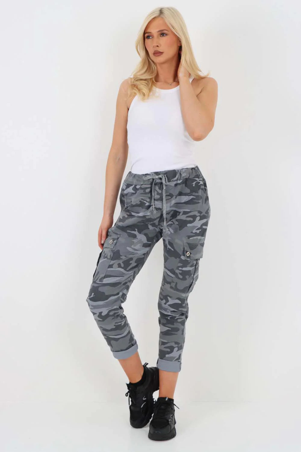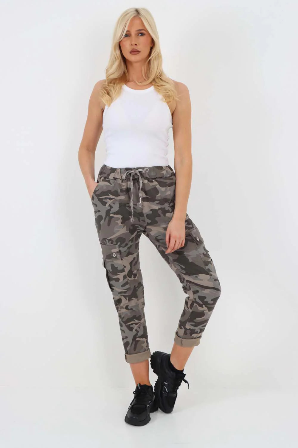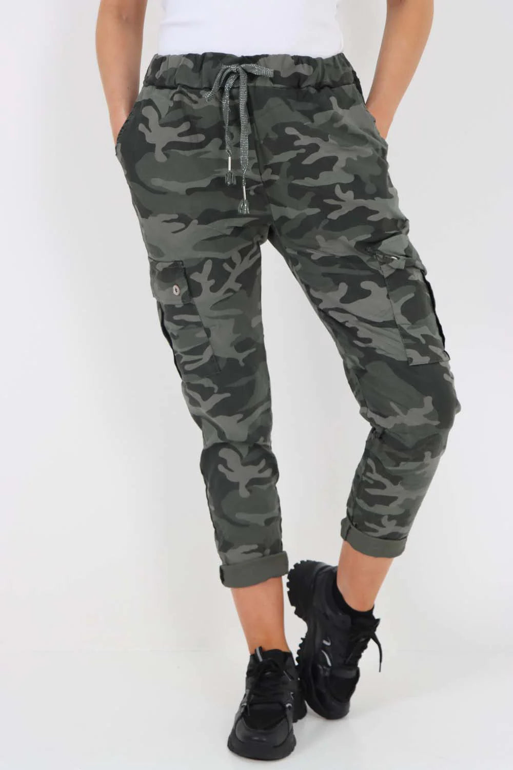 Italian Drawstring Camo Side Pockets Cargo Trousers