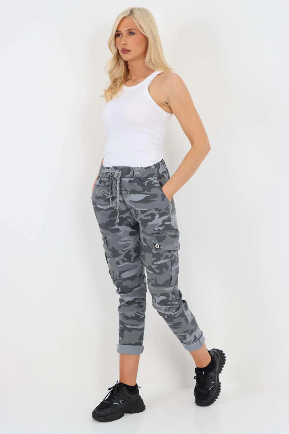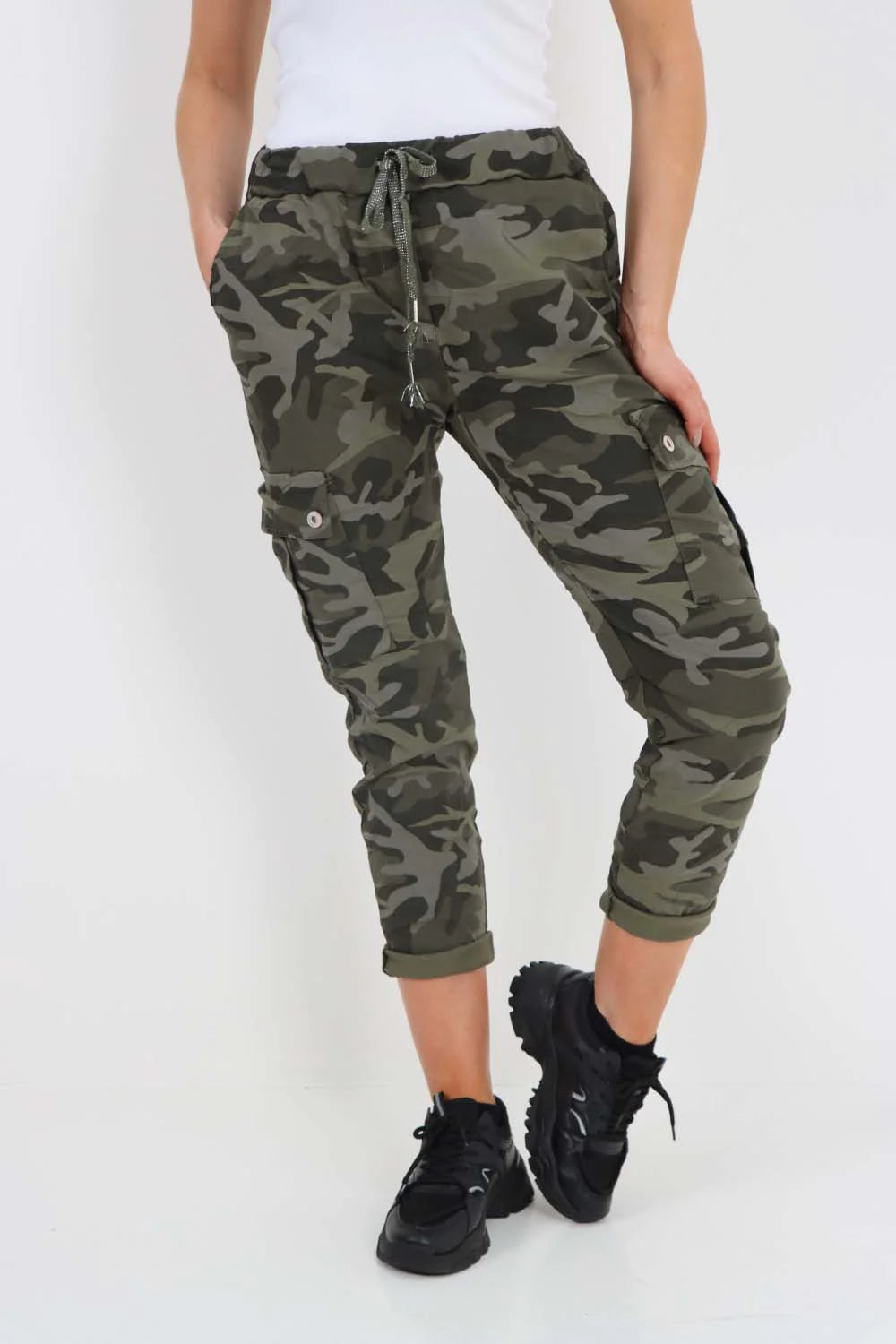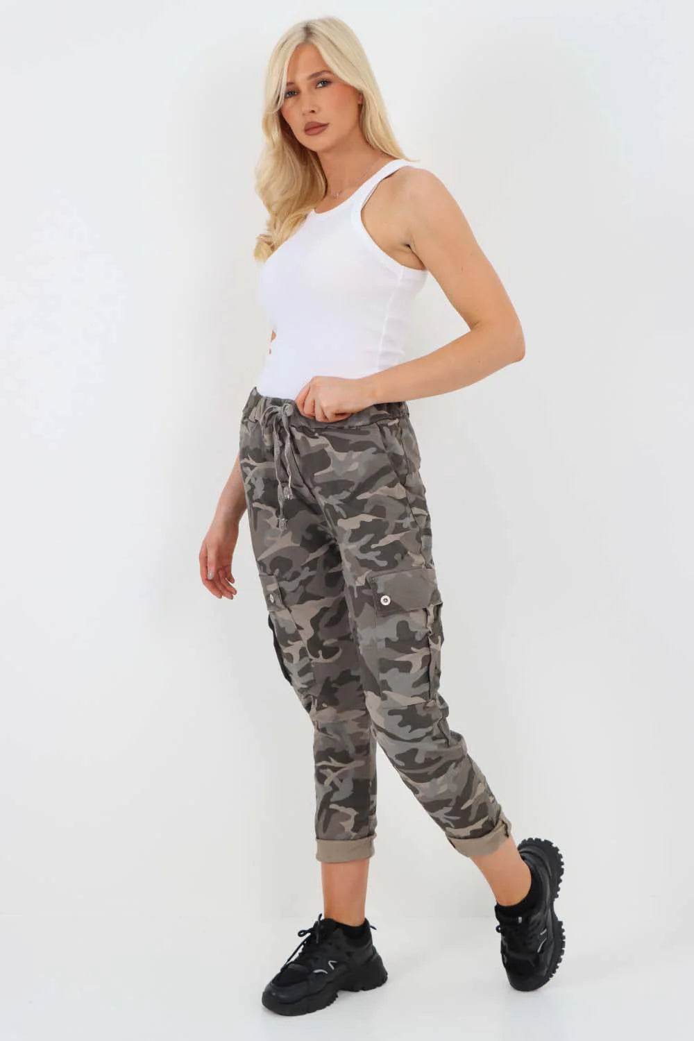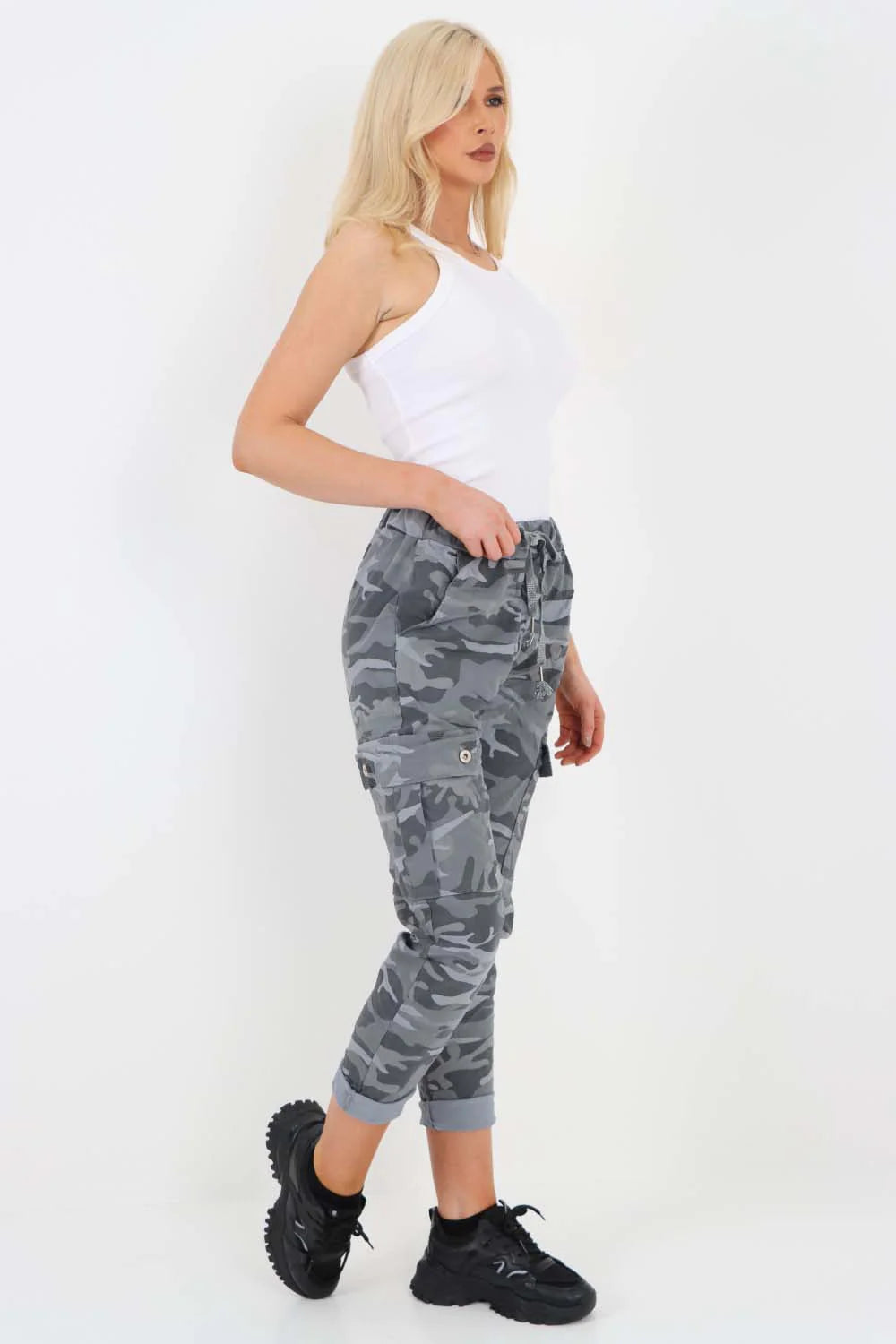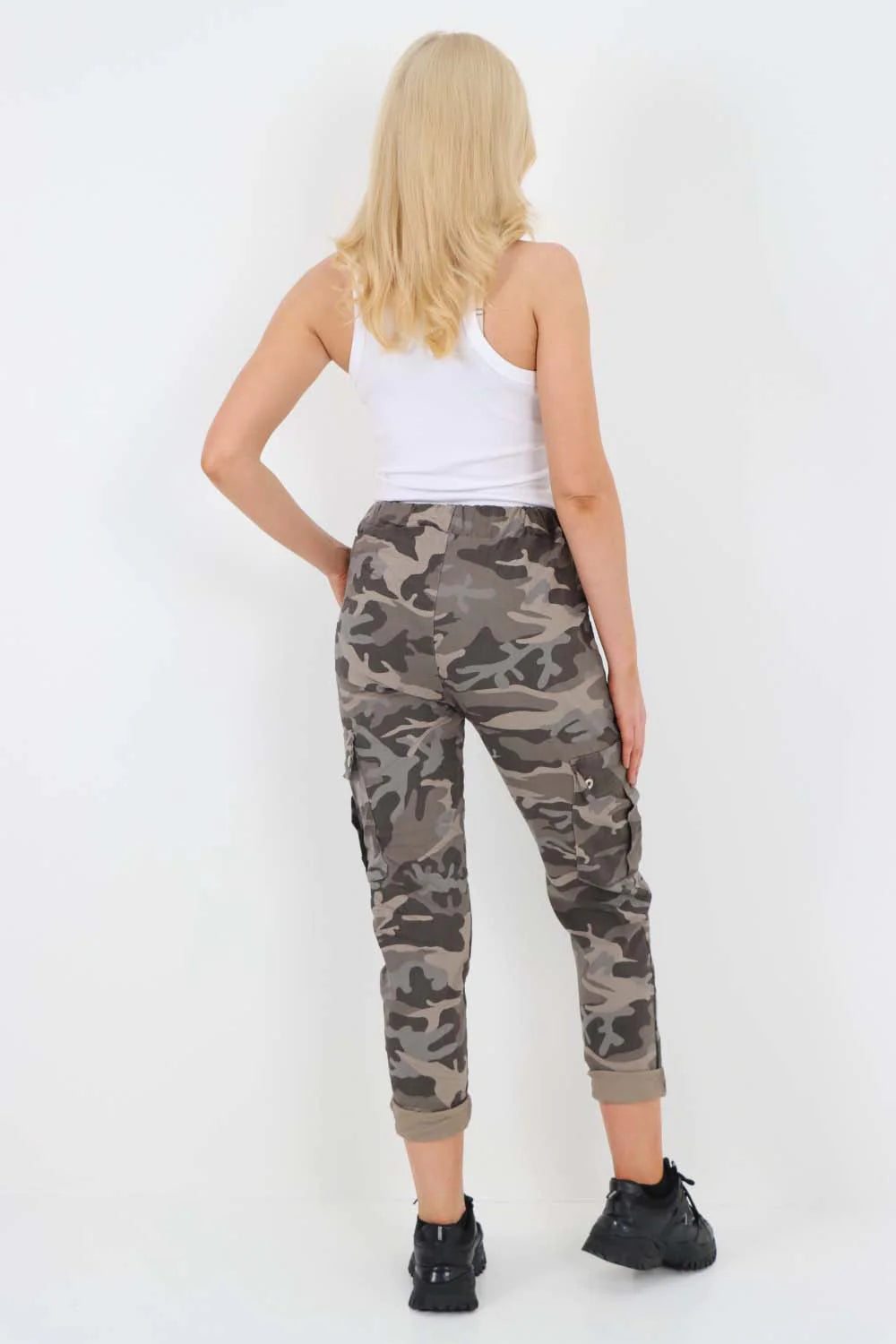 Italian Drawstring Camo Side Pockets Cargo Trousers