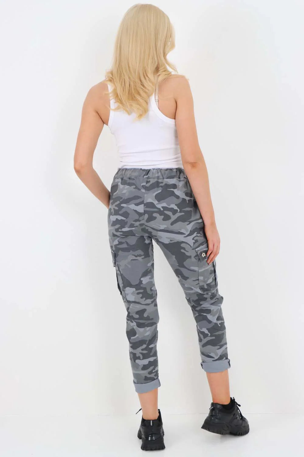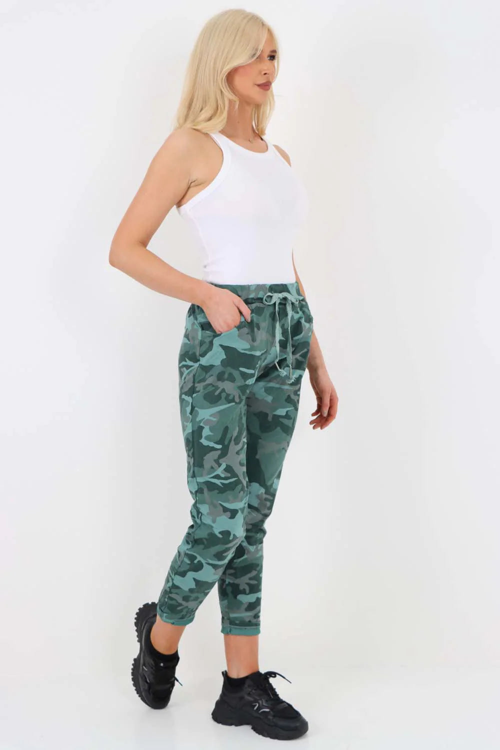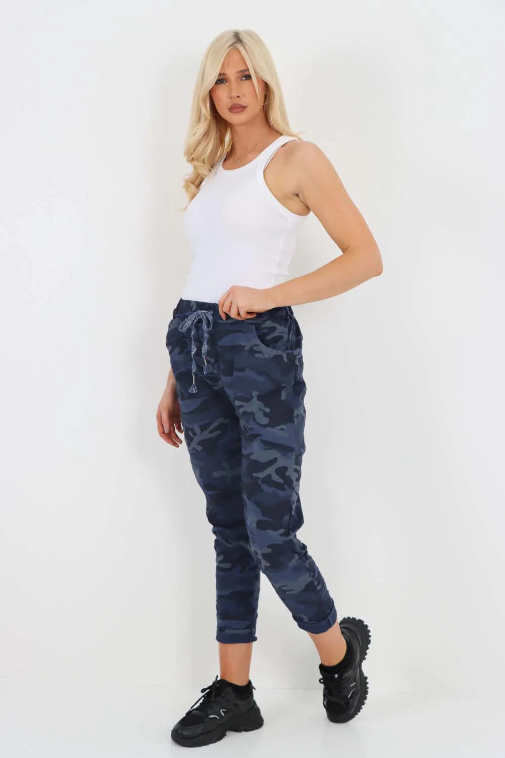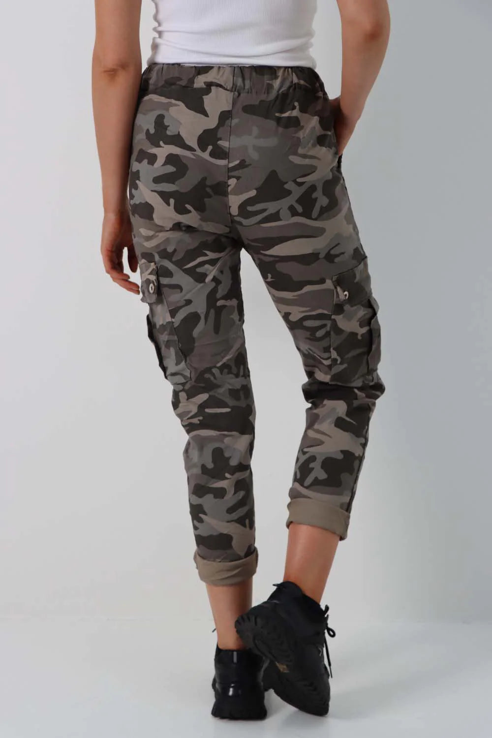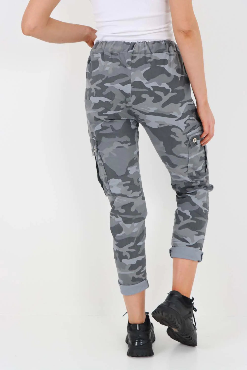 Italian Drawstring Camo Side Pockets Cargo Trousers