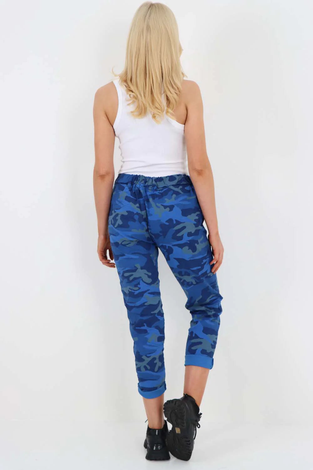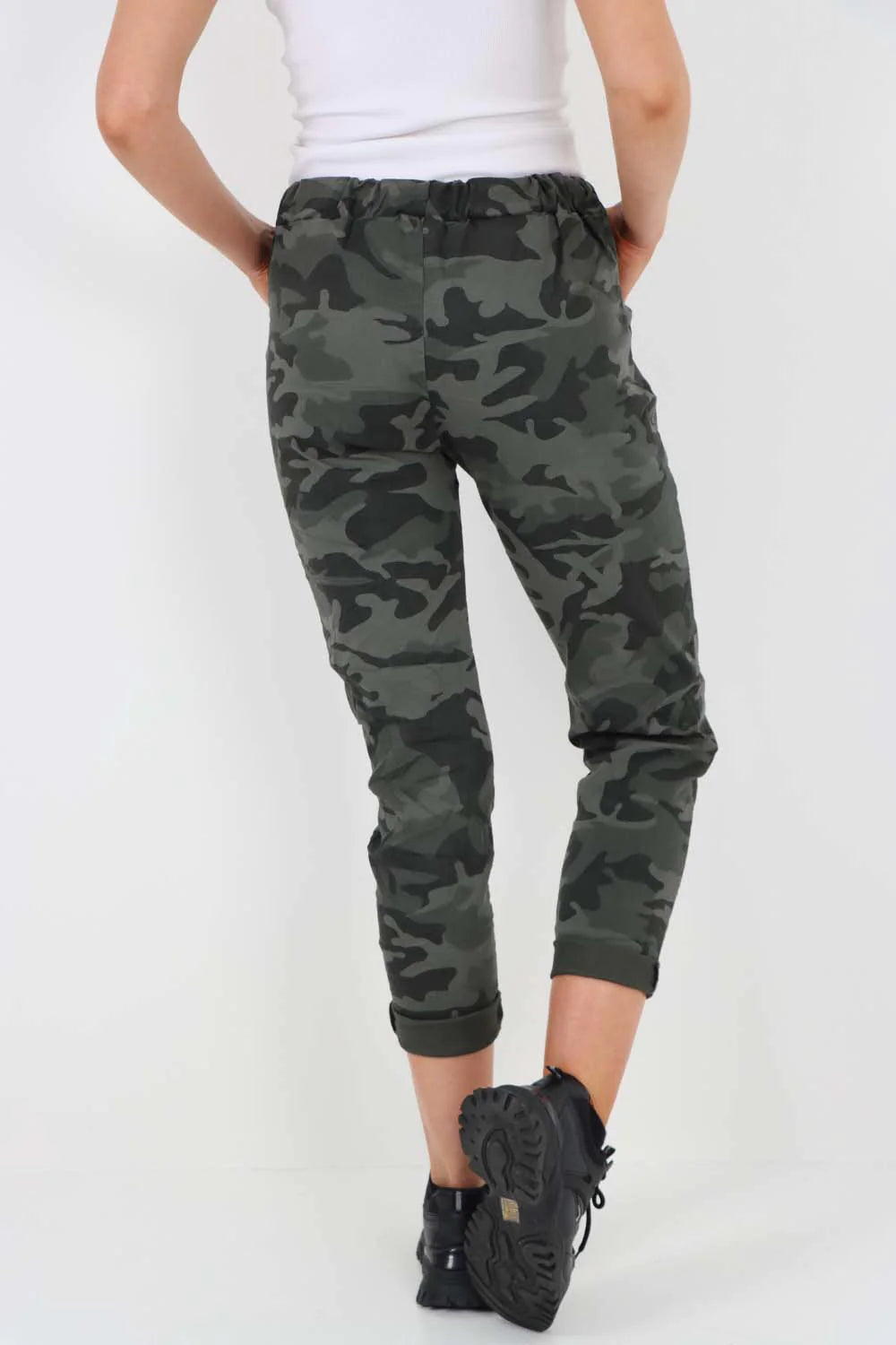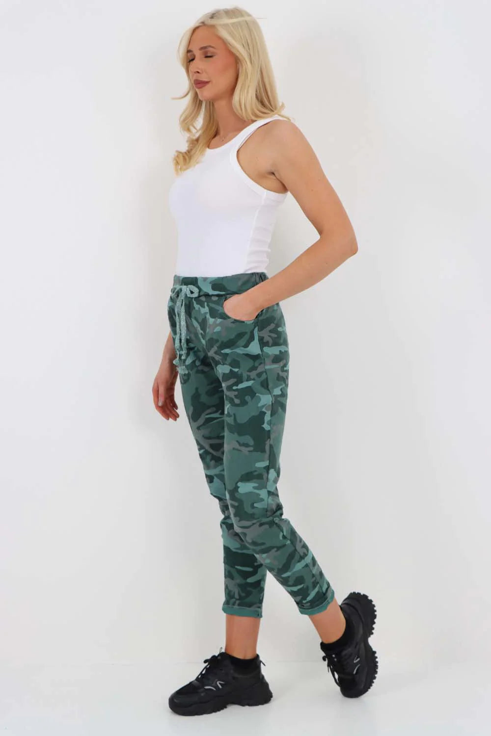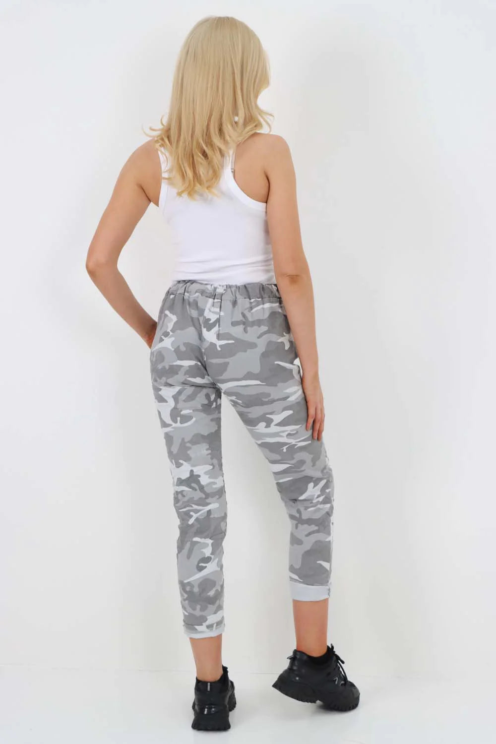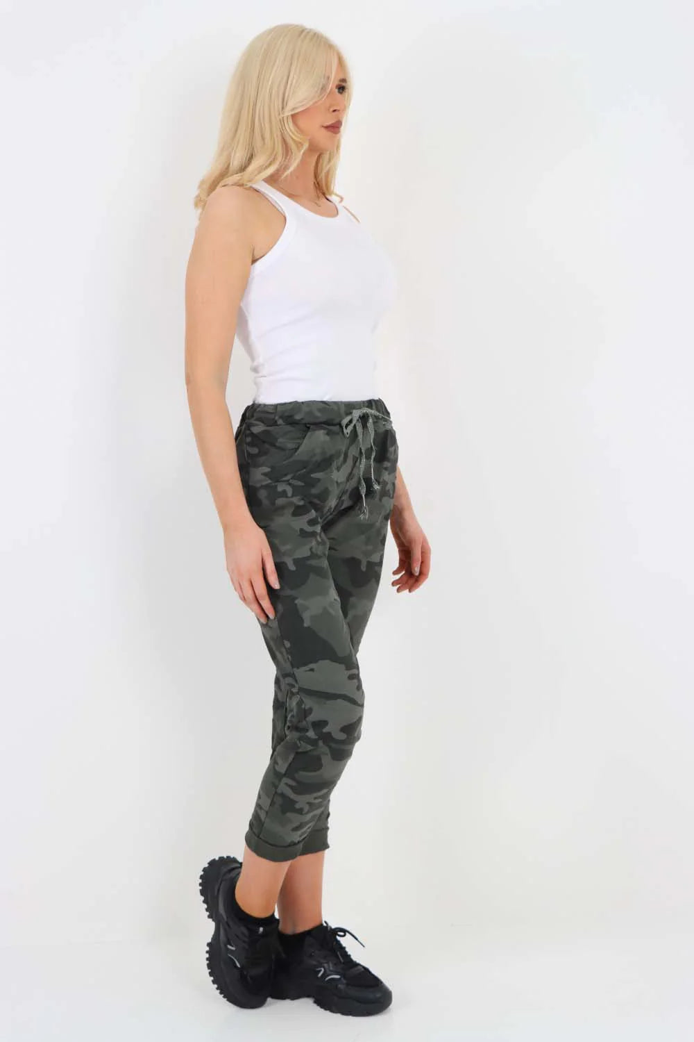 Italian Drawstring Camo Side Pockets Cargo Trousers