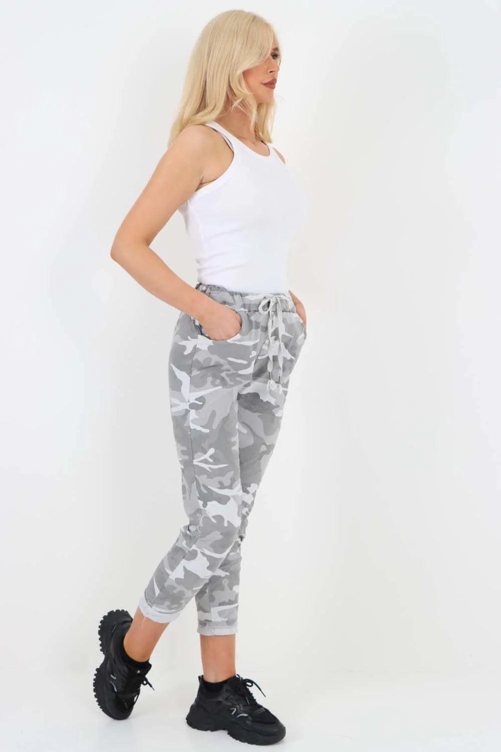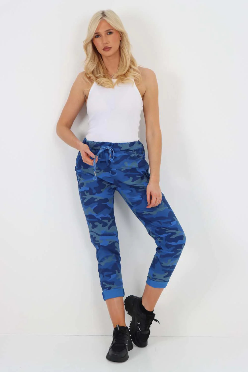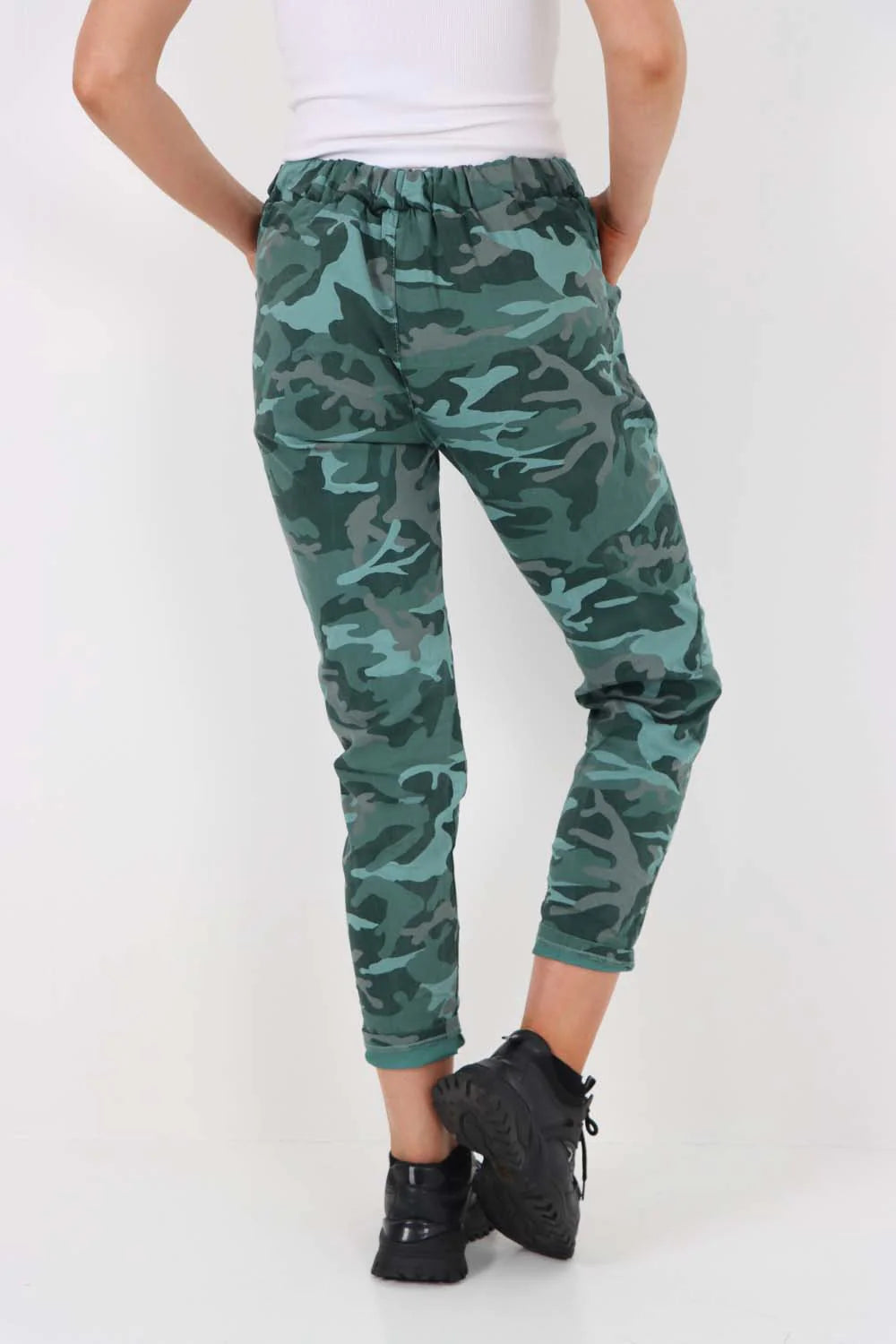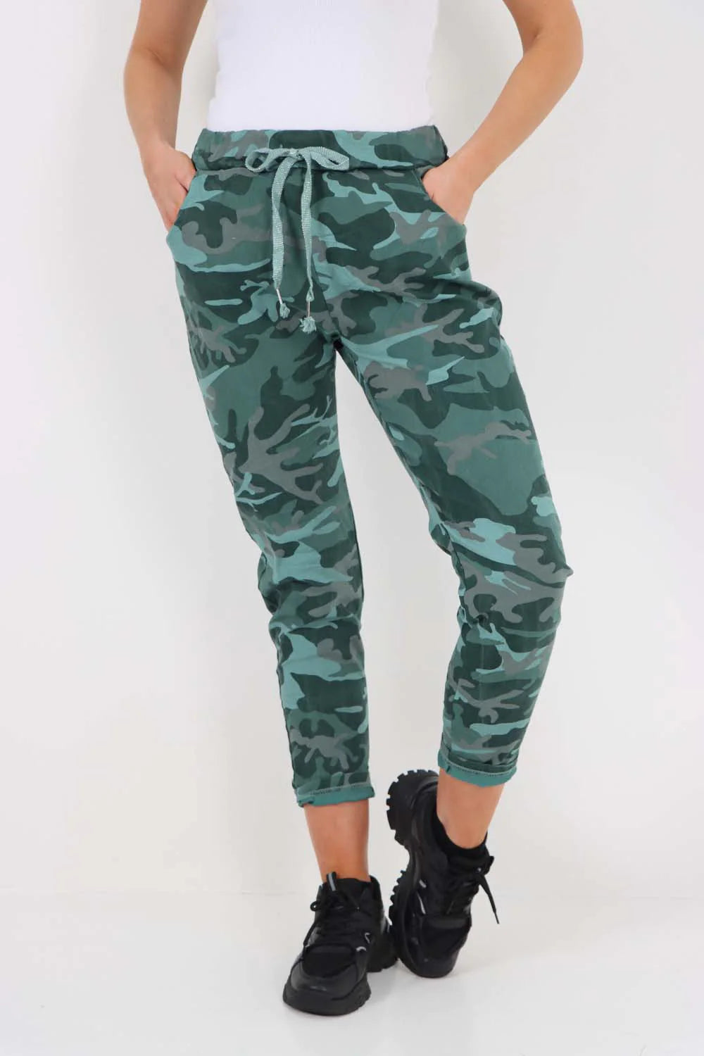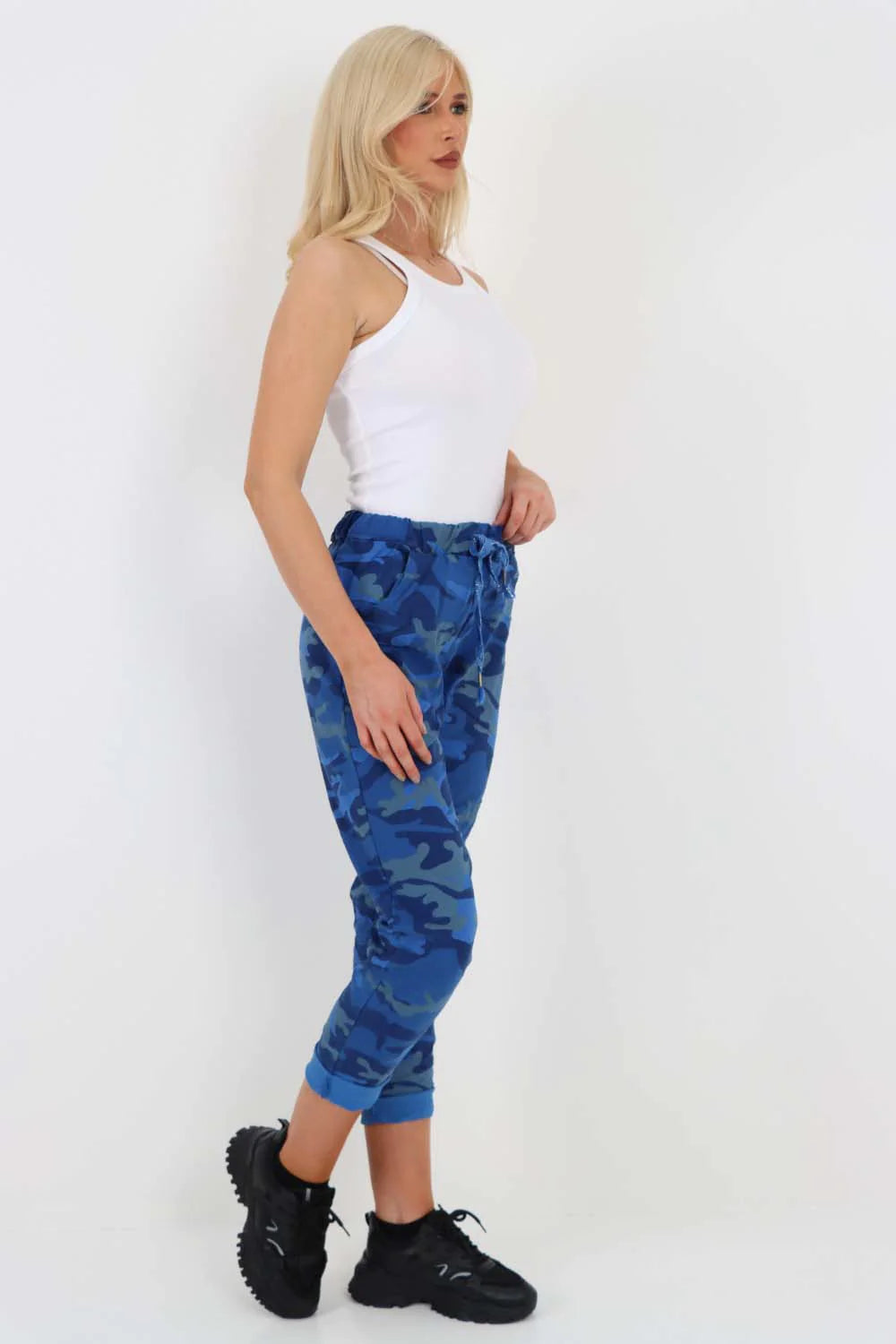 Italian Drawstring Camo Side Pockets Cargo Trousers