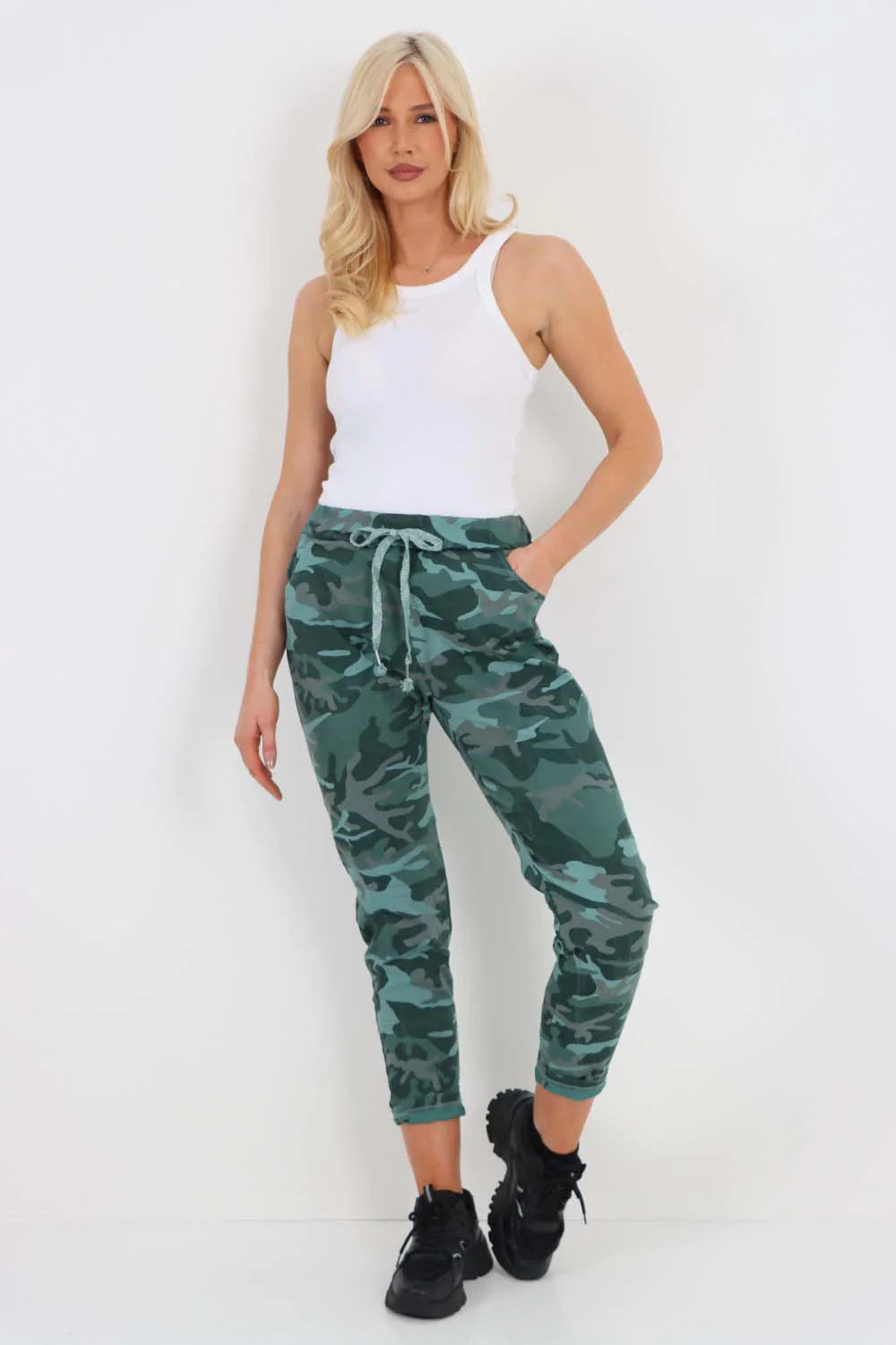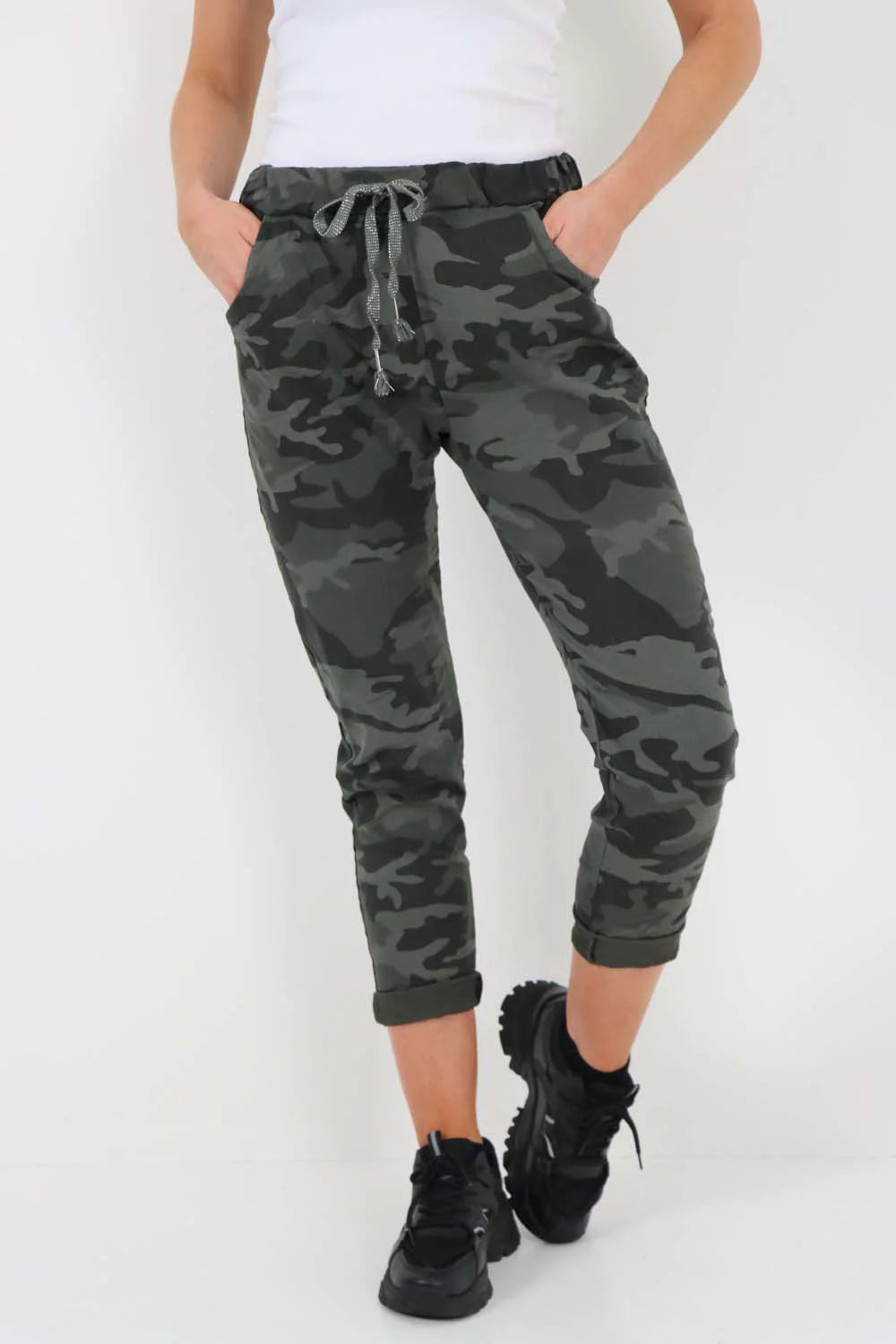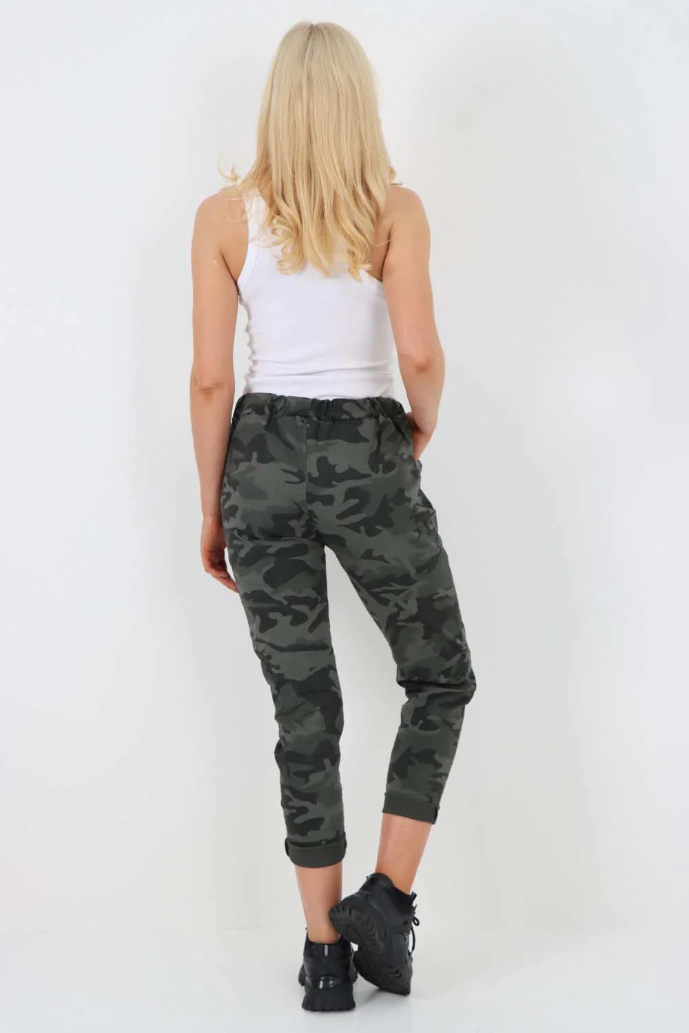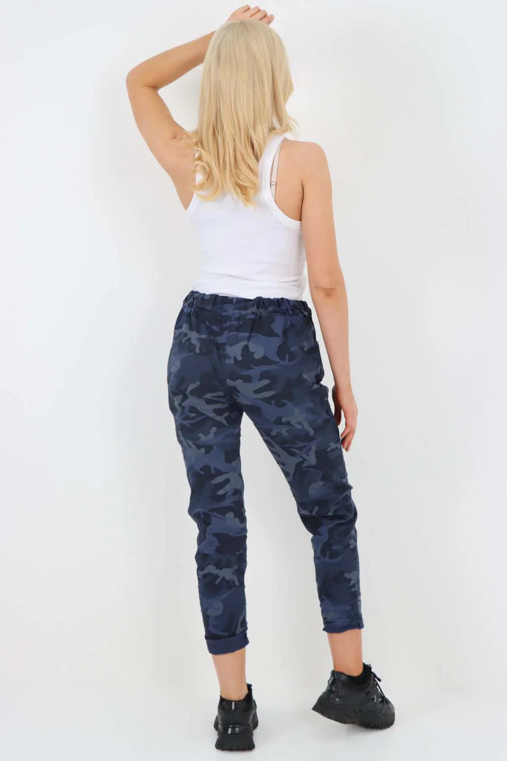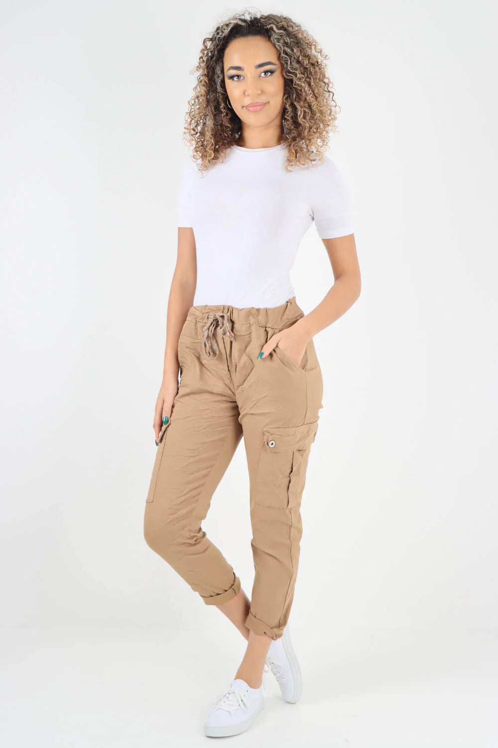 Italian Drawstring Camo Side Pockets Cargo Trousers