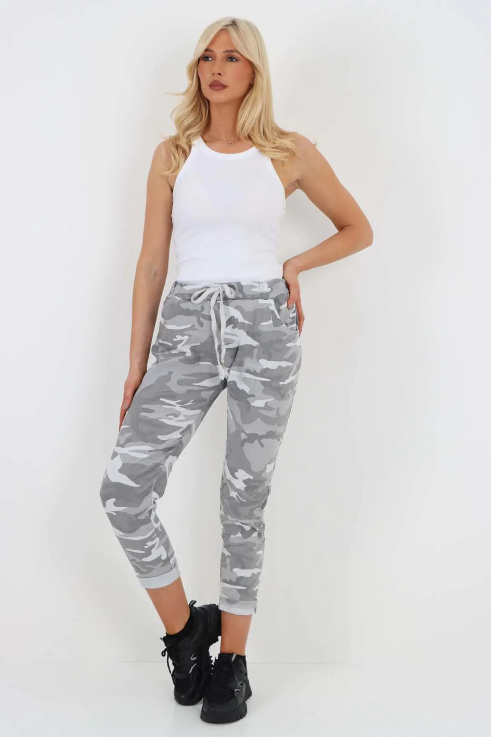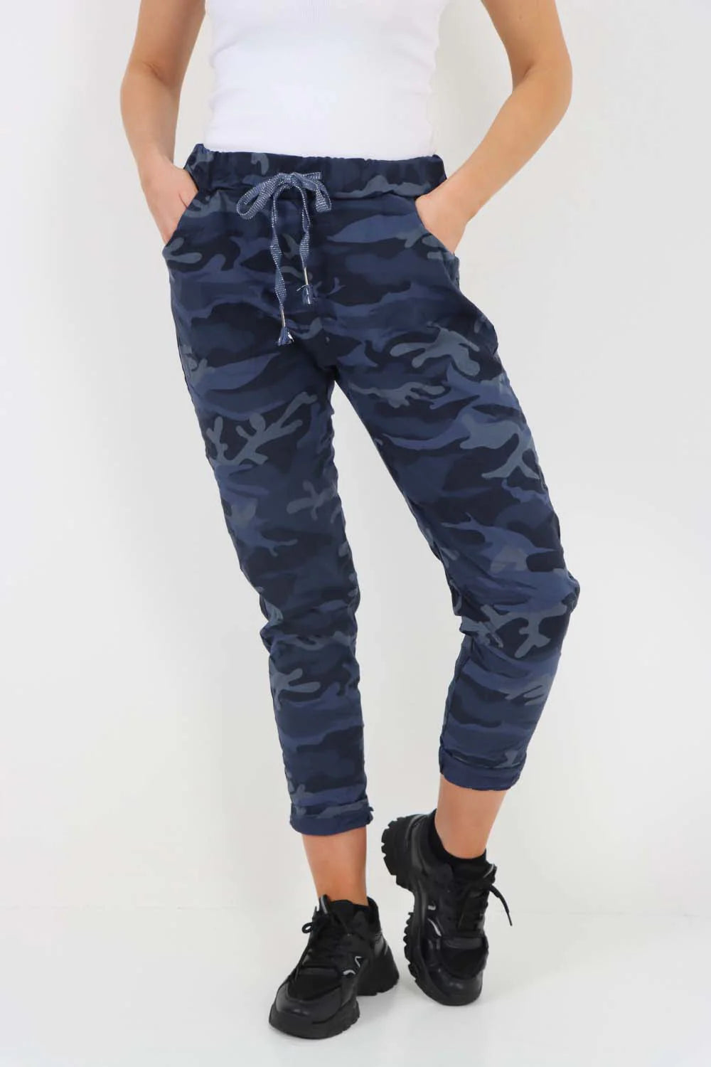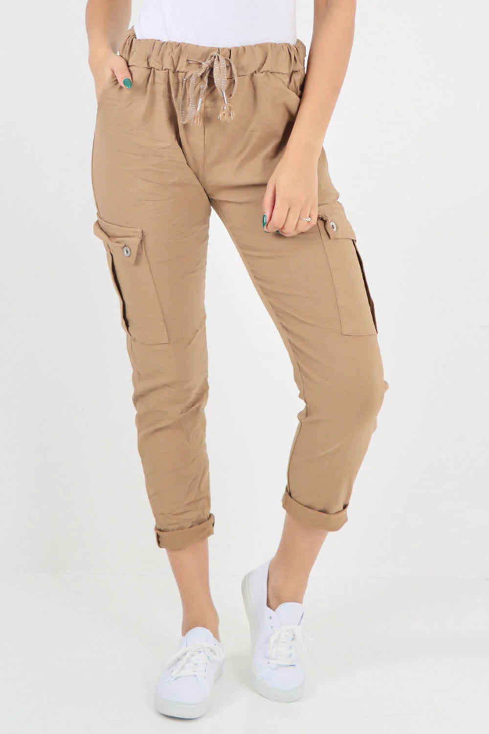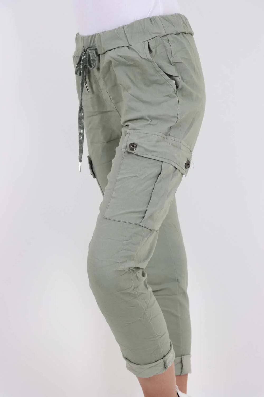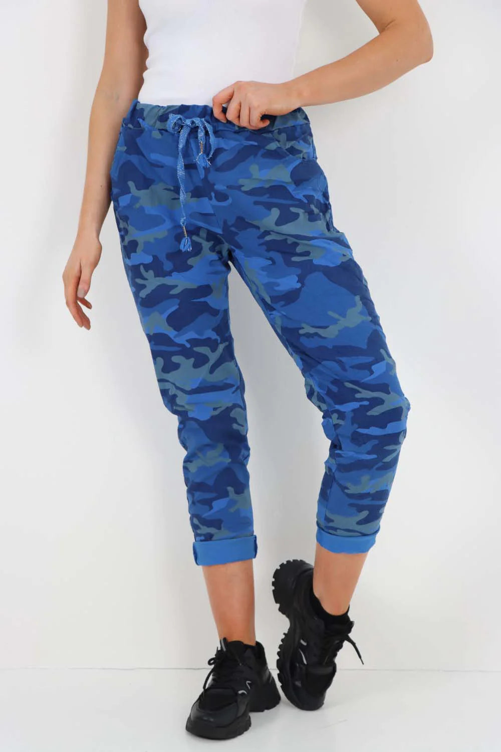 Italian Drawstring Camo Side Pockets Cargo Trousers