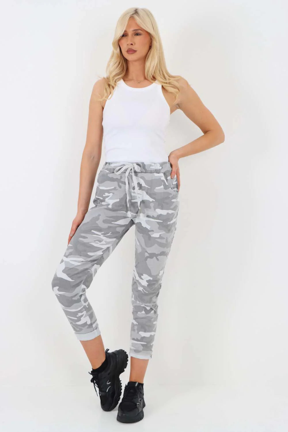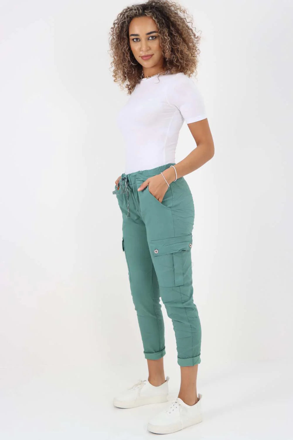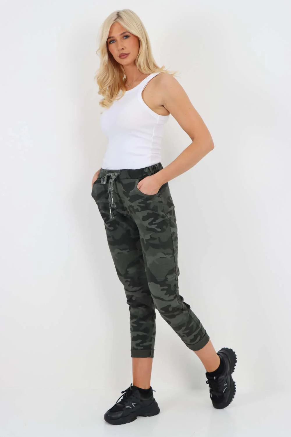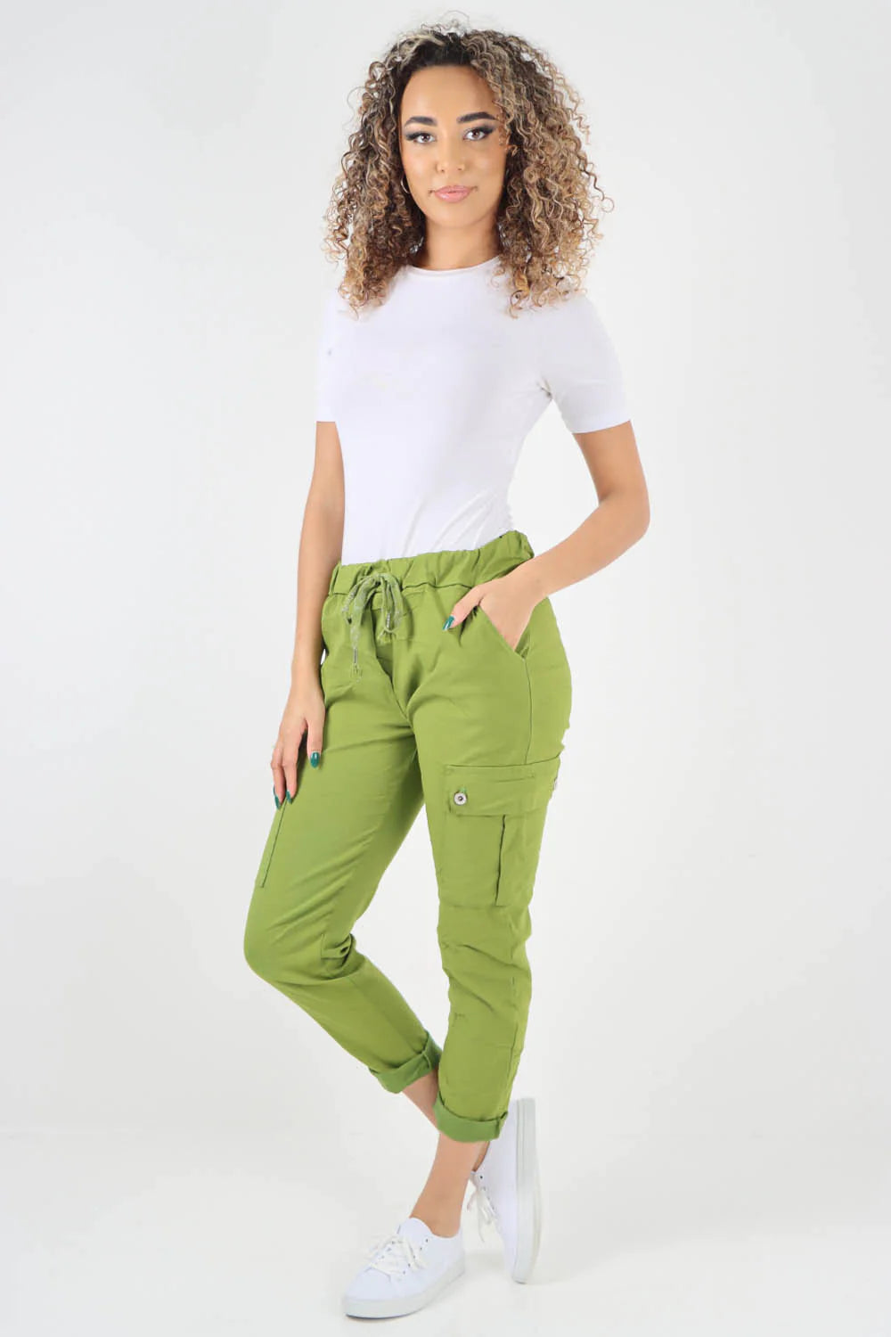 Italian Drawstring Camo Side Pockets Cargo Trousers
