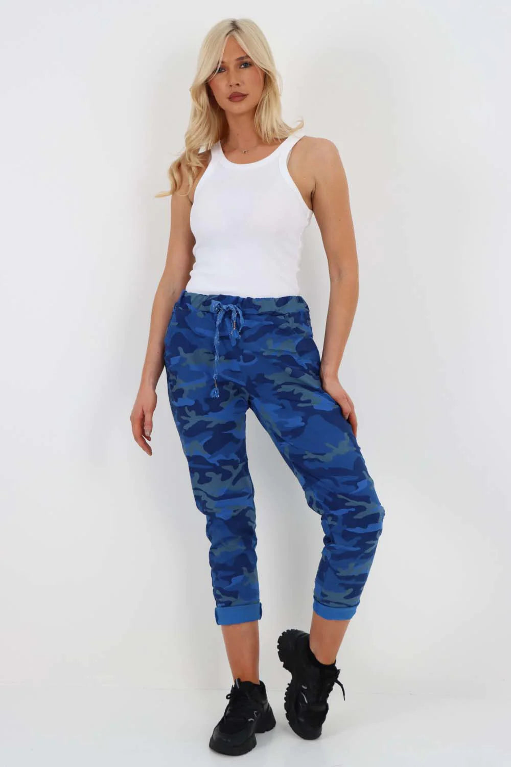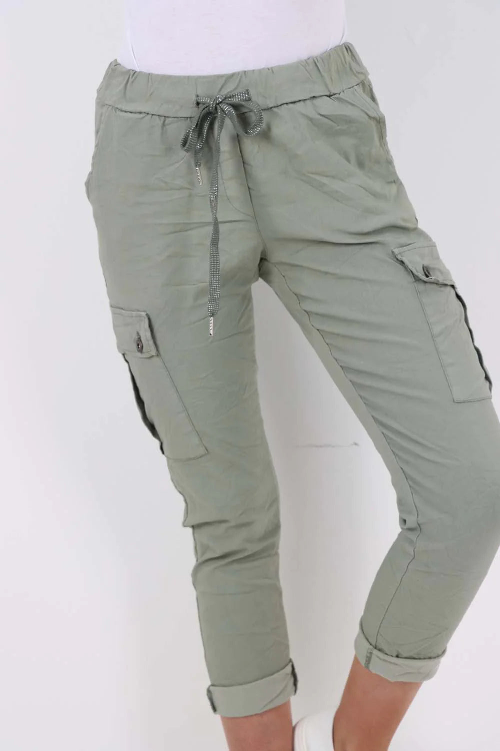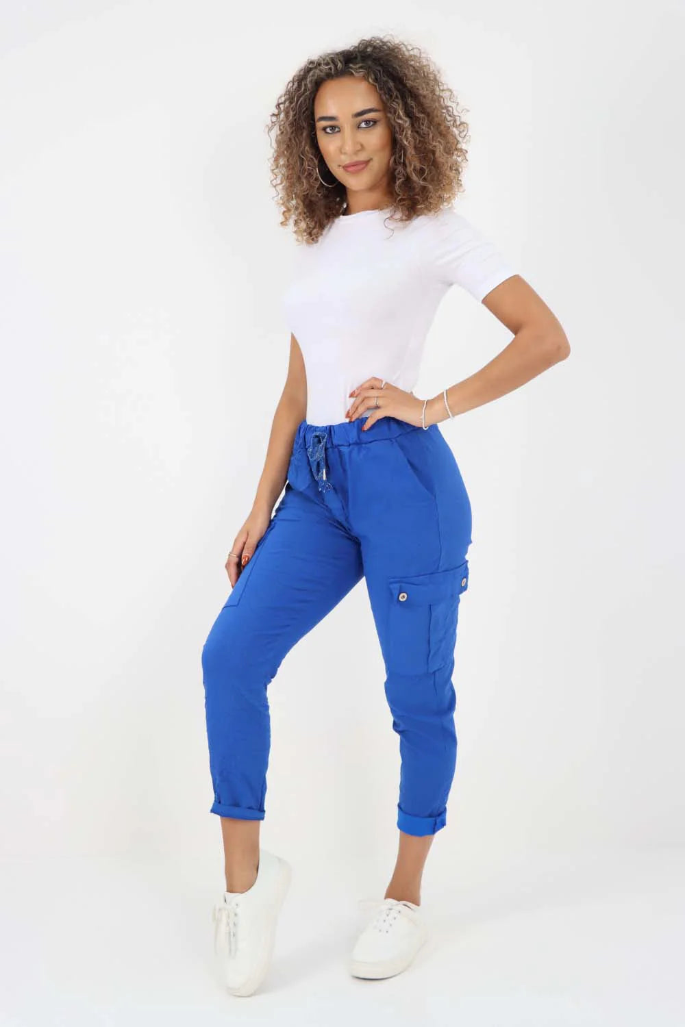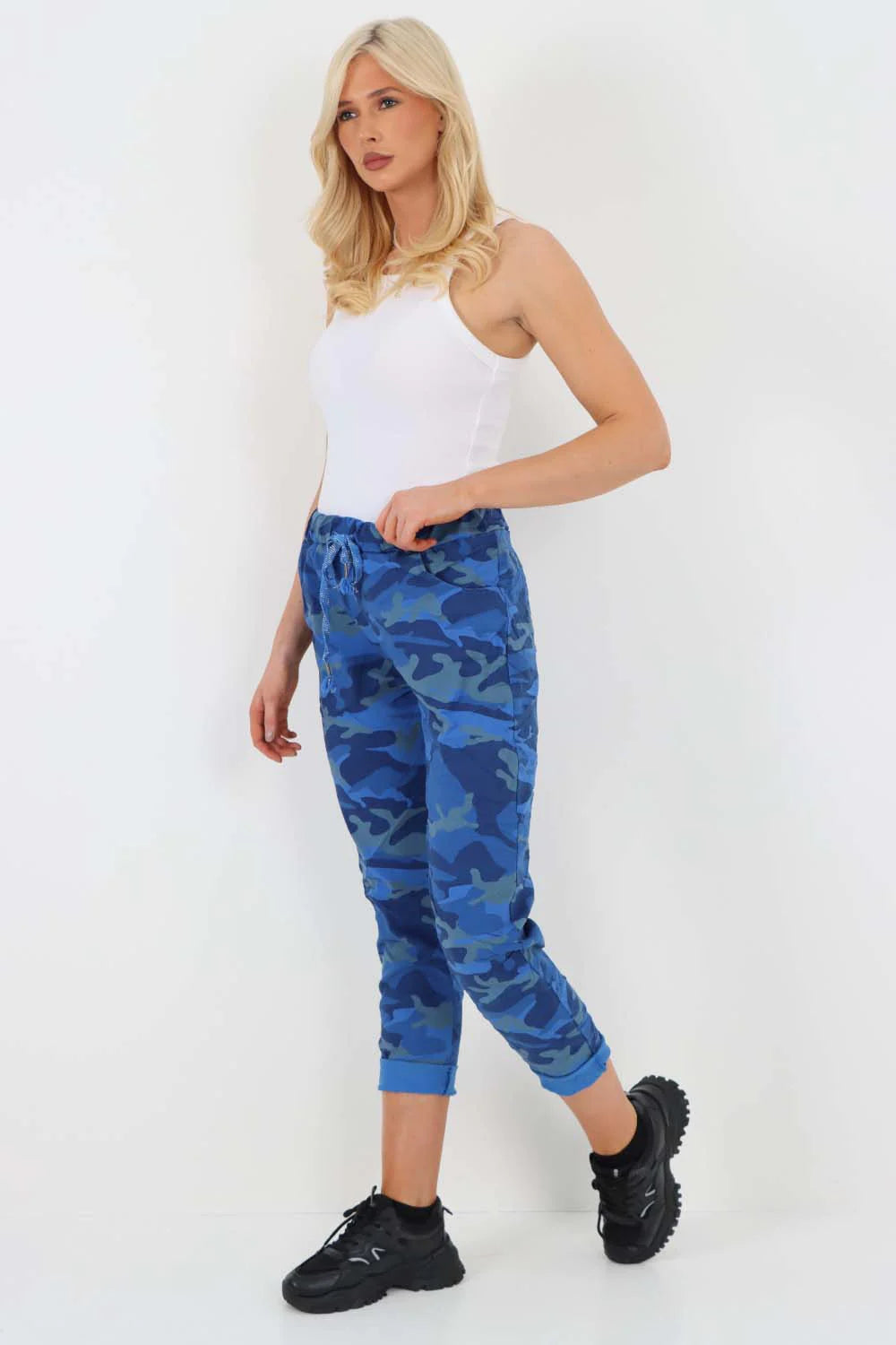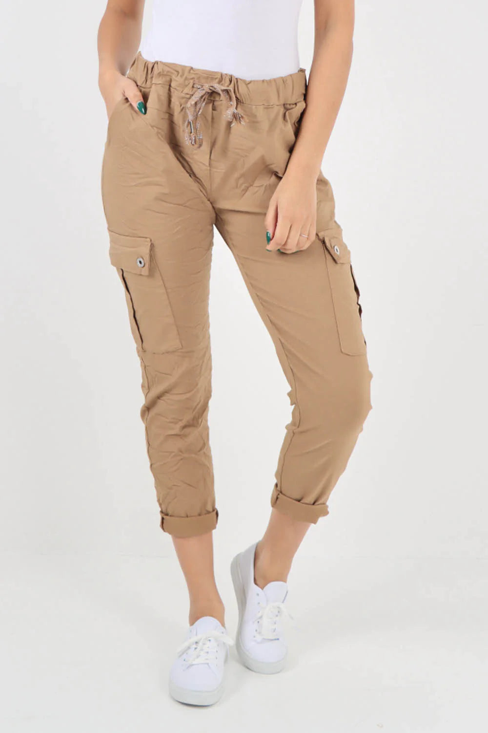 Italian Drawstring Camo Side Pockets Cargo Trousers
