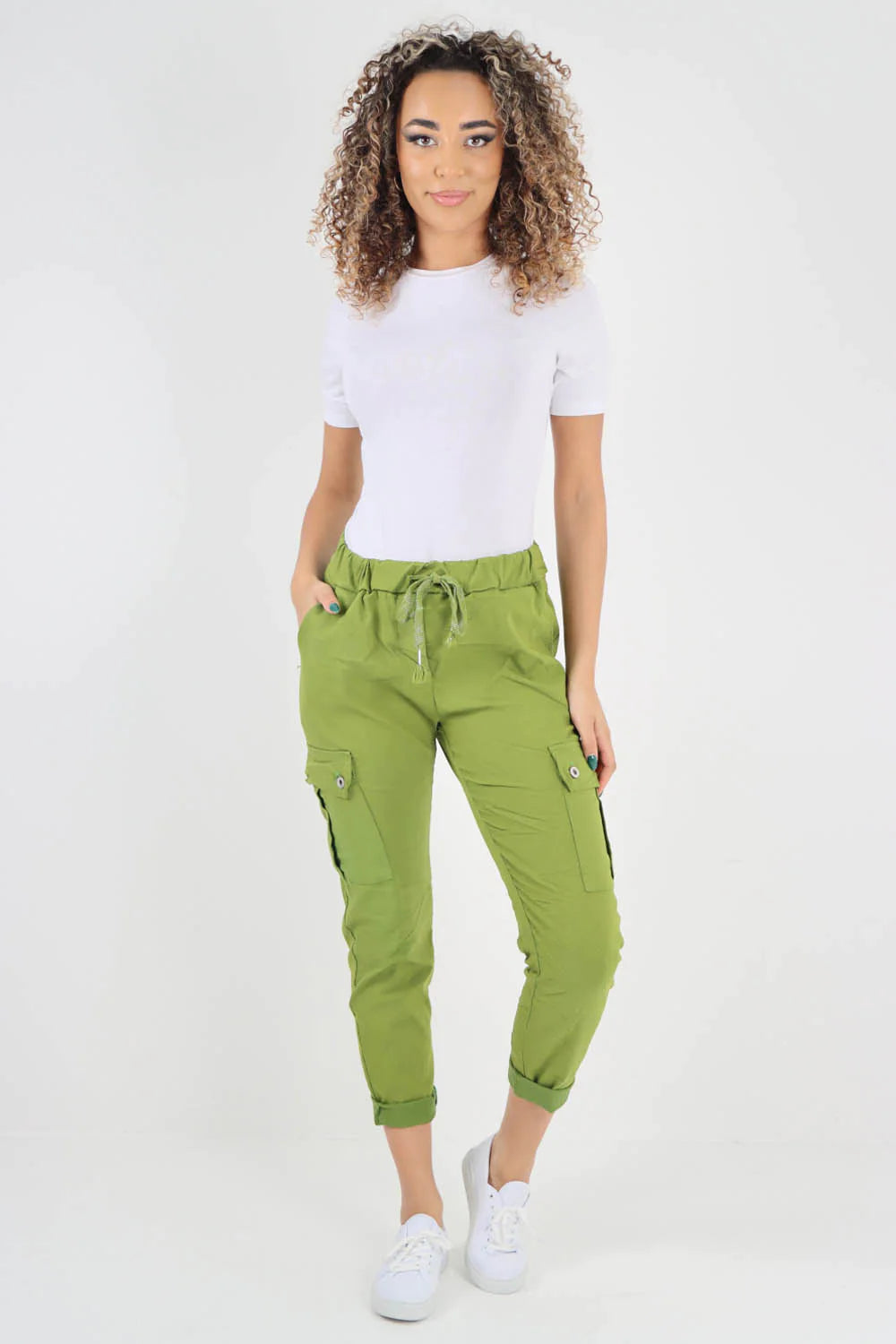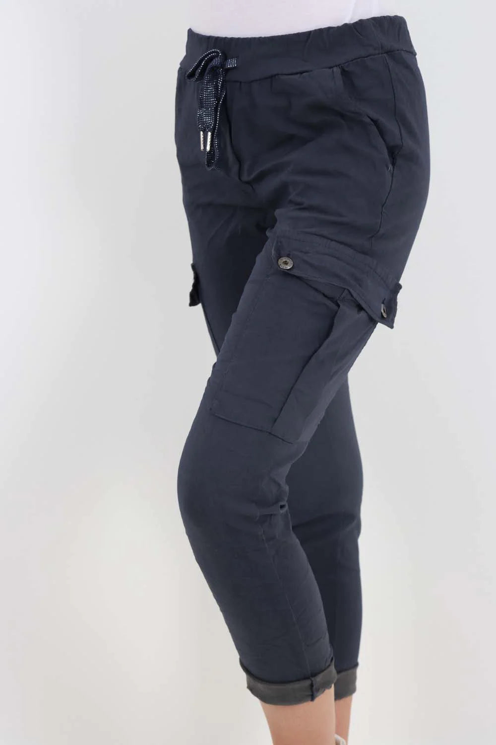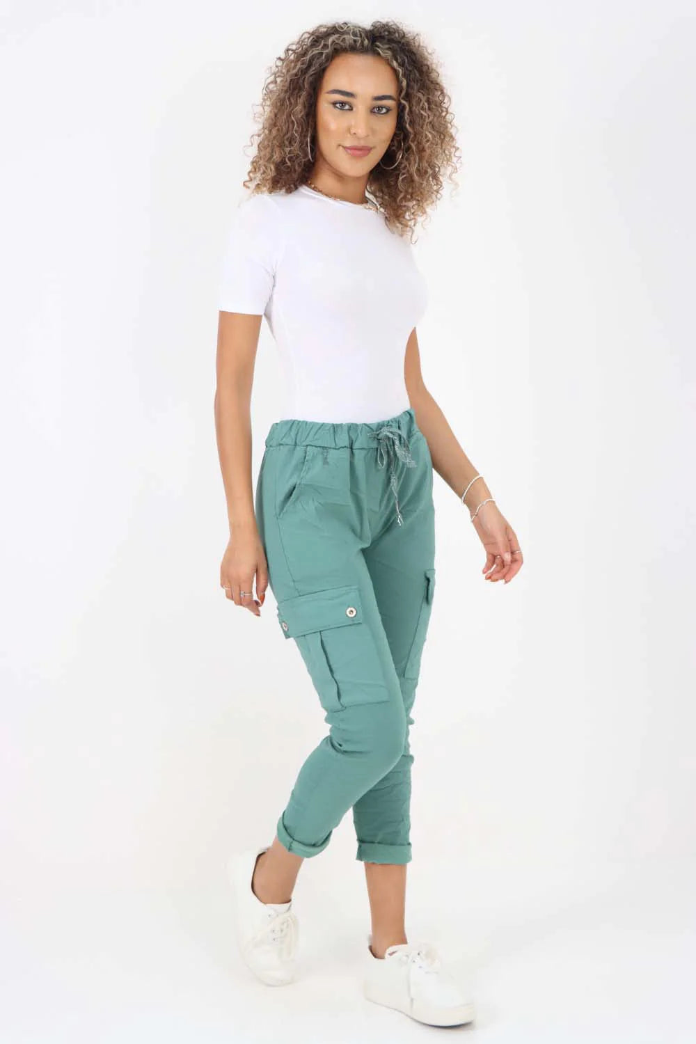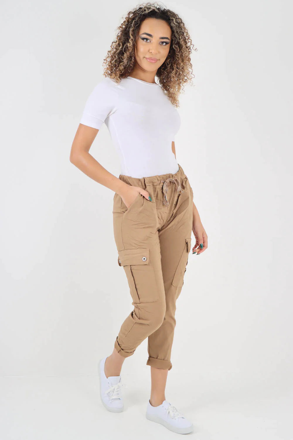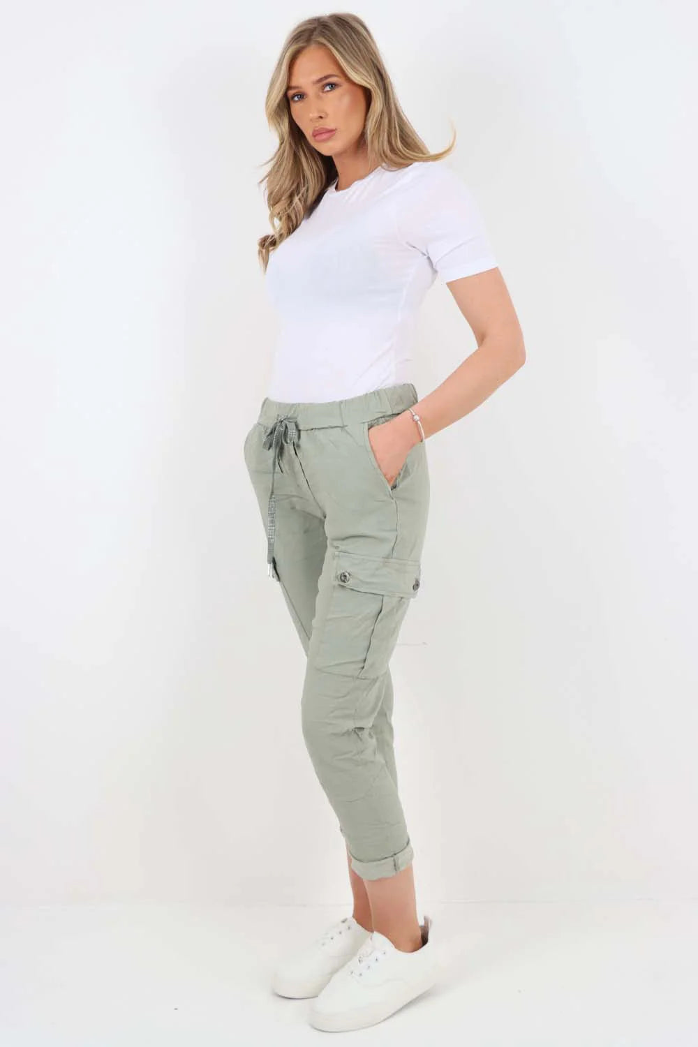 Italian Drawstring Camo Side Pockets Cargo Trousers