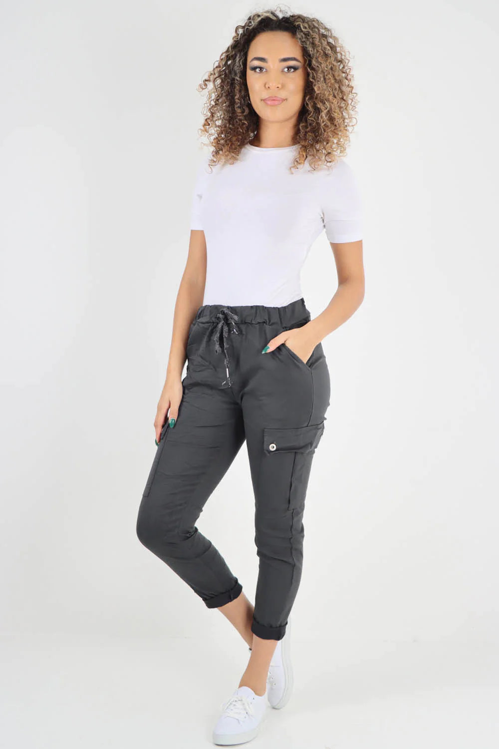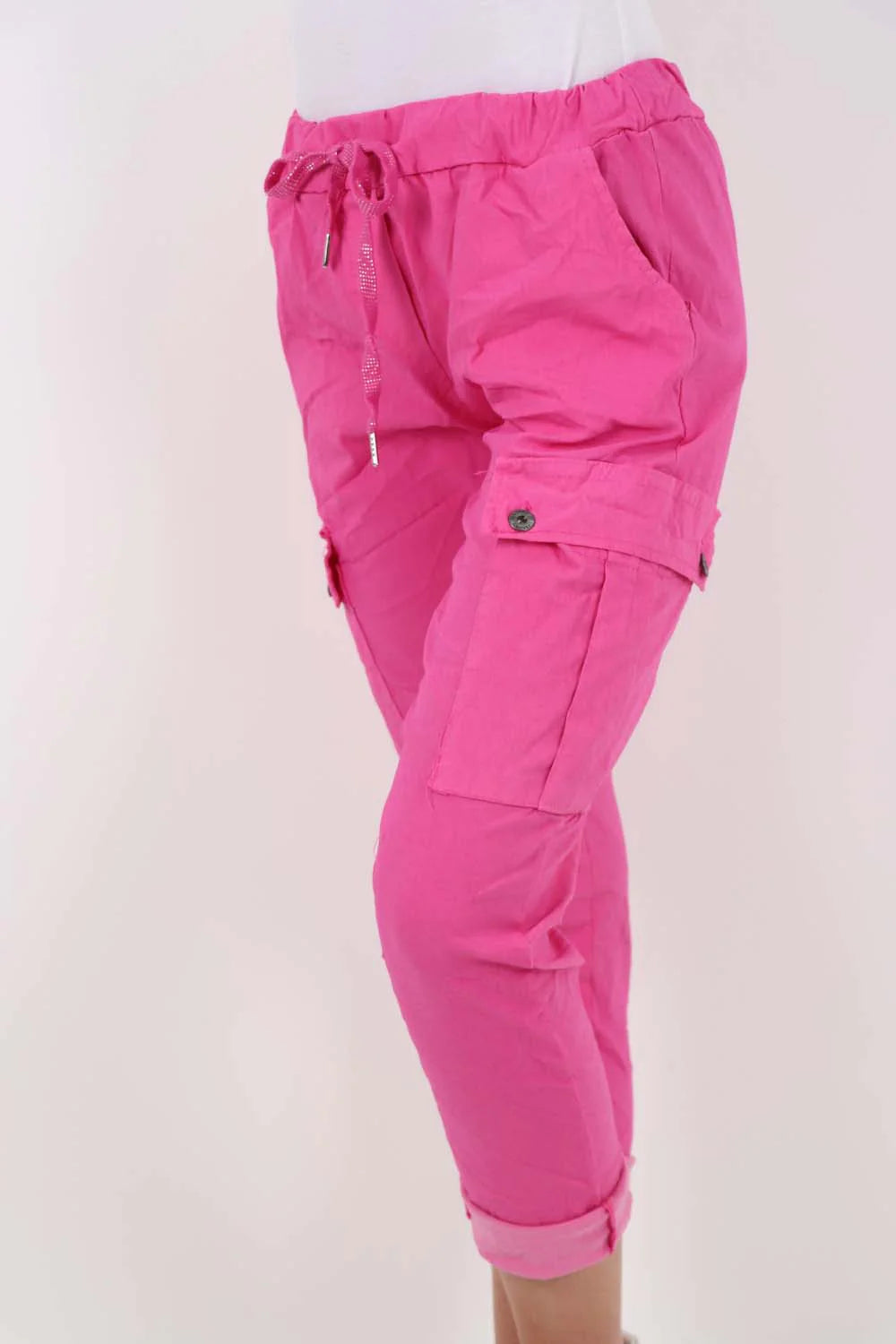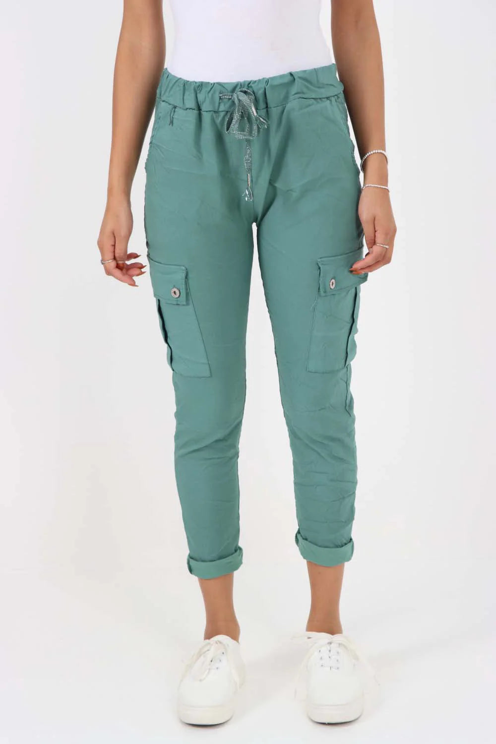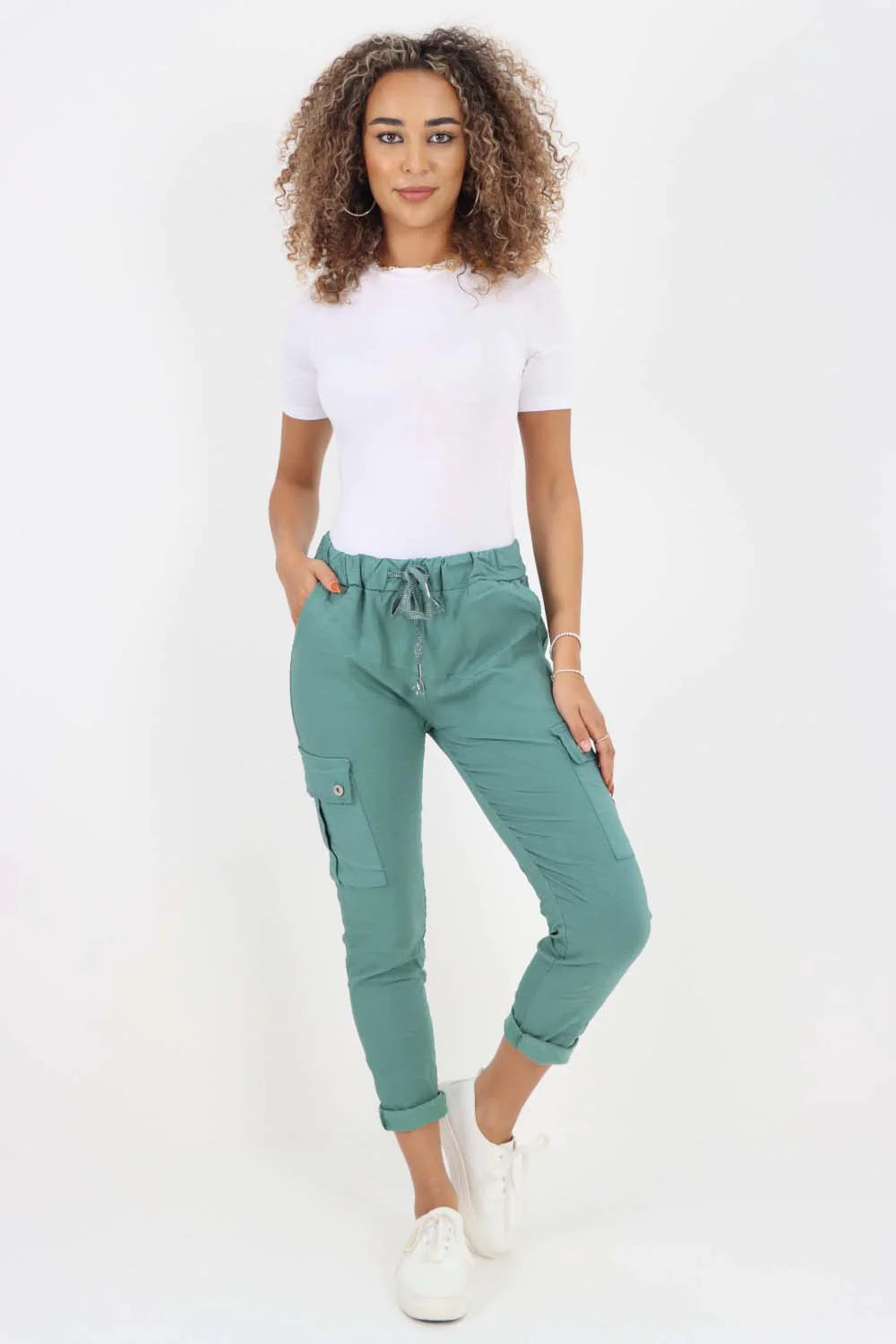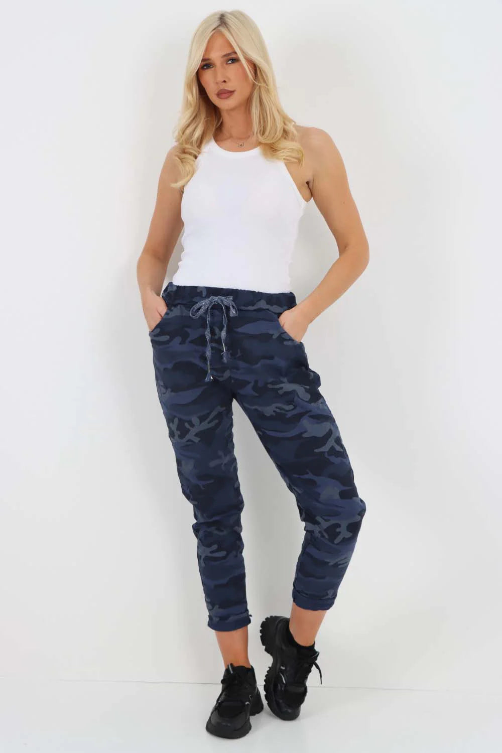 Italian Drawstring Camo Side Pockets Cargo Trousers