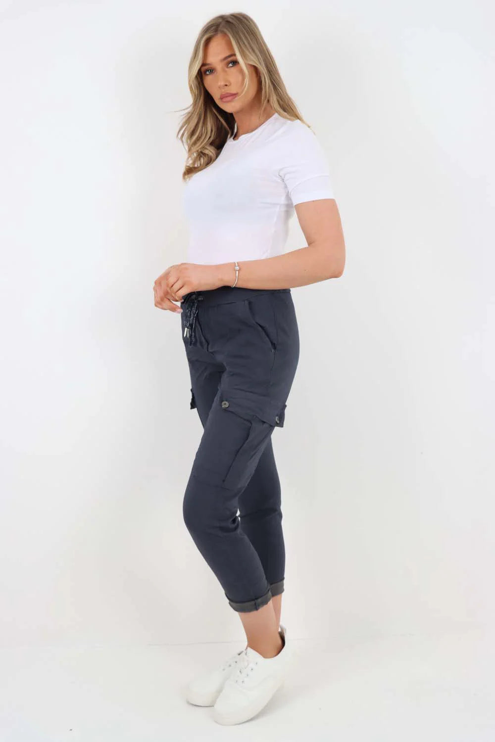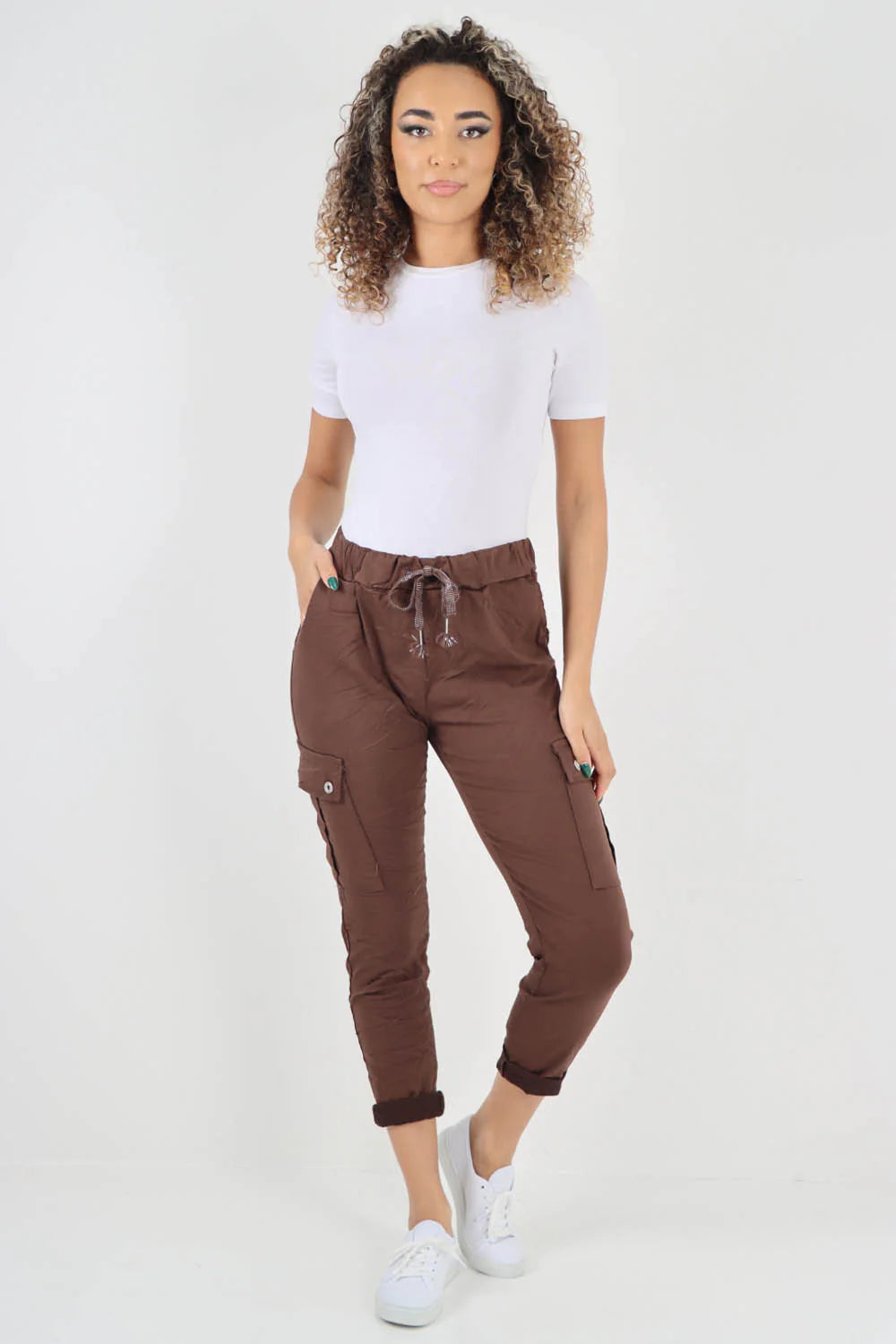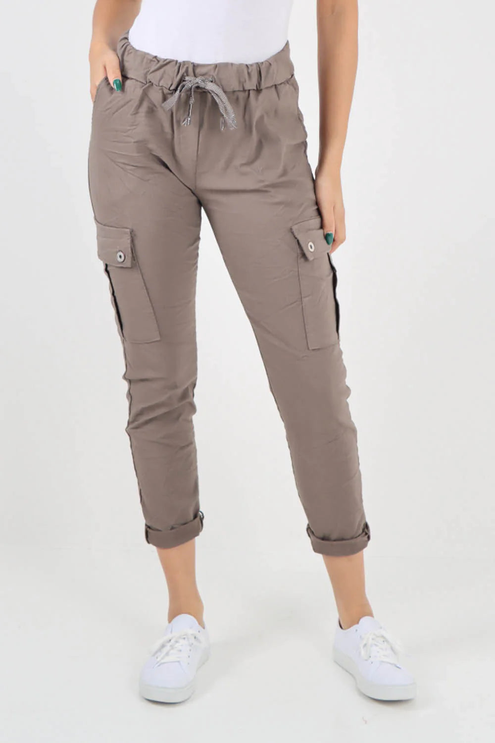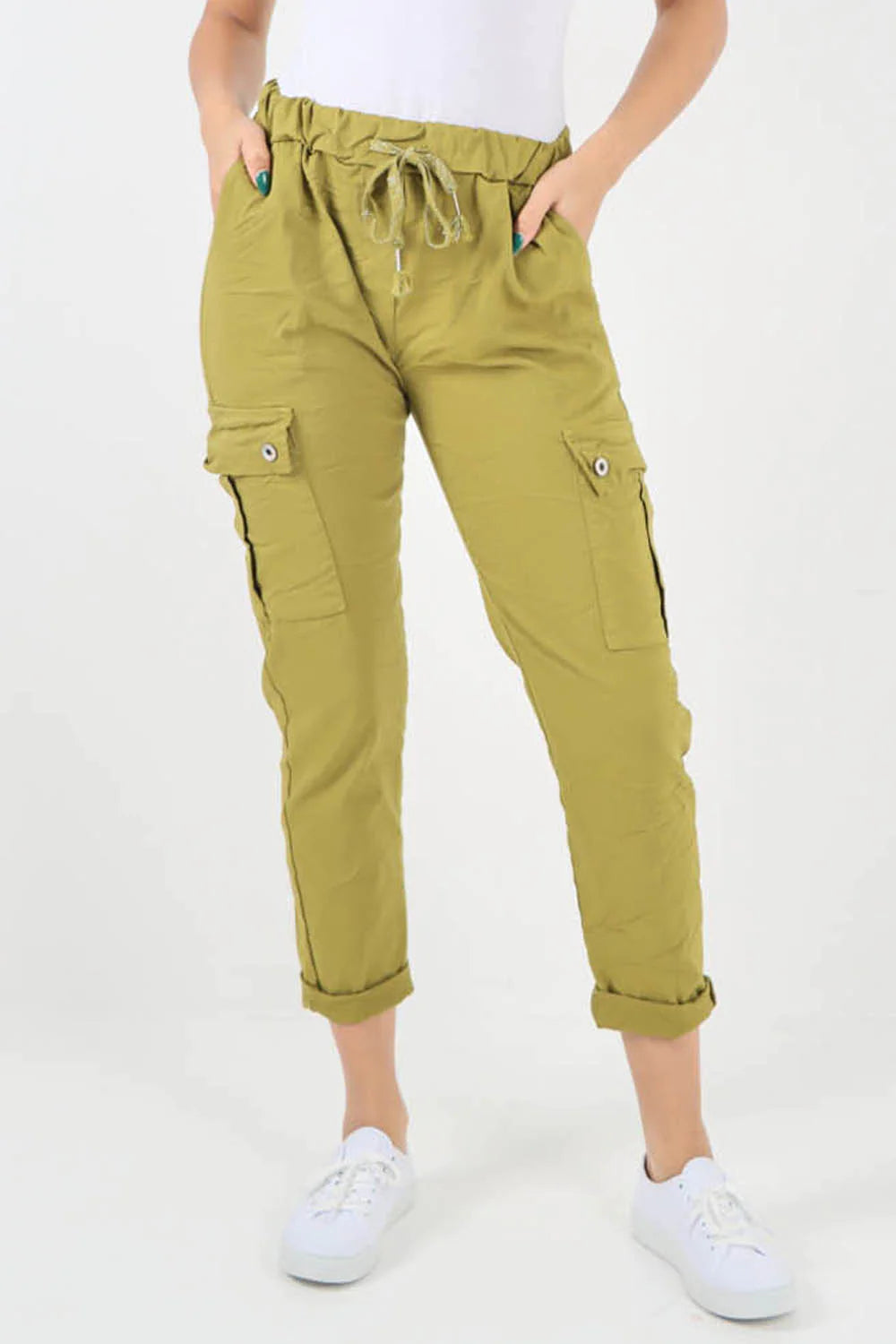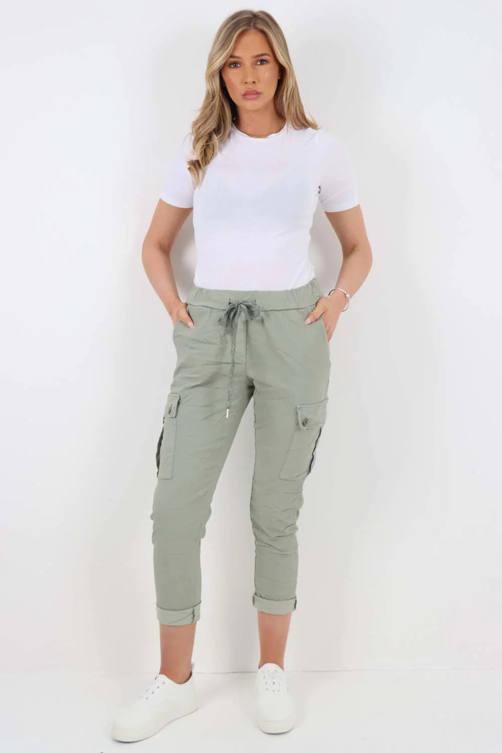Italian Drawstring Camo Side Pockets Cargo Trousers