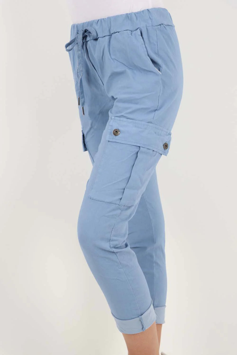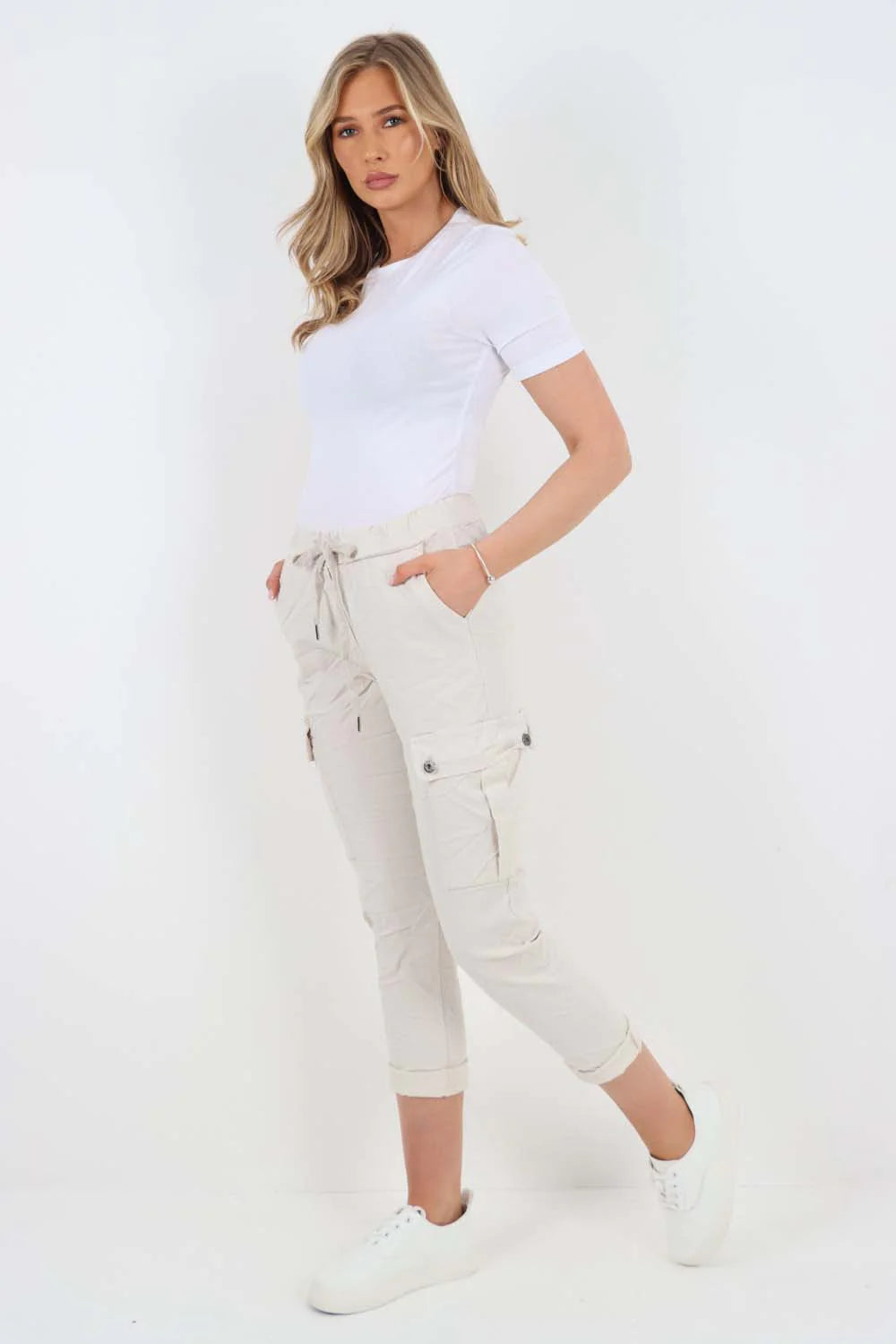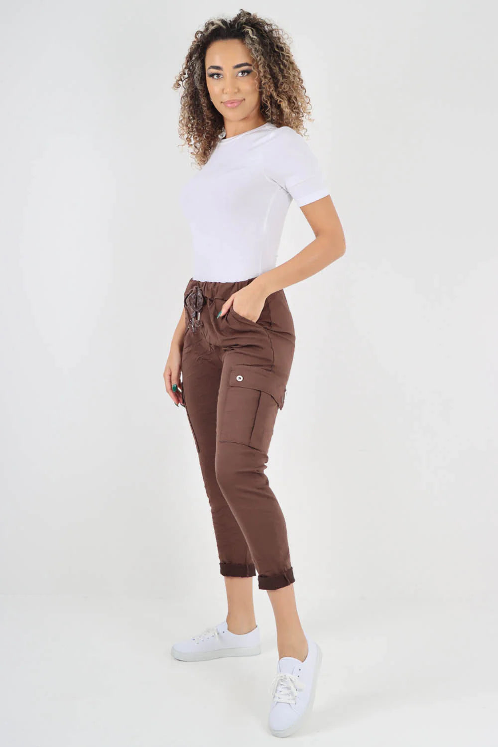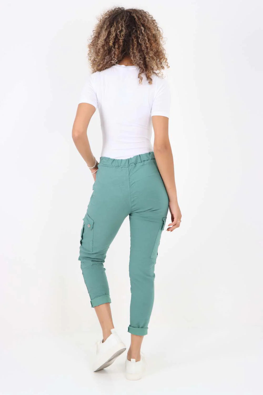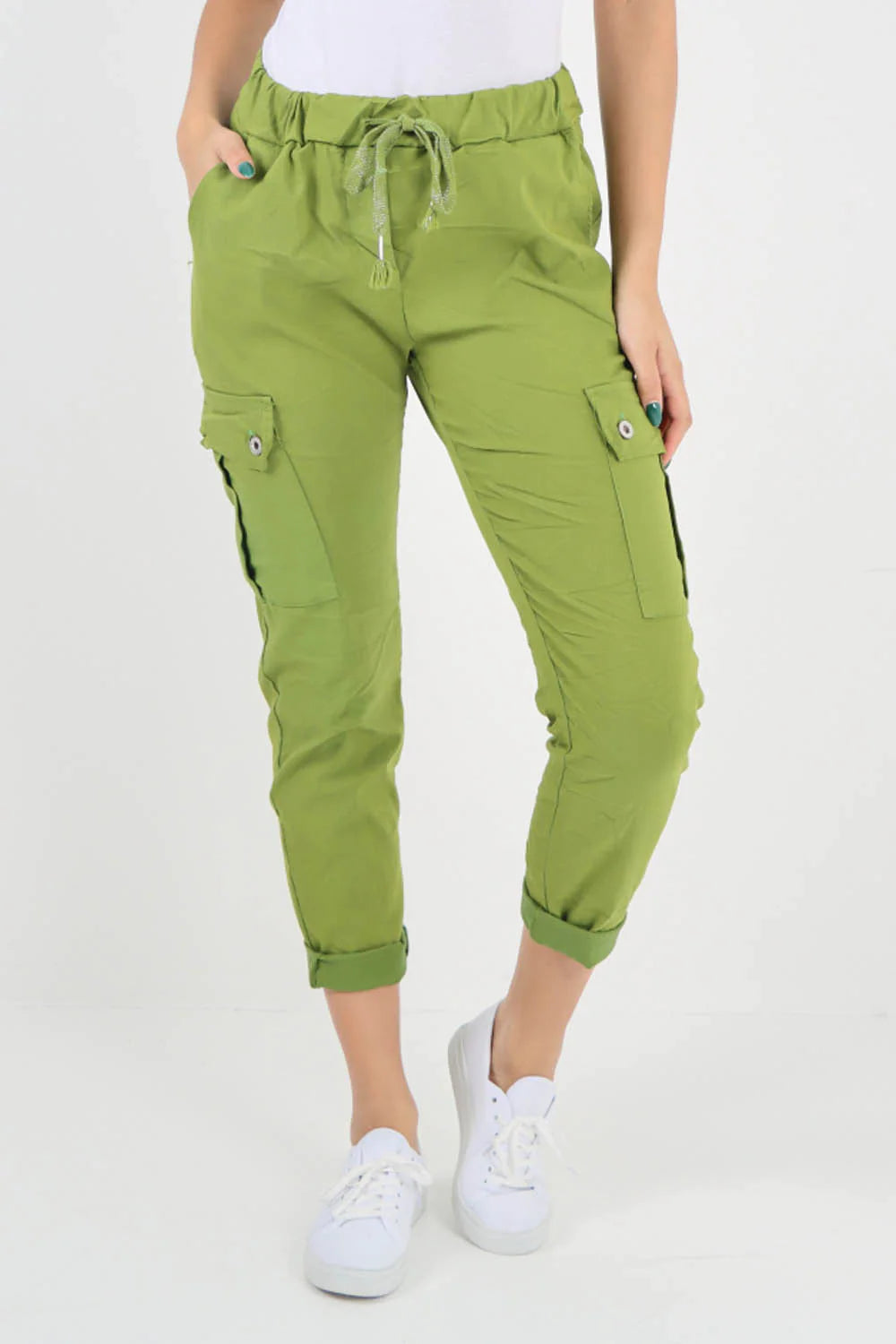 Italian Drawstring Camo Side Pockets Cargo Trousers