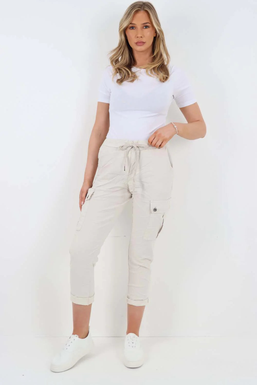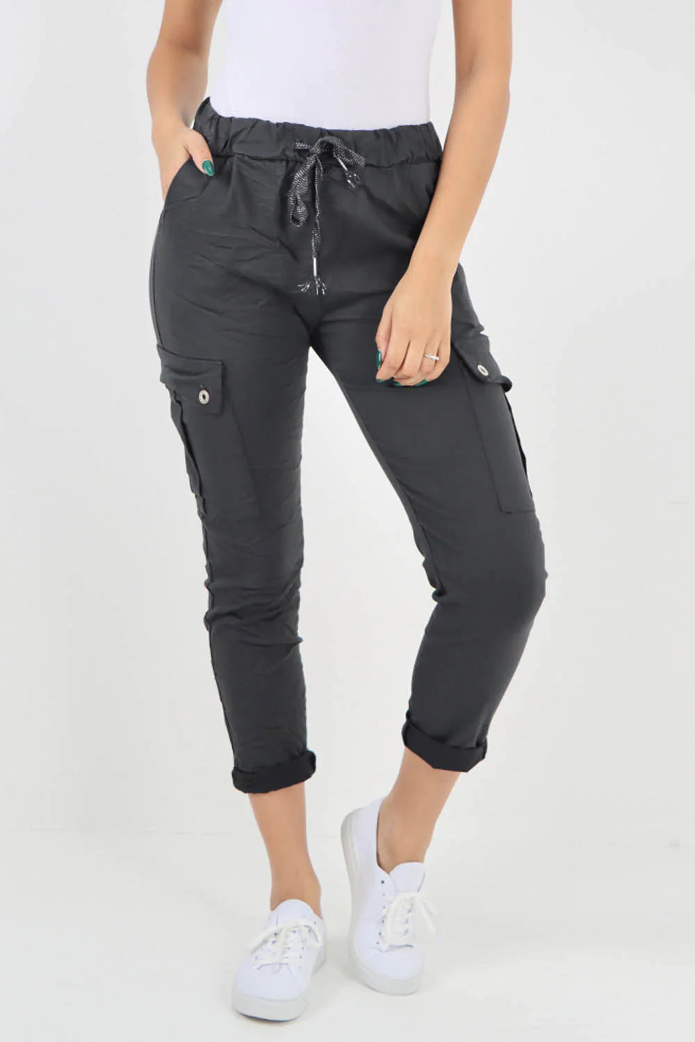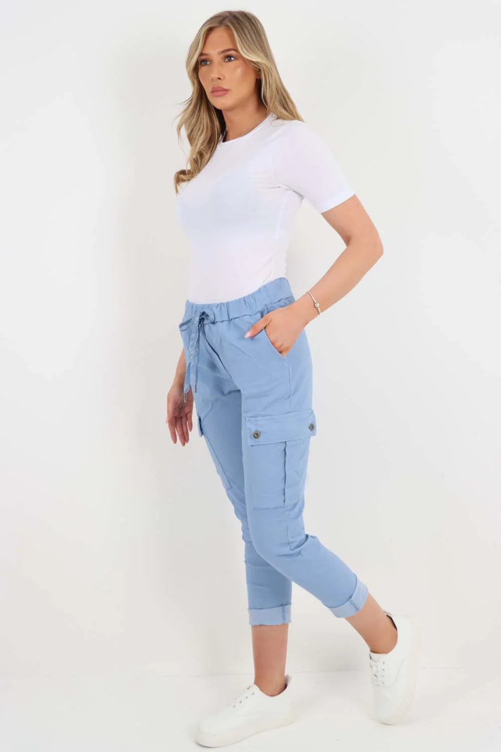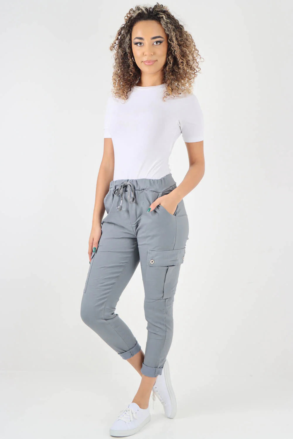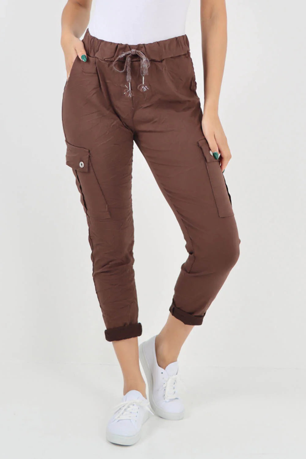 Italian Drawstring Camo Side Pockets Cargo Trousers