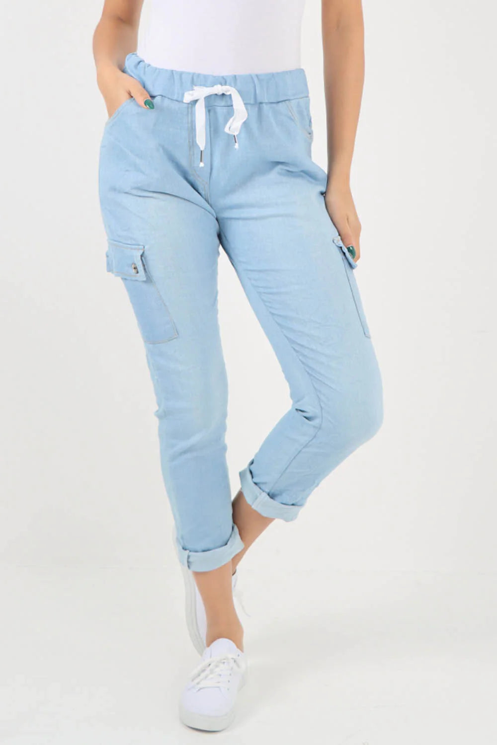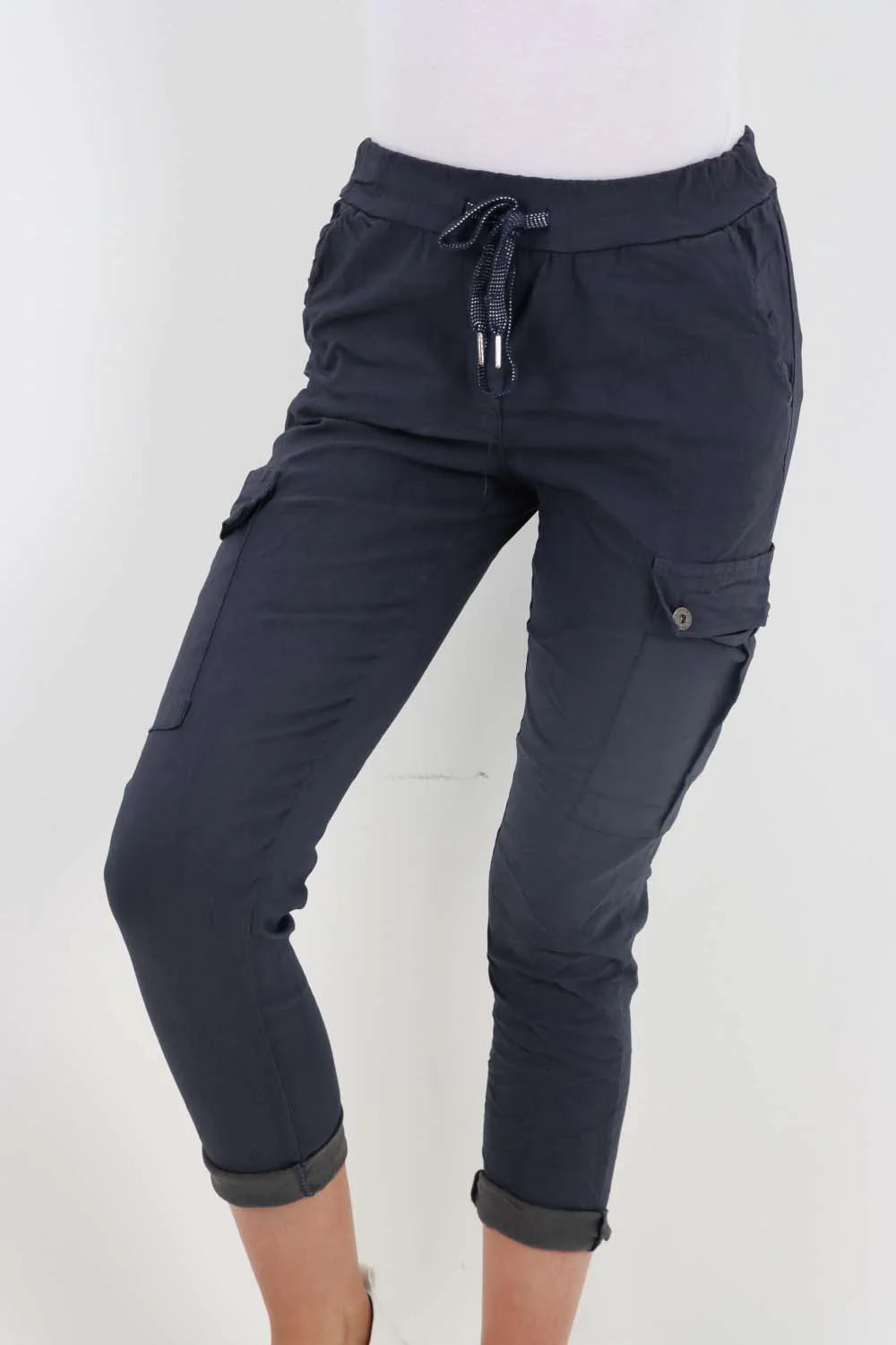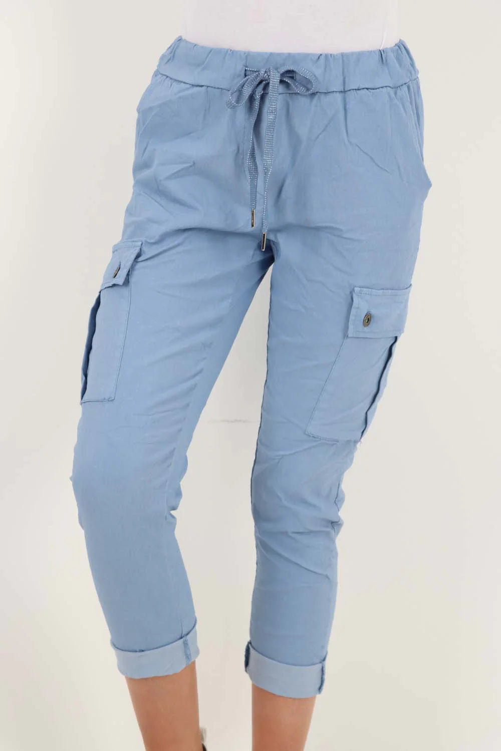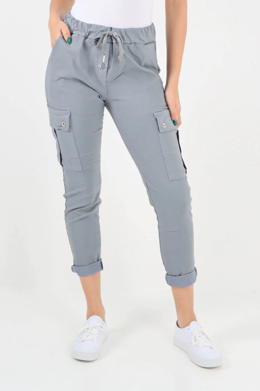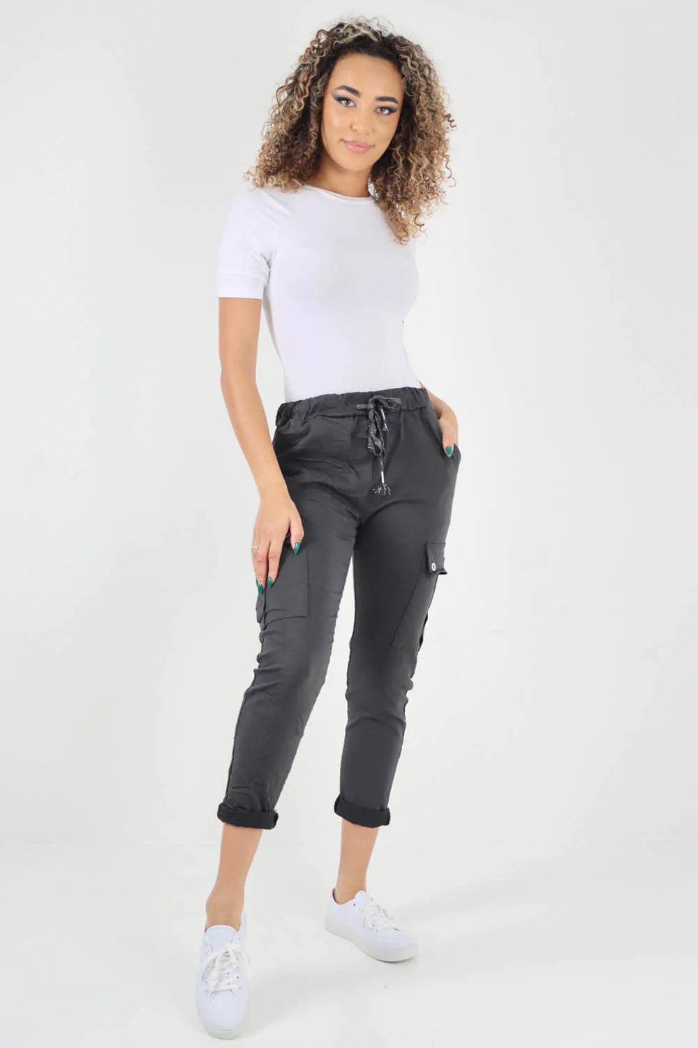 Italian Drawstring Camo Side Pockets Cargo Trousers