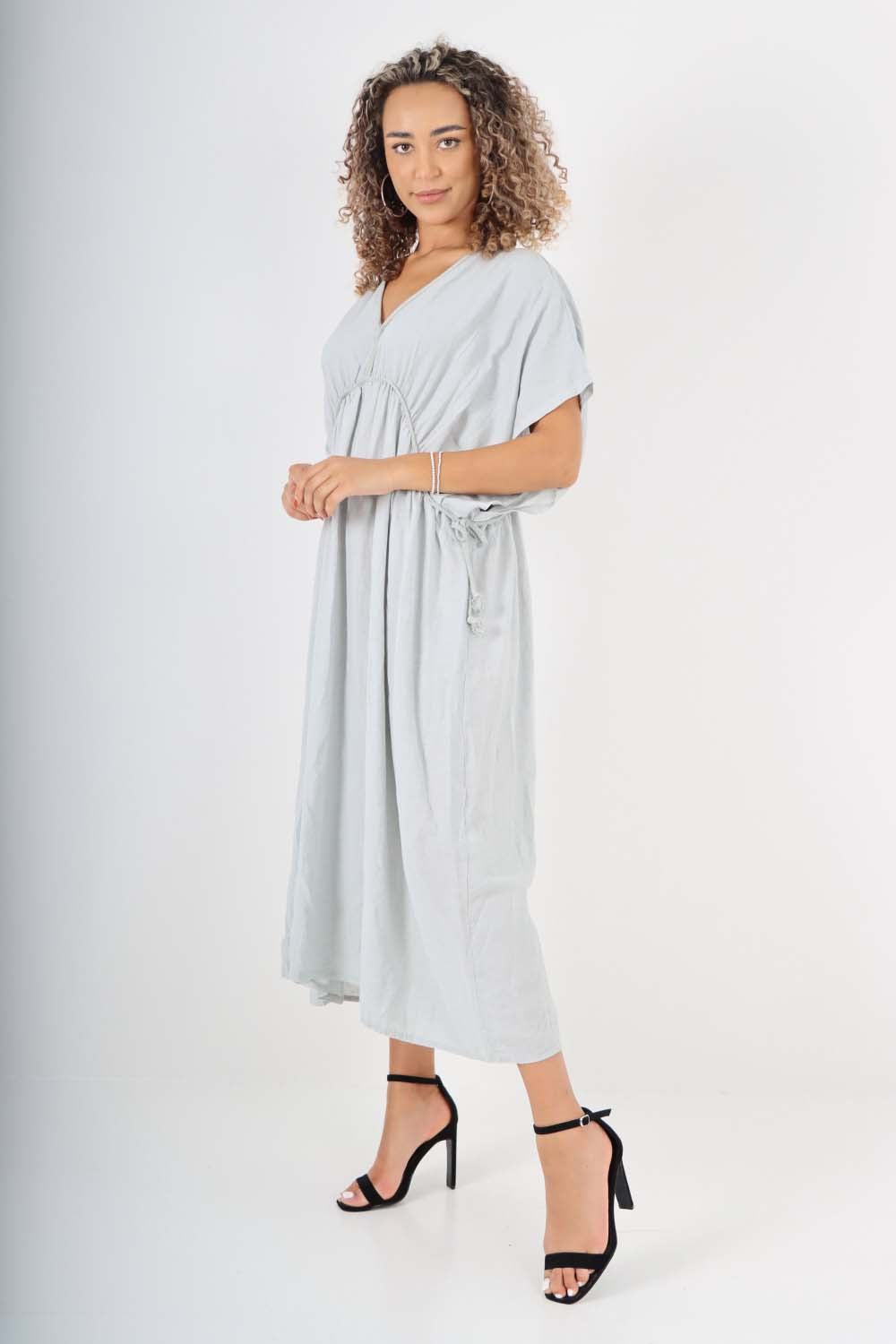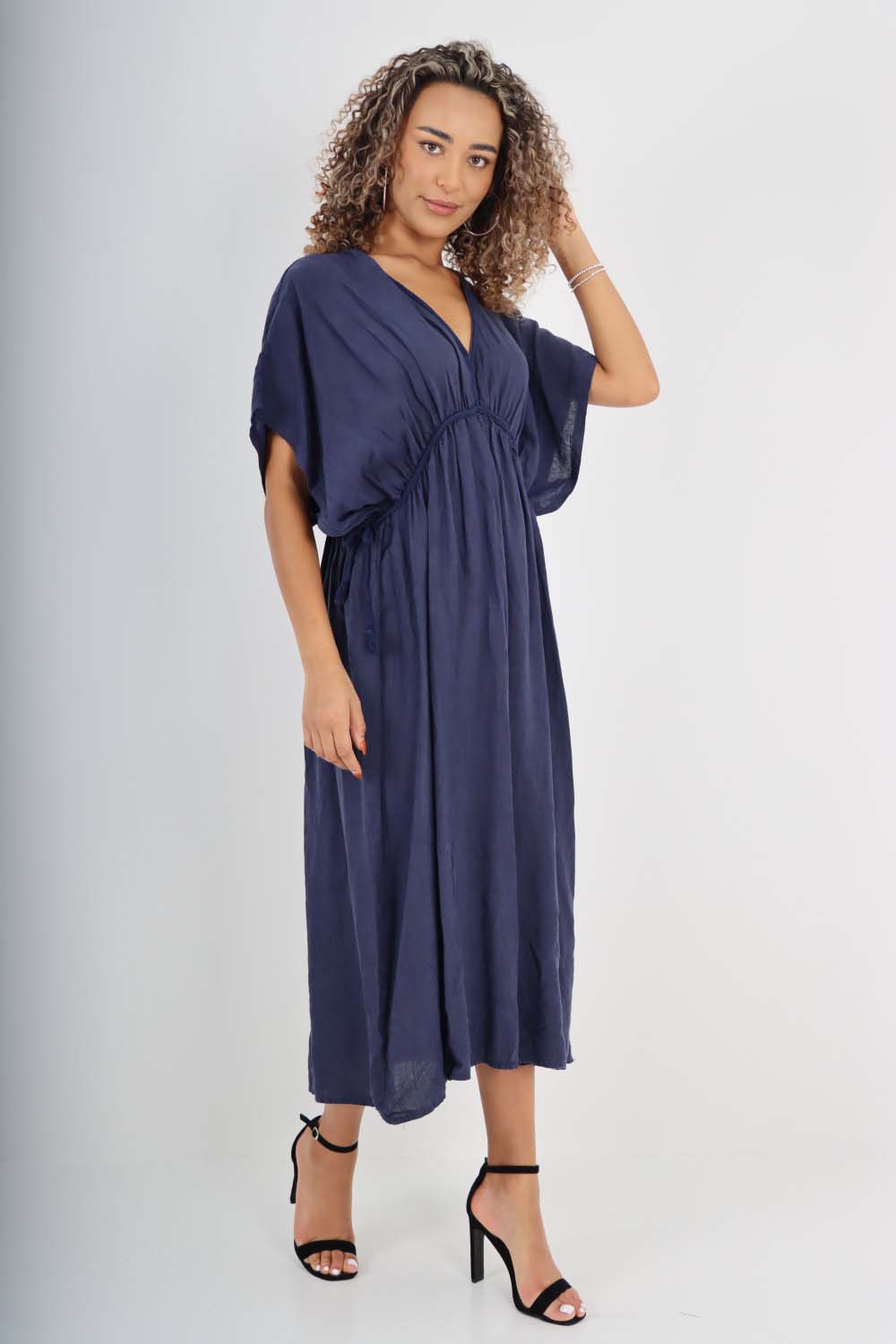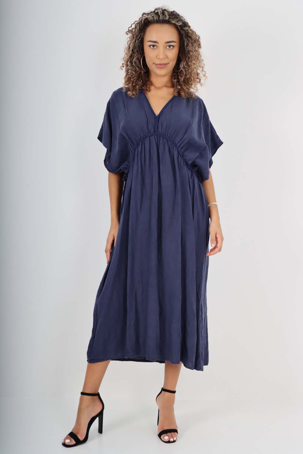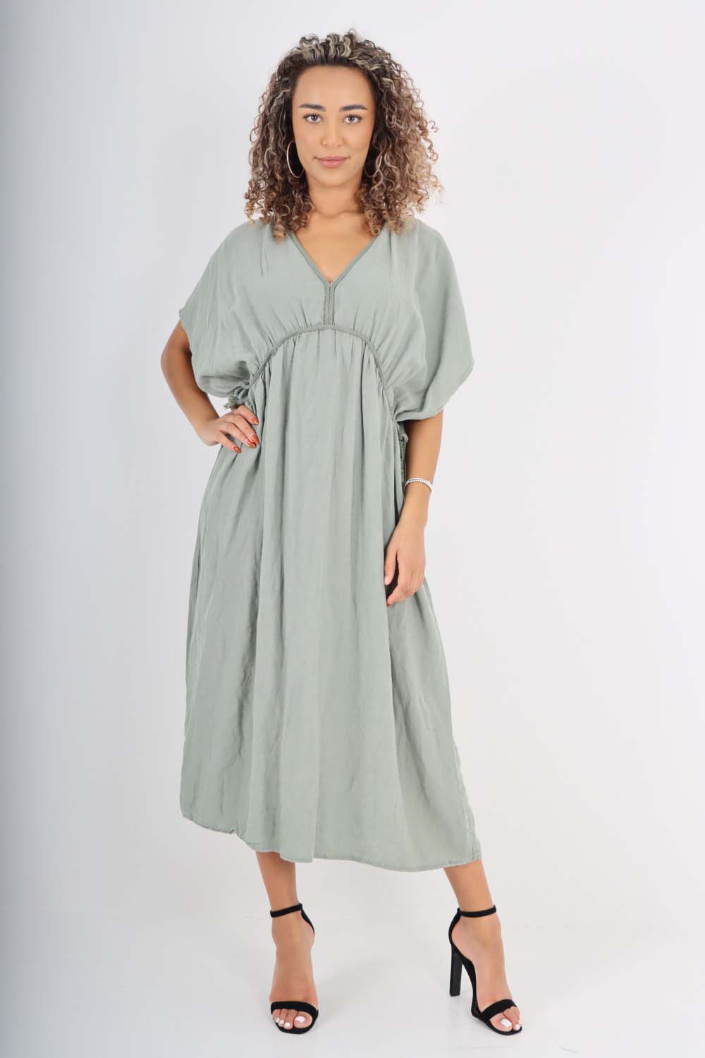 Italian Deep V - Neck Tiered Short Sleeve Smock Dress