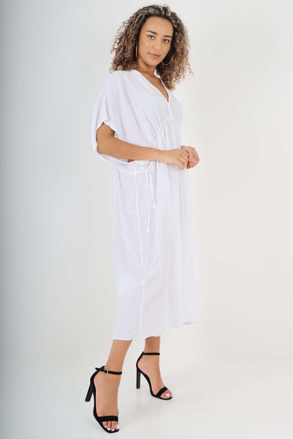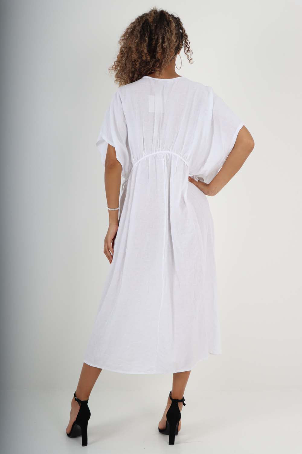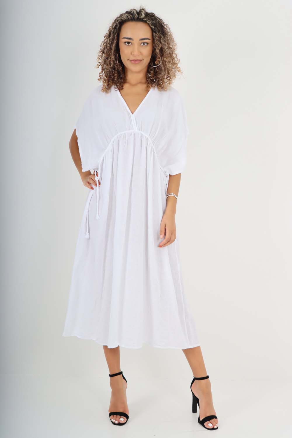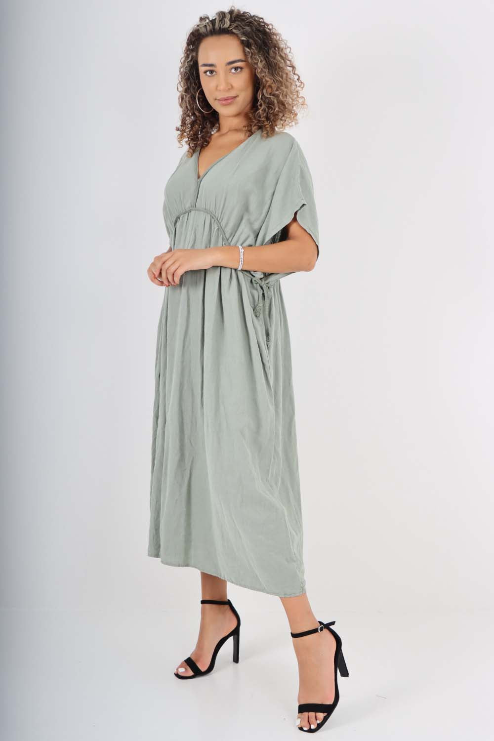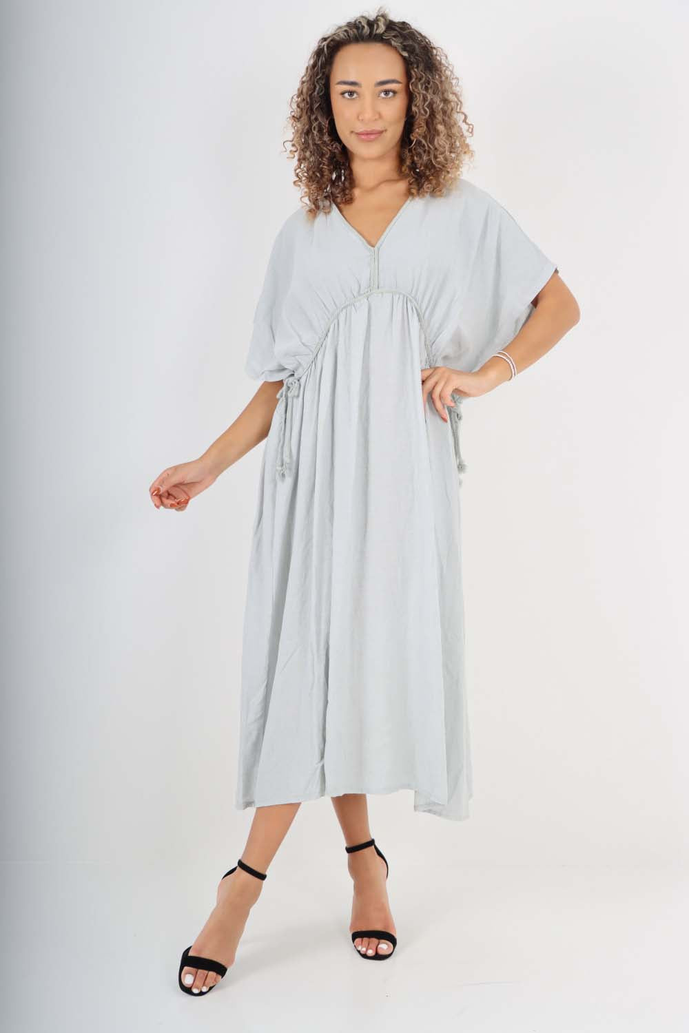 Italian Deep V - Neck Tiered Short Sleeve Smock Dress