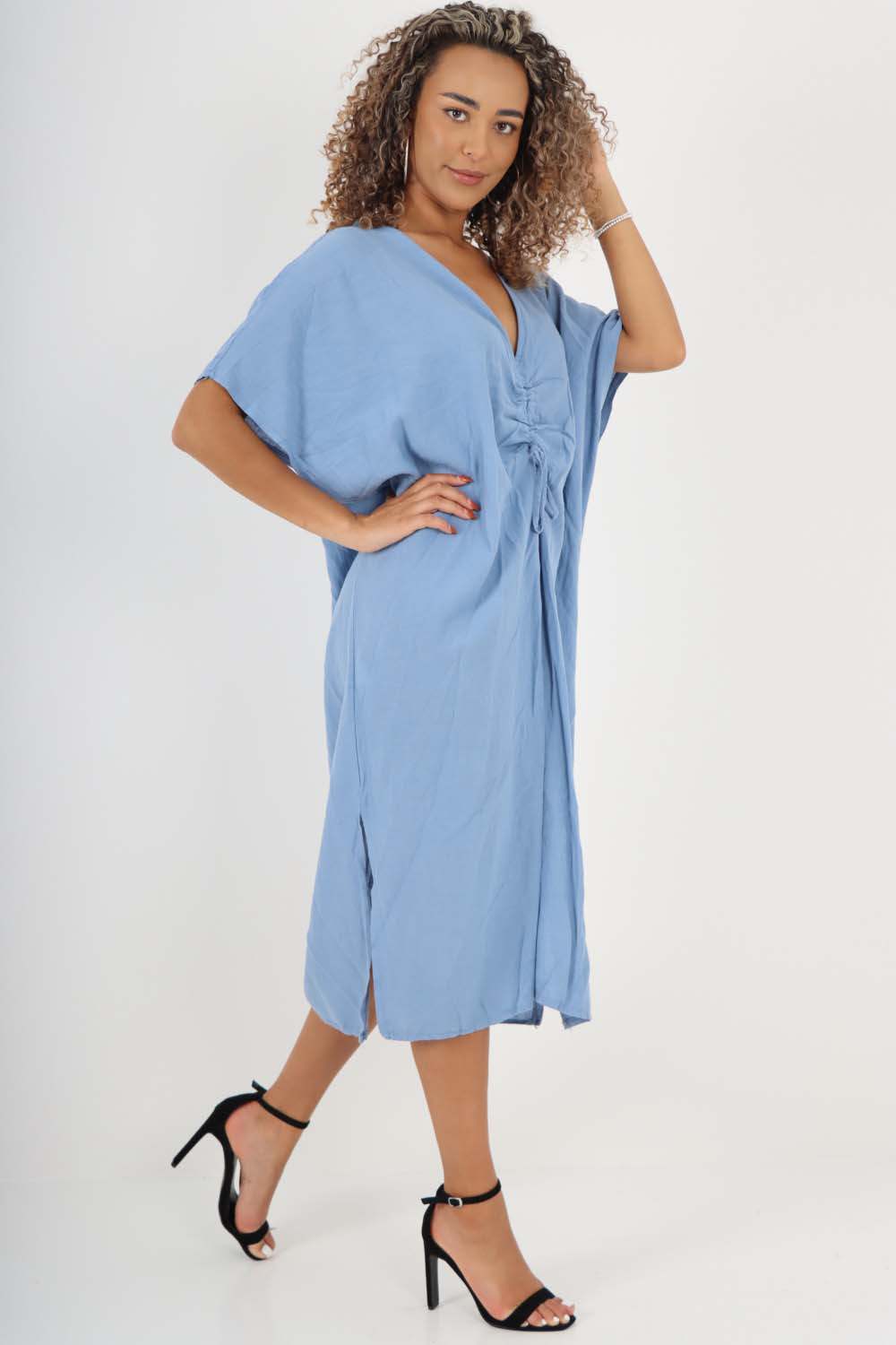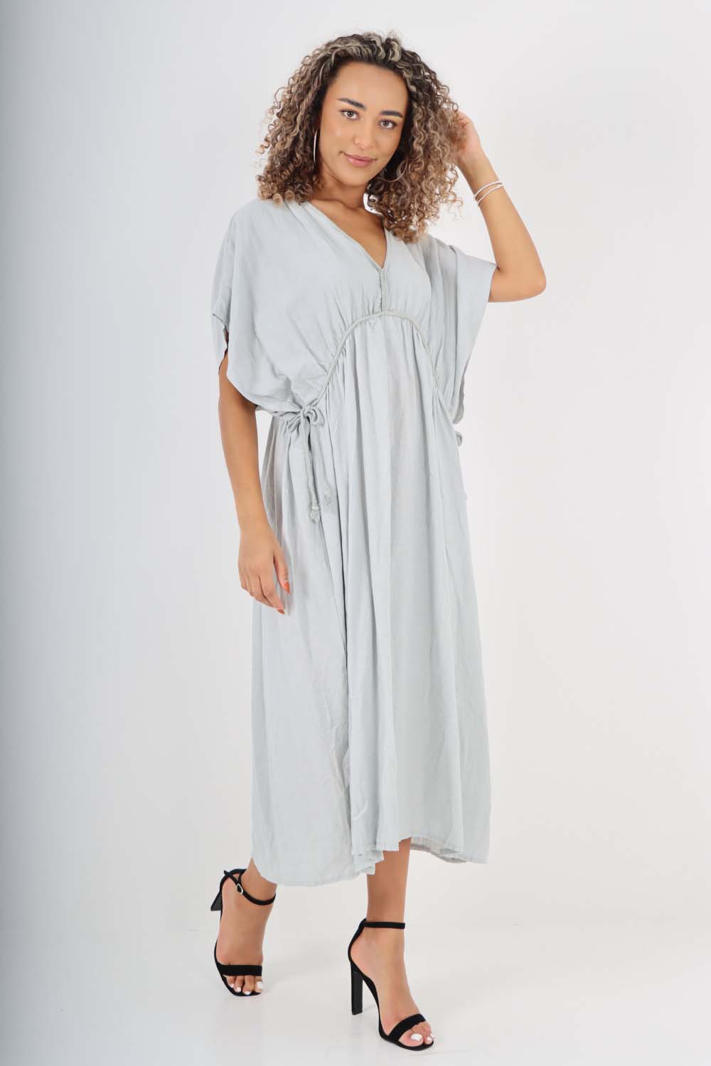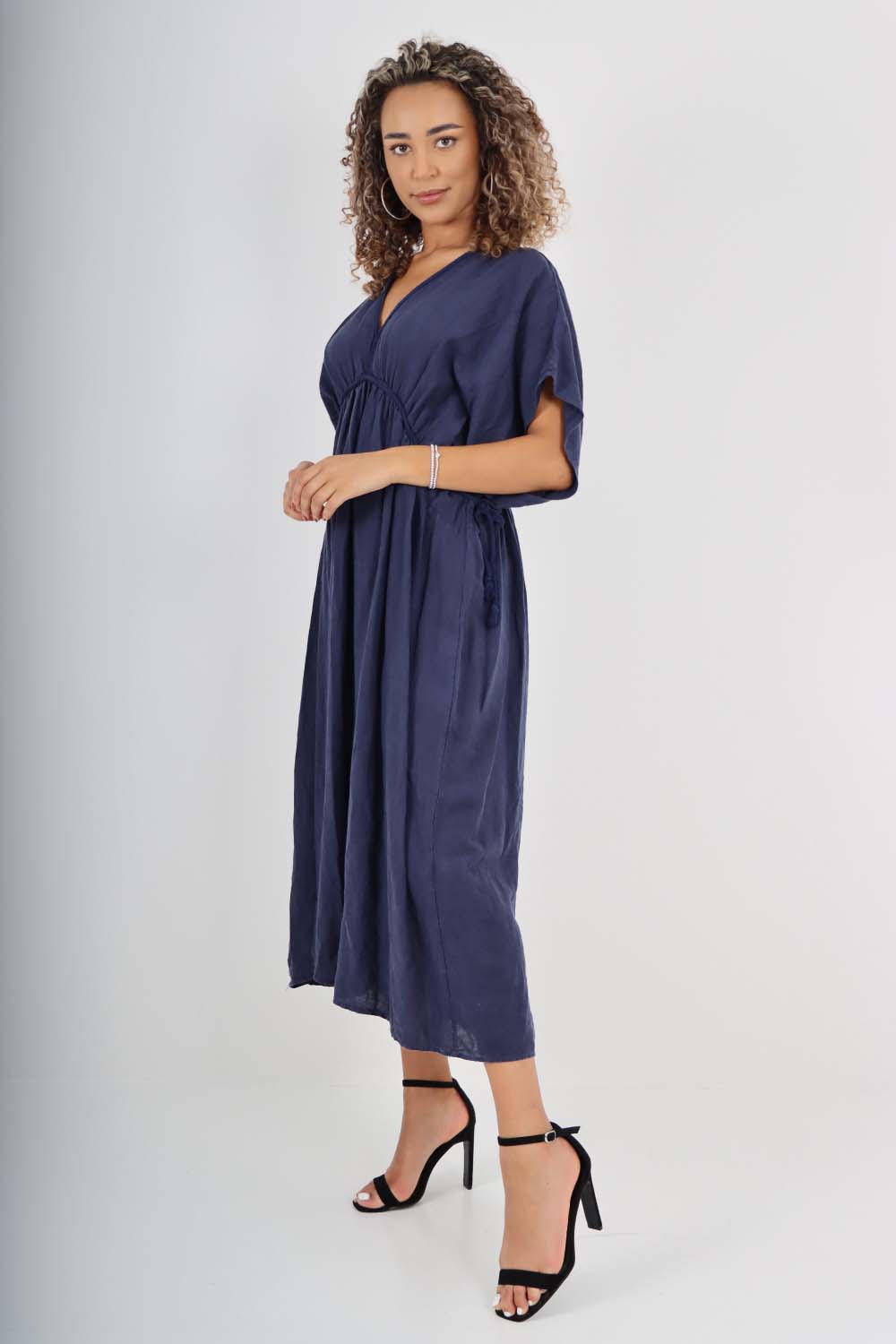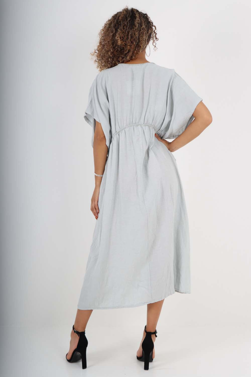 Italian Deep V - Neck Tiered Short Sleeve Smock Dress