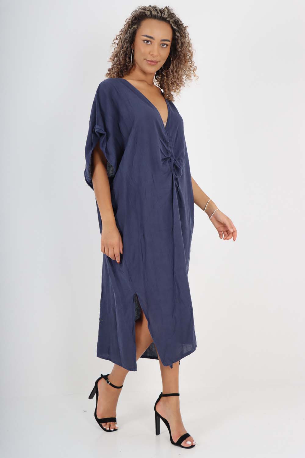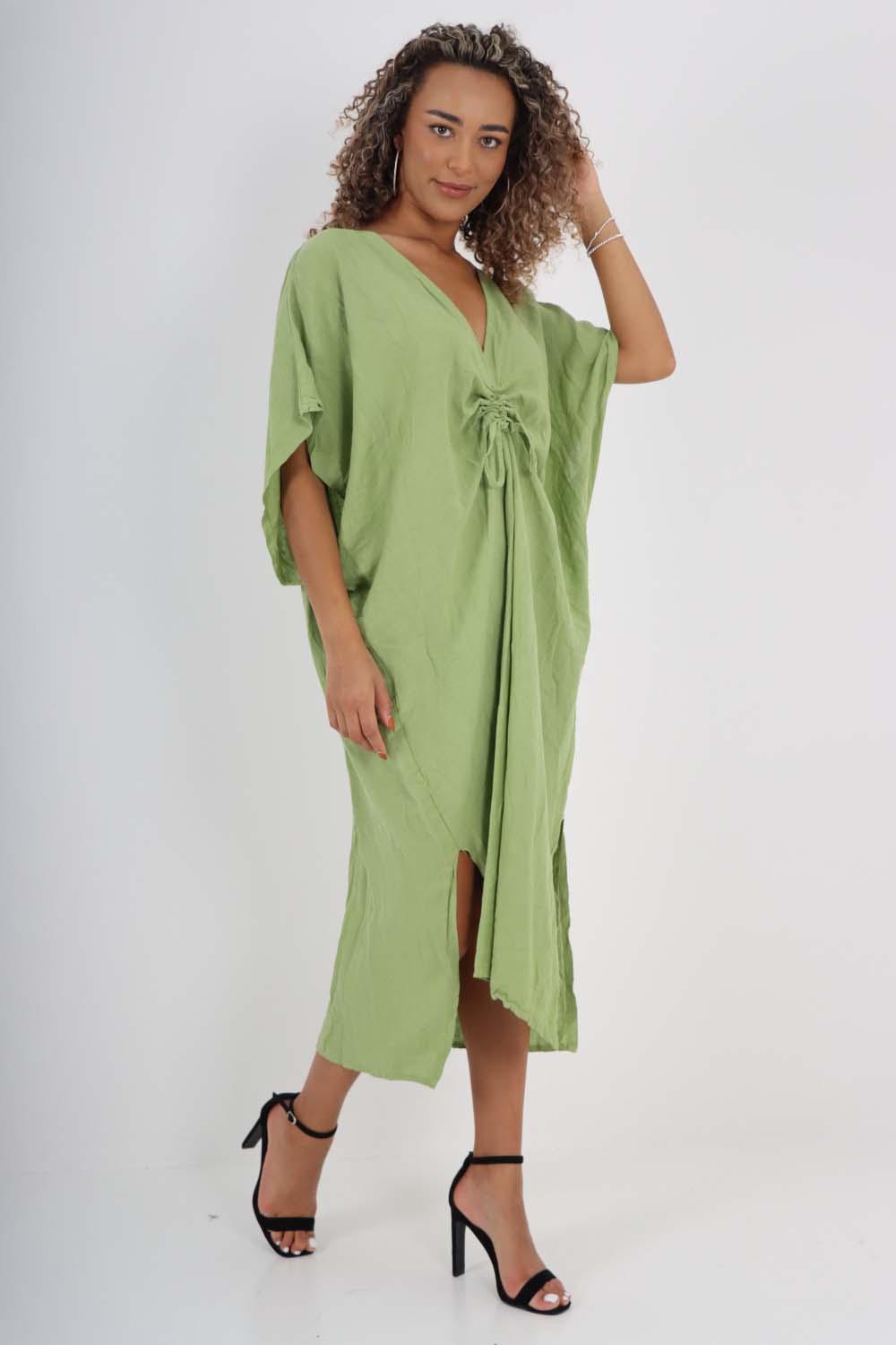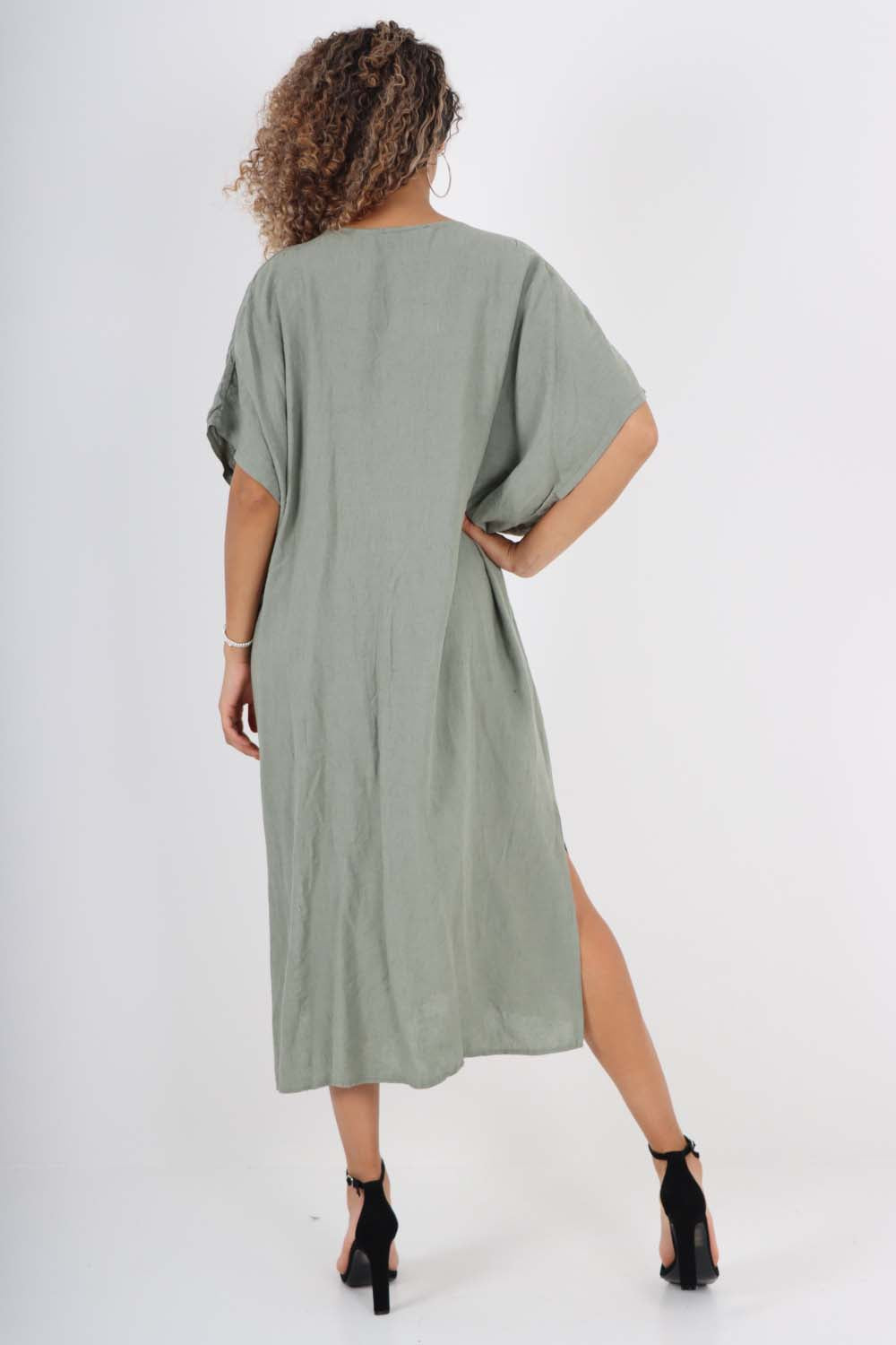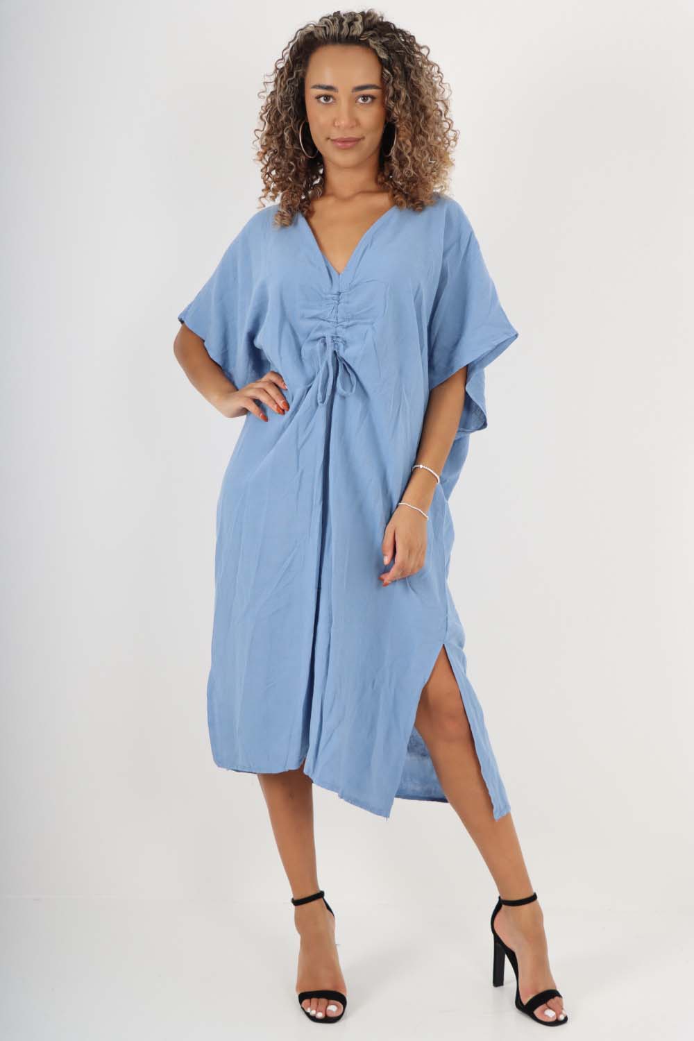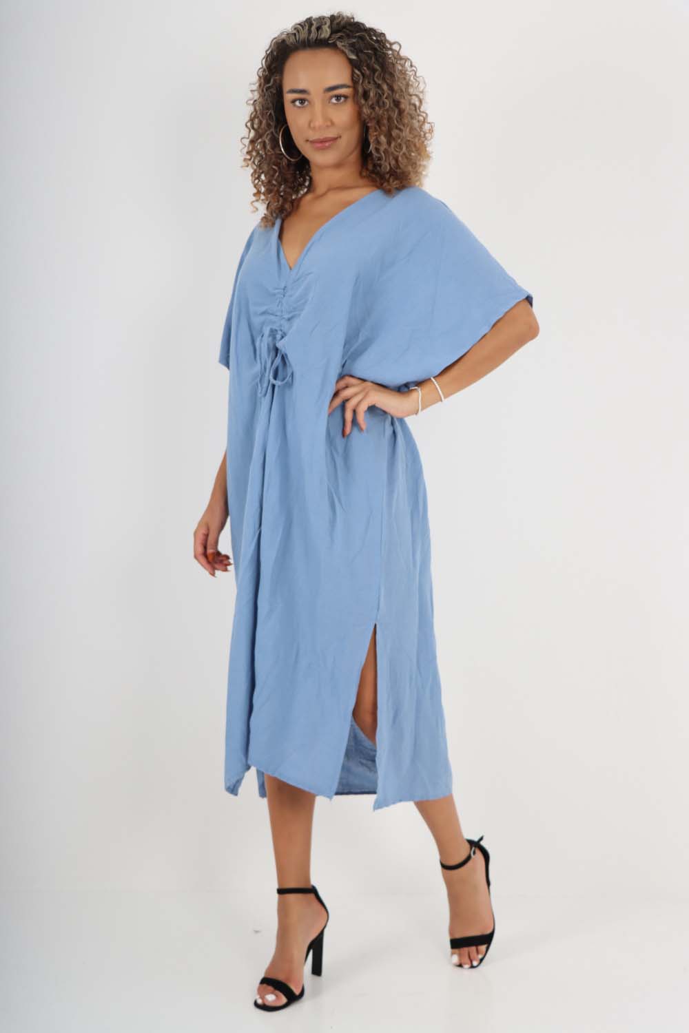 Italian Deep V - Neck Tiered Short Sleeve Smock Dress