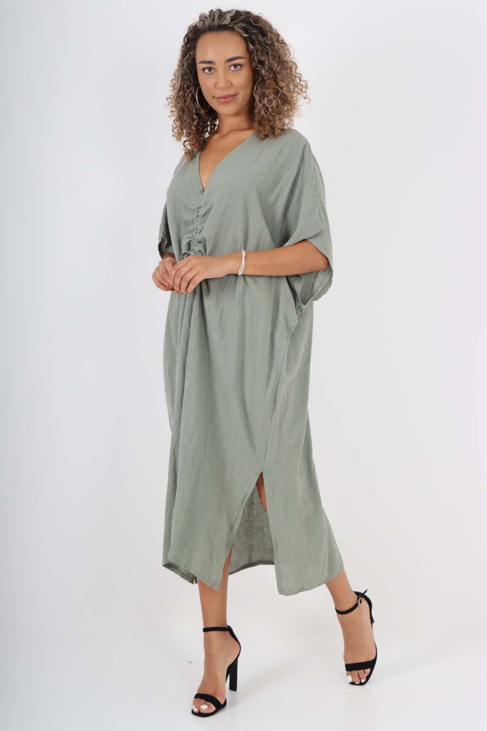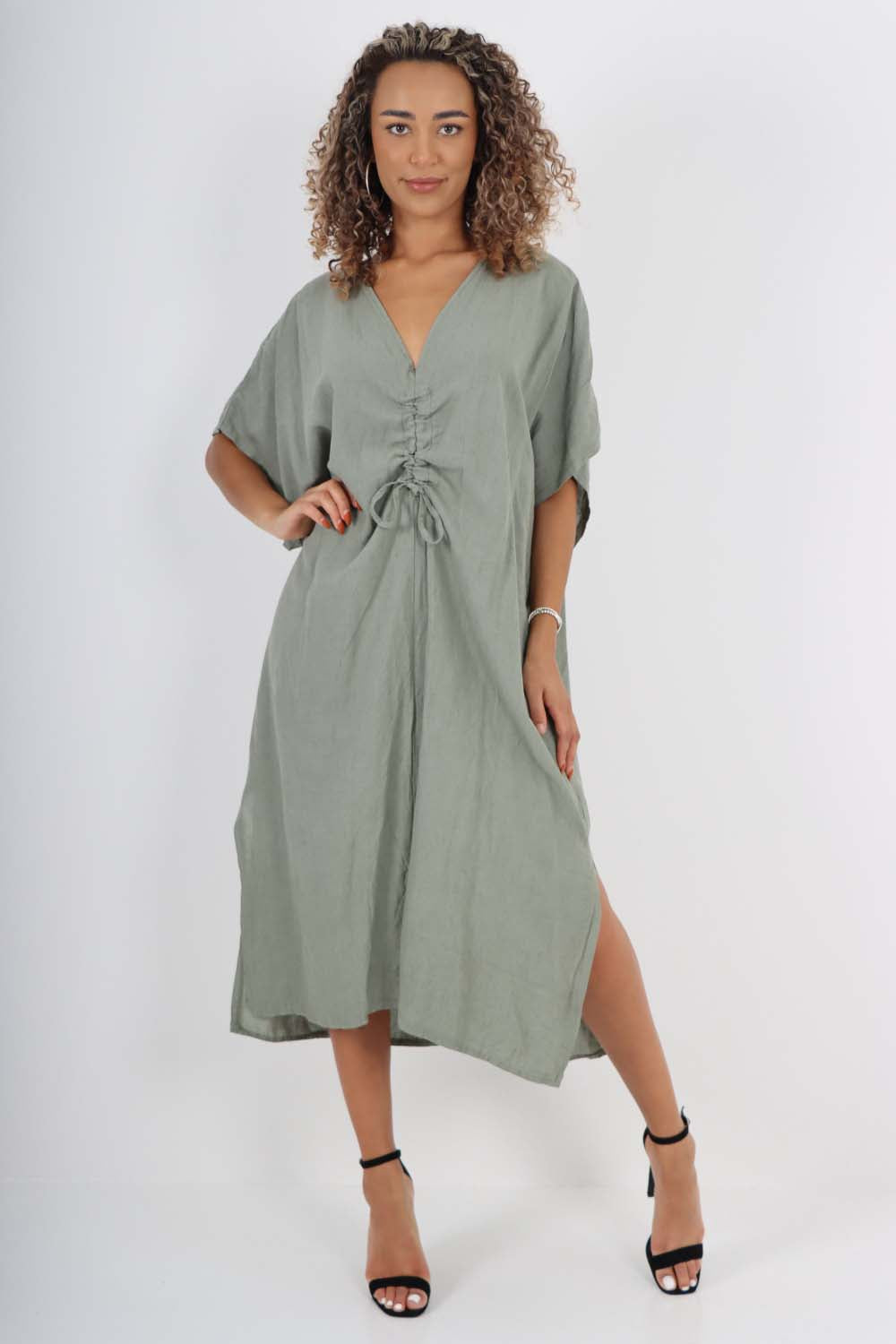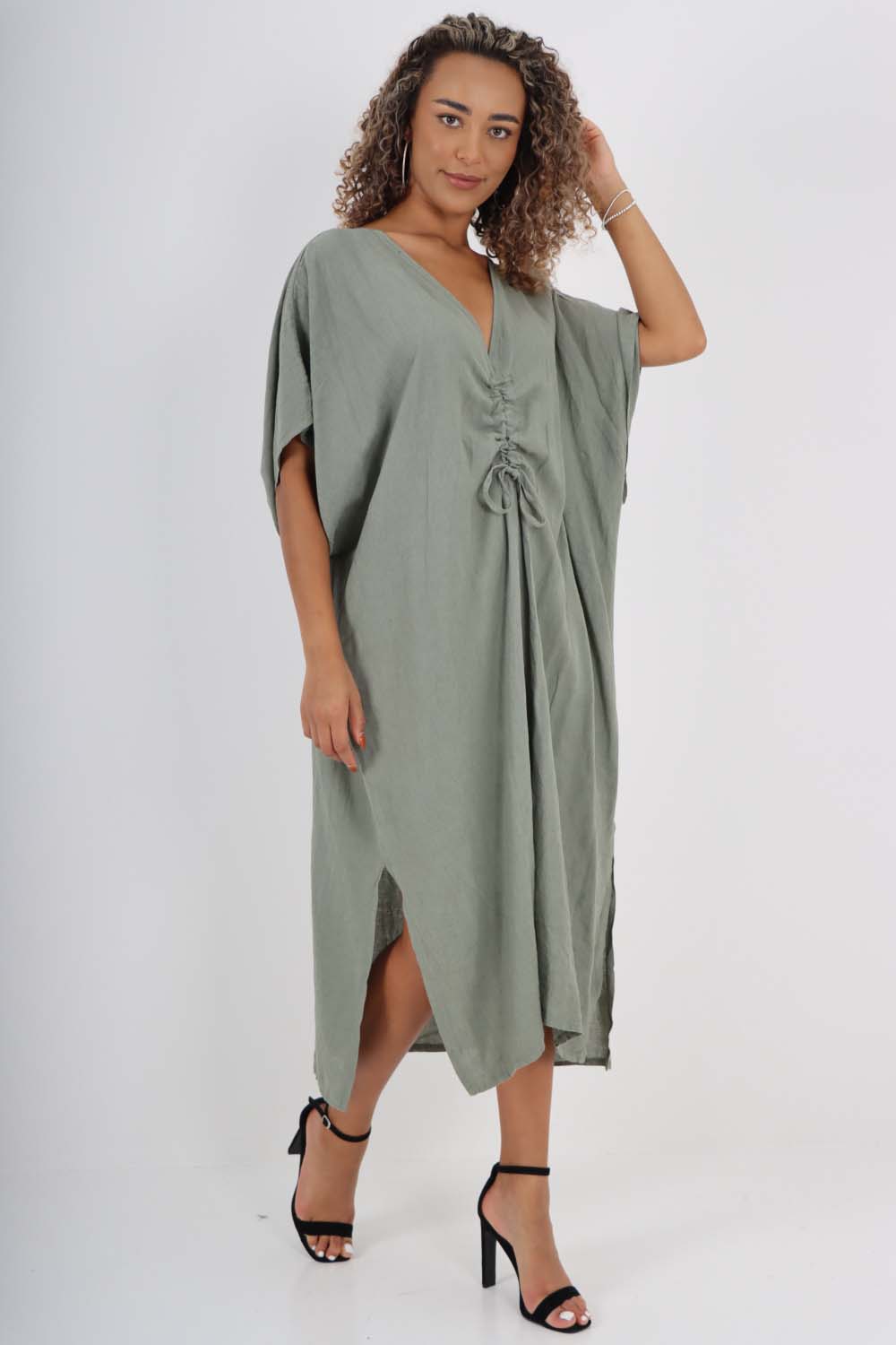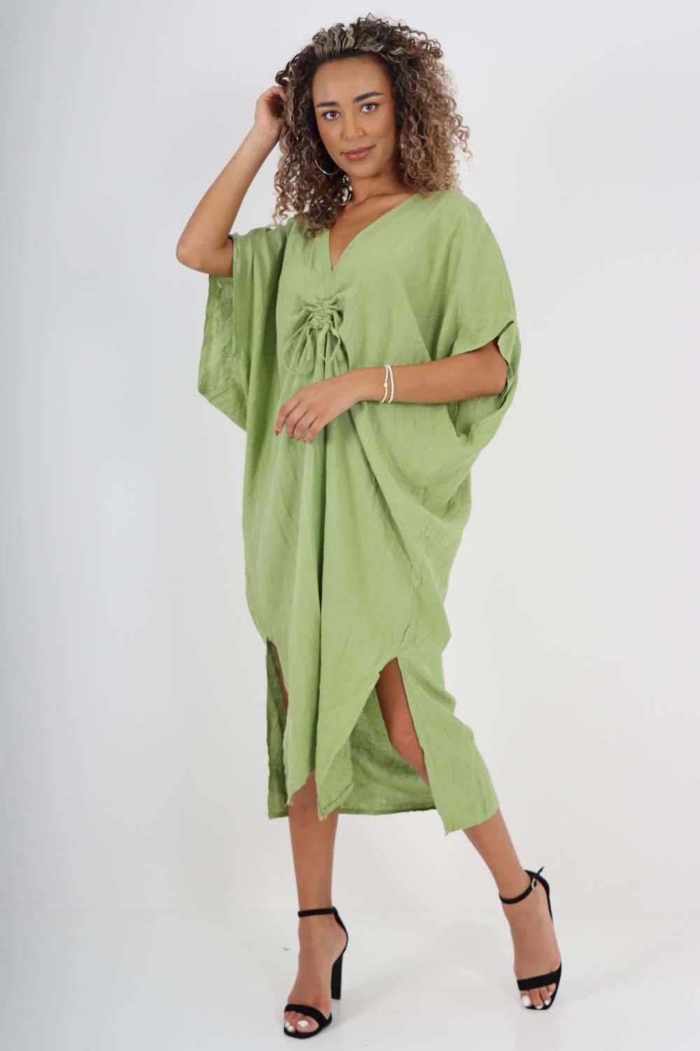 Italian Deep V - Neck Tiered Short Sleeve Smock Dress