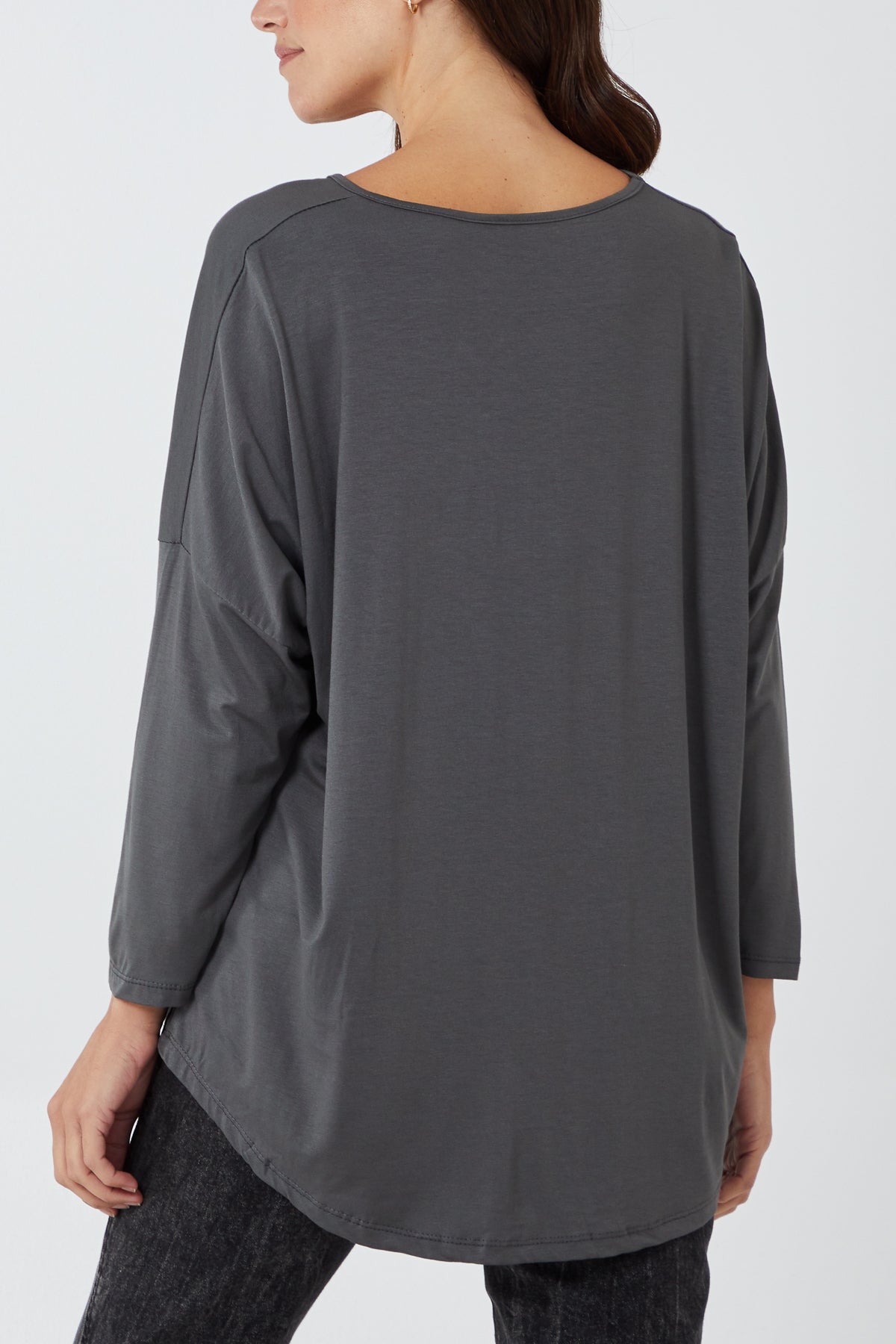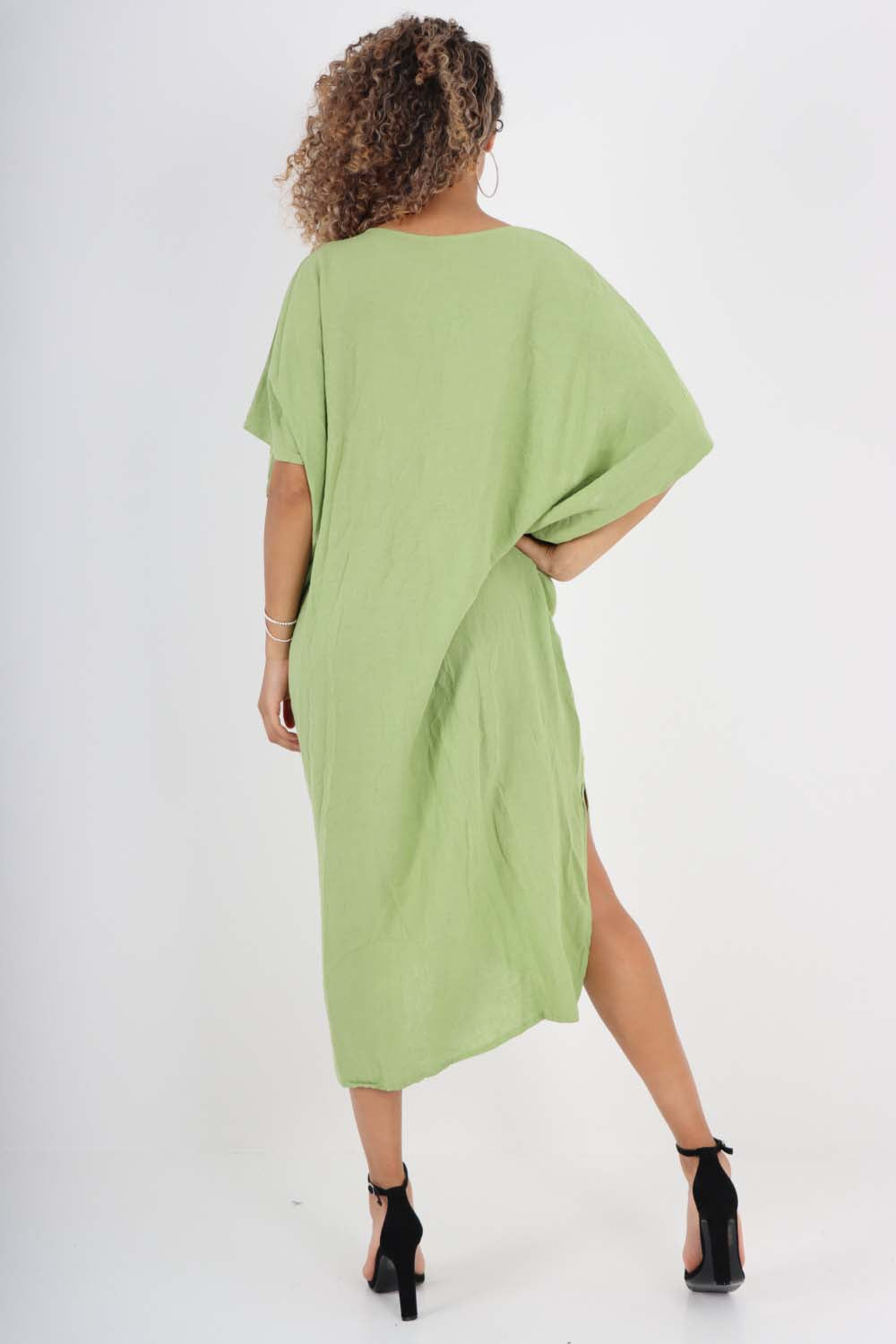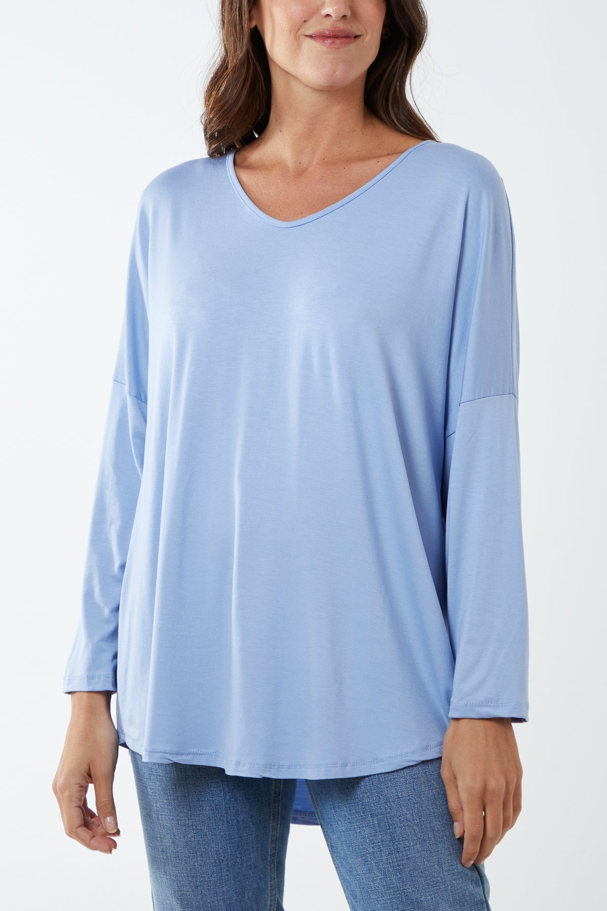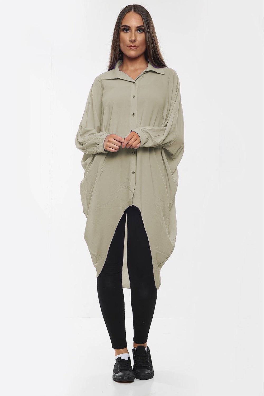 High-Low Oversized Button Long Top Shirt Dress with Hem and Long Sleeves