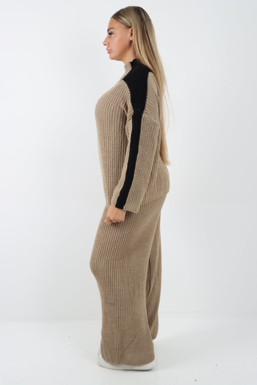 Italian Basic Knitted Plain Soft Top & Trouser Co - Ord Set