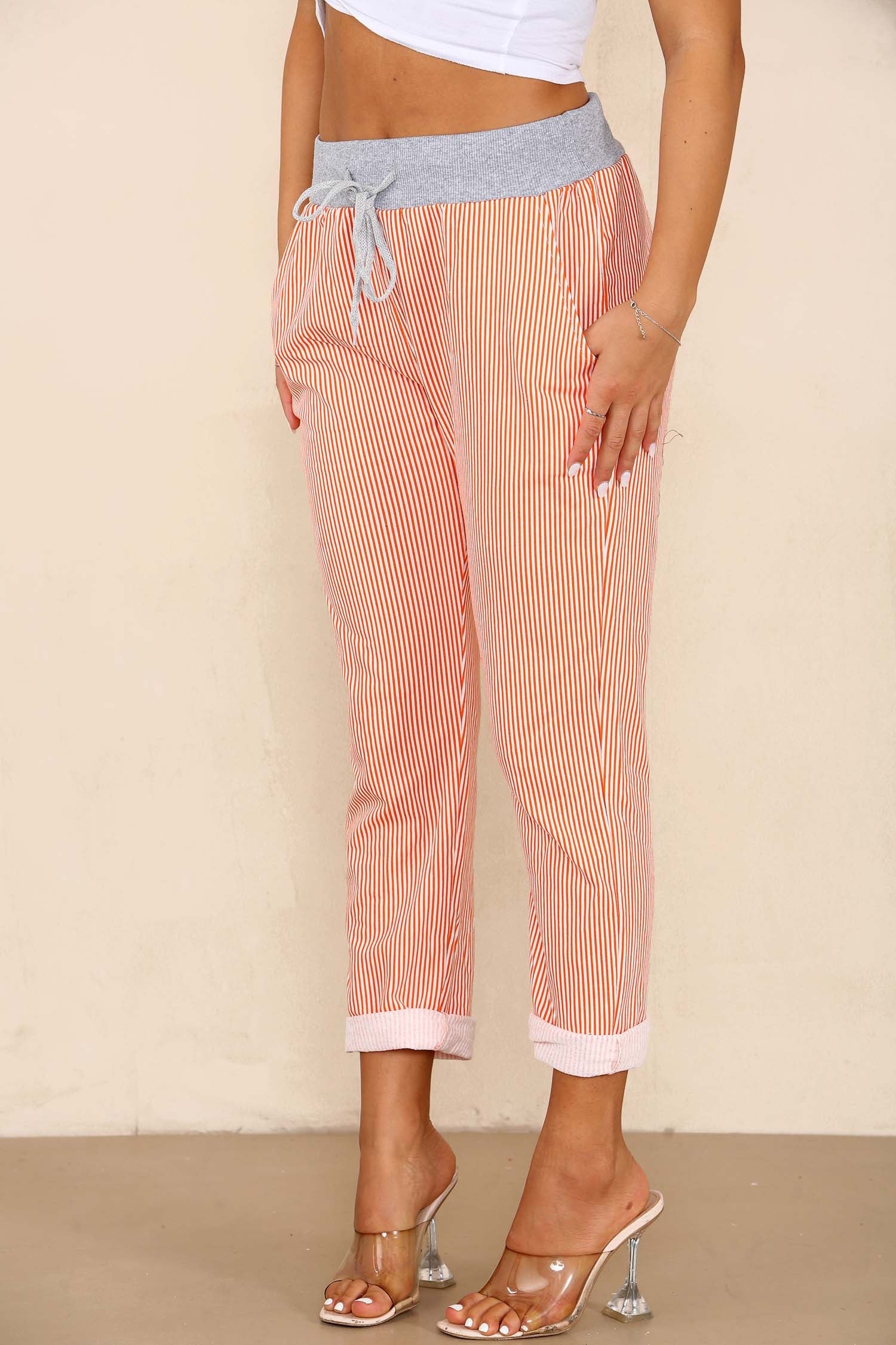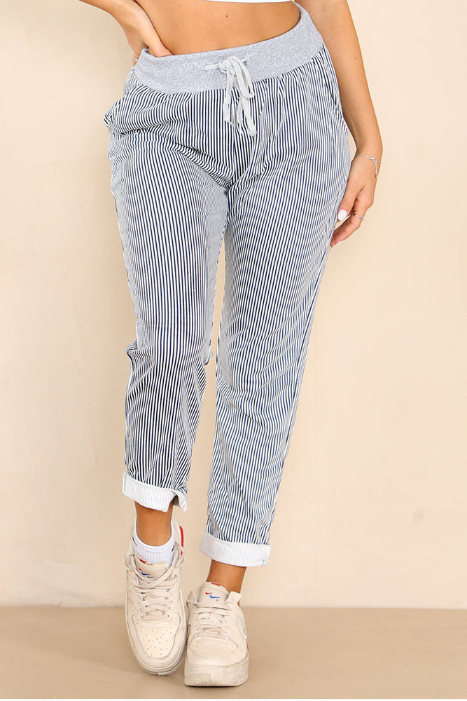 Italian Striped Print Drawstring Cotton Joggers