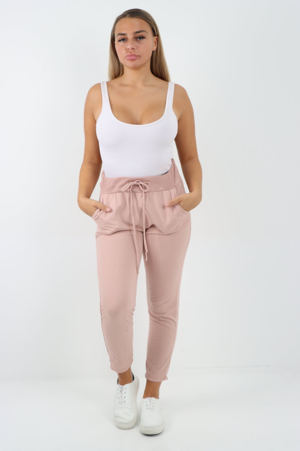 Italian Plain Basic Drawstring Joggers Cotton Trousers