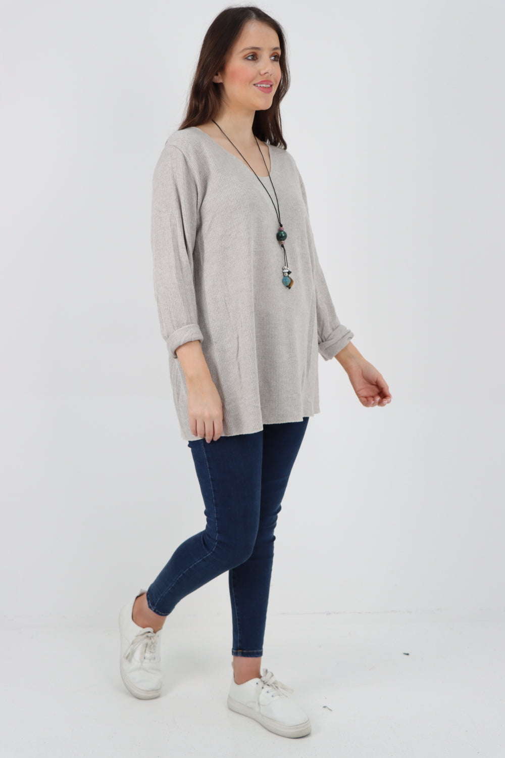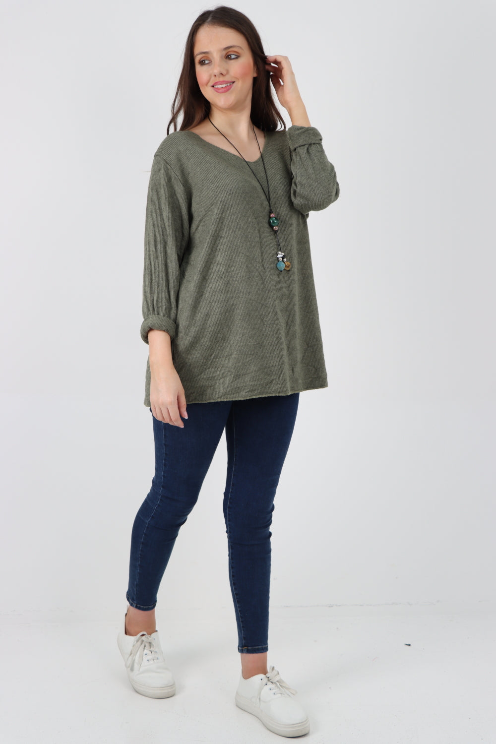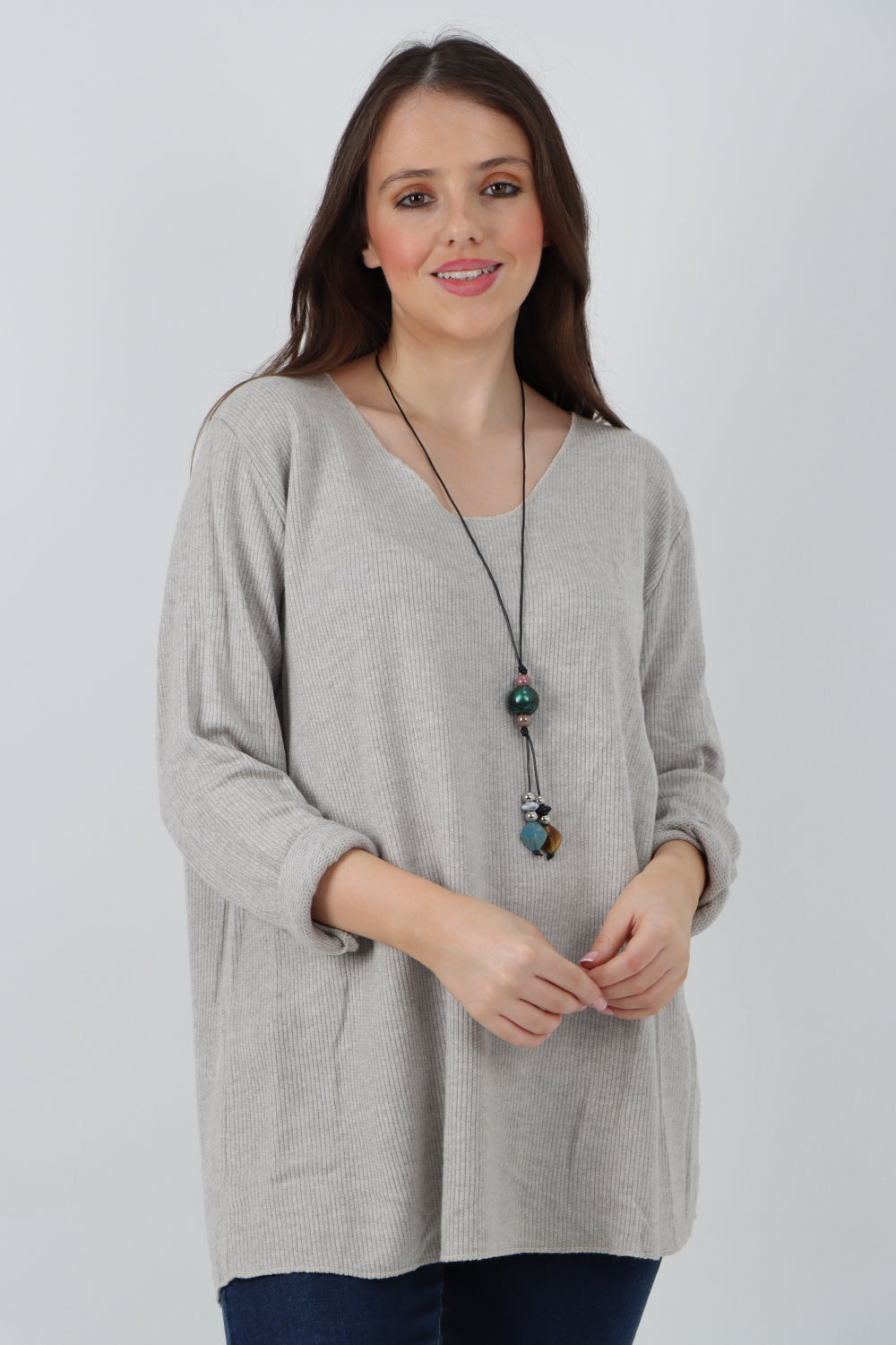 Italian Oversized V Neck Ring Detail Kaftan Dress