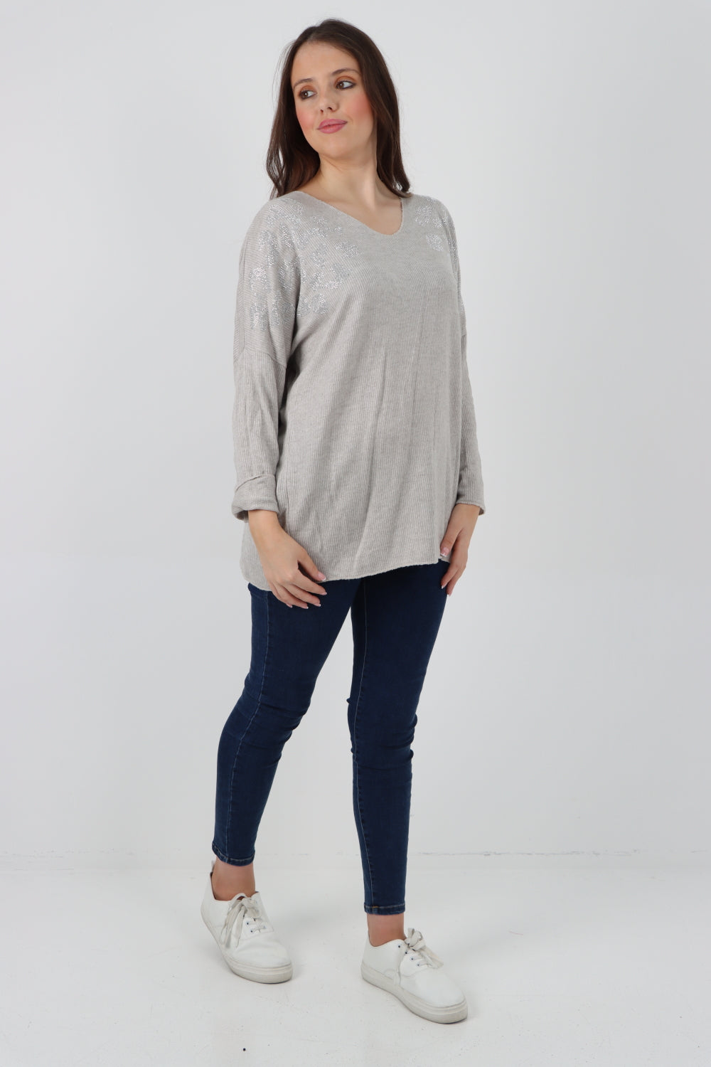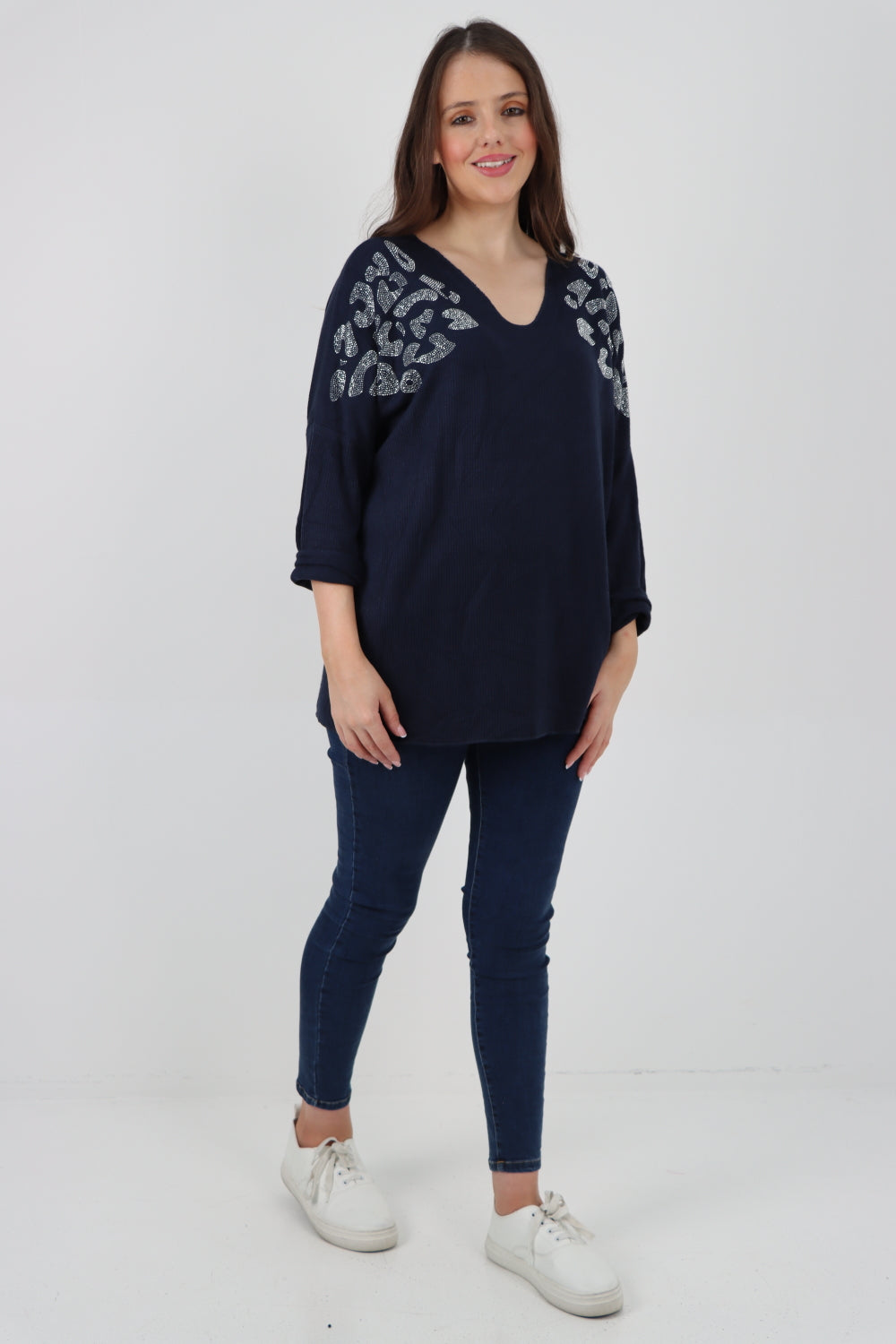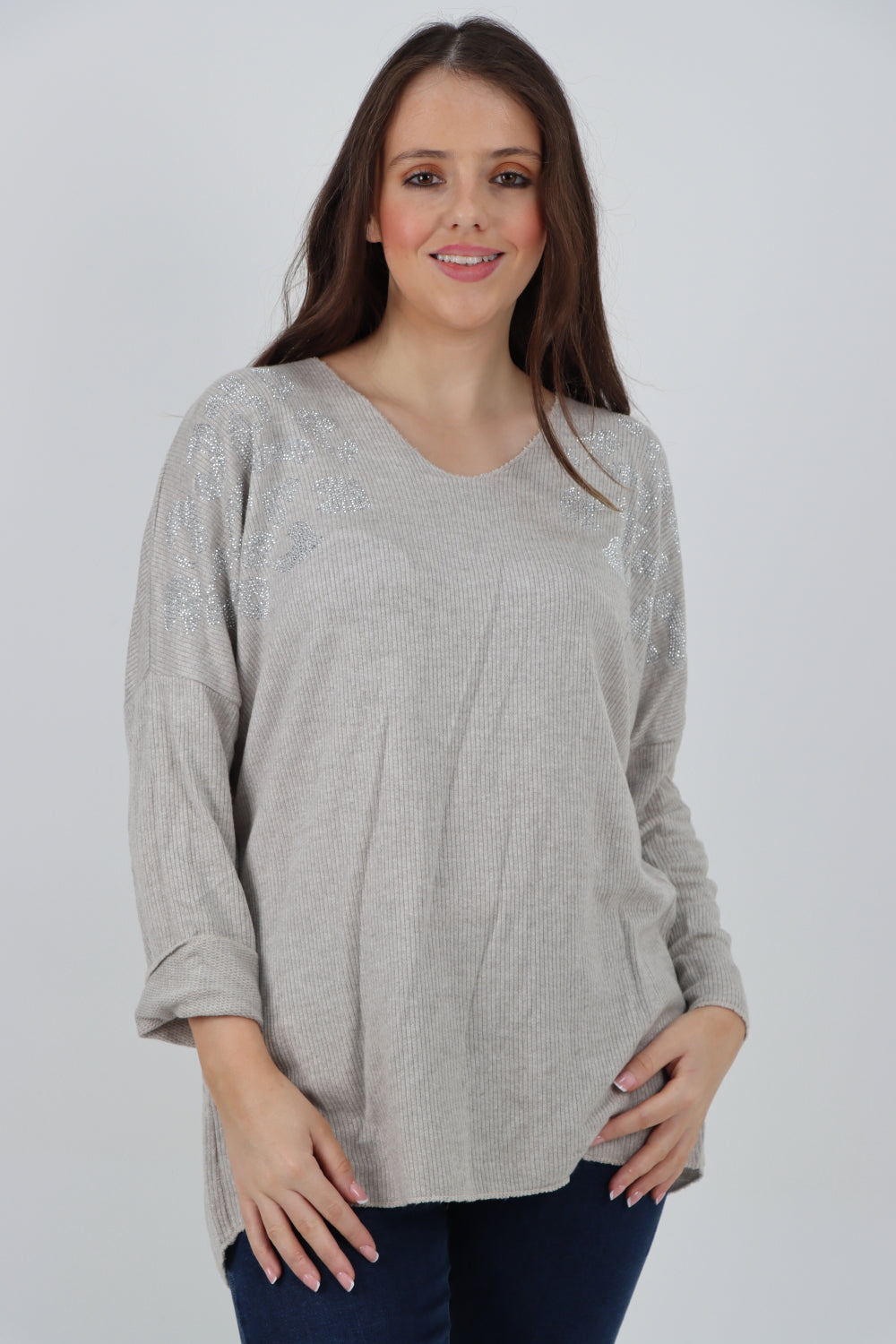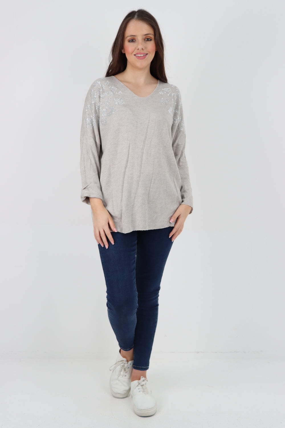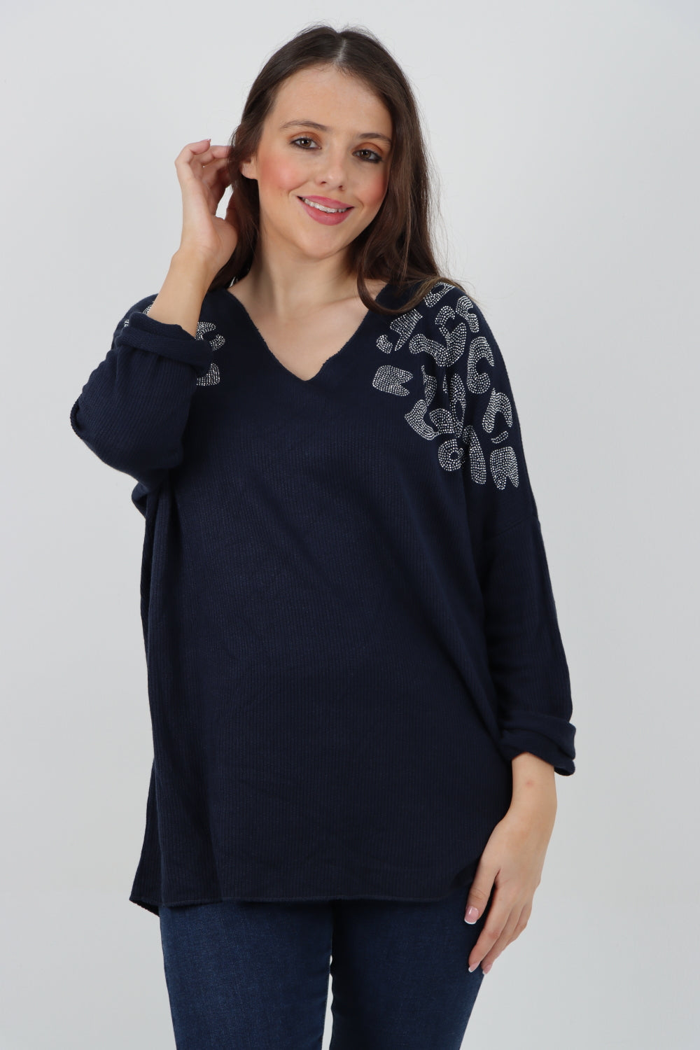 Italian Sequin Detail On Shoulder Soft Knit Jumper Top