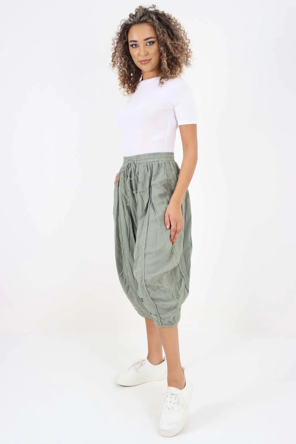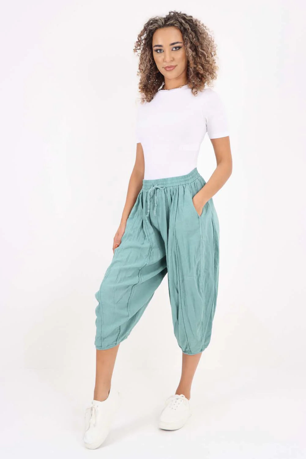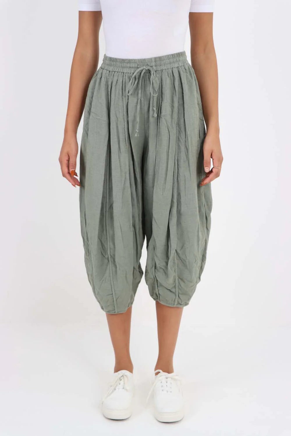 Italian Plain Layered 3/4 Linen Jogger