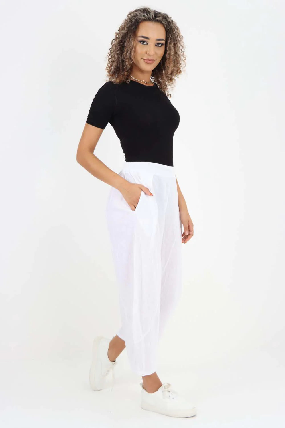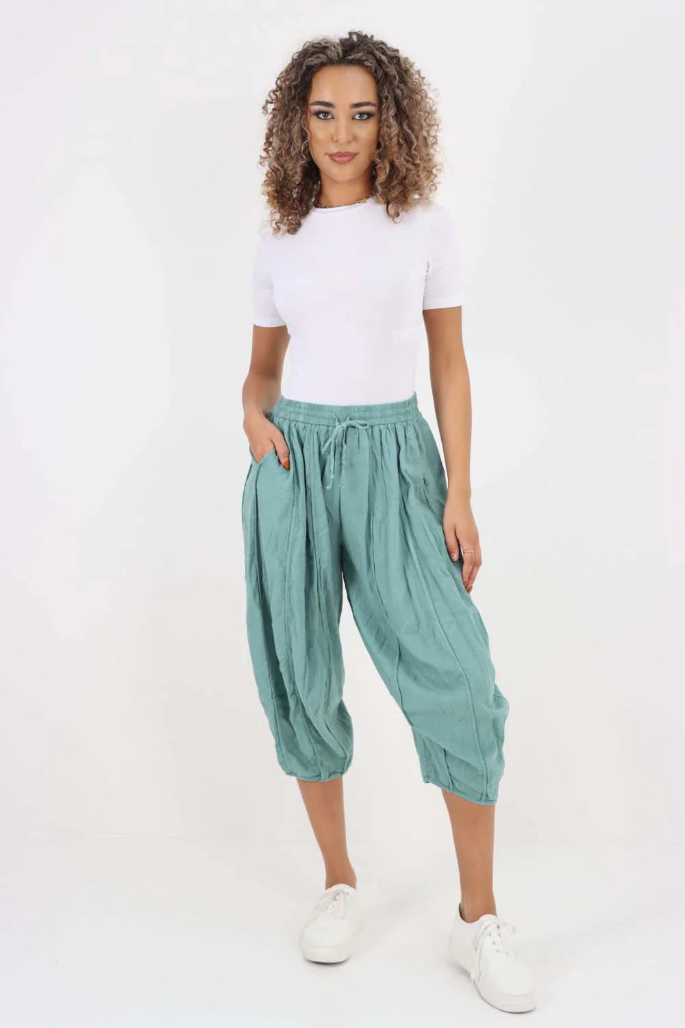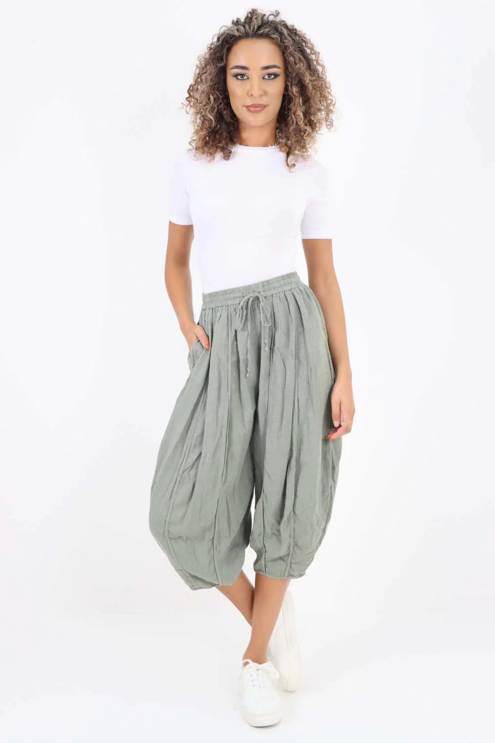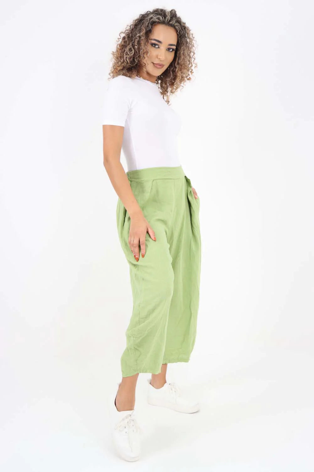 Italian Plain Layered 3/4 Linen Jogger