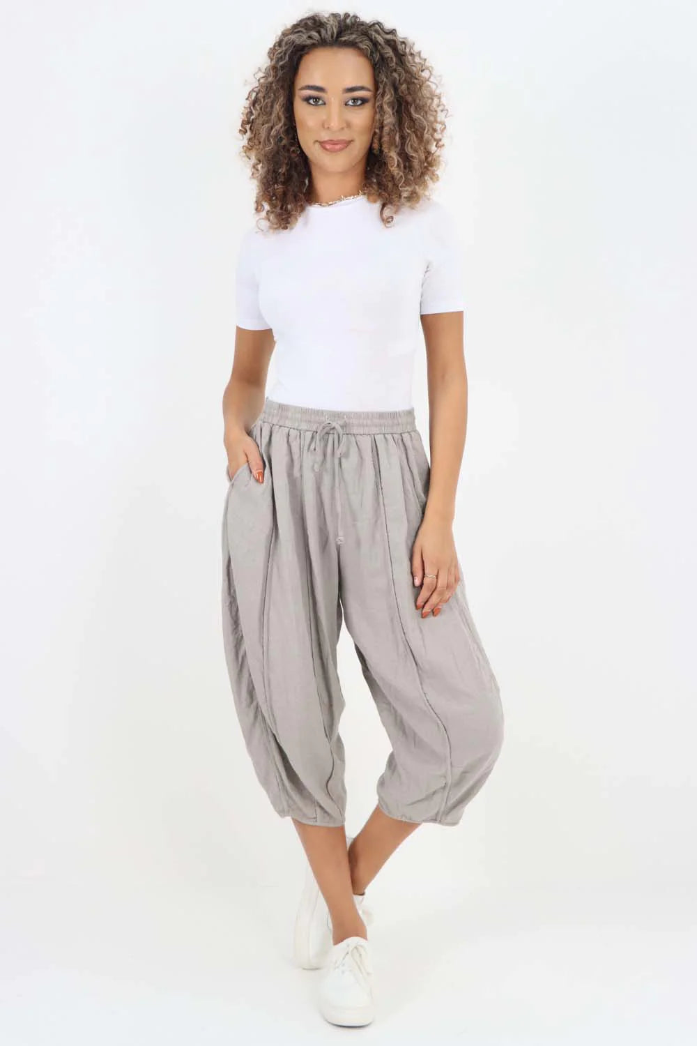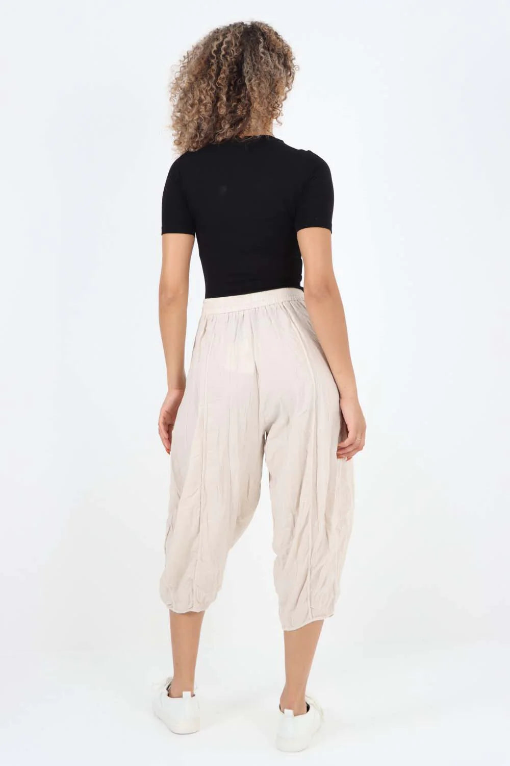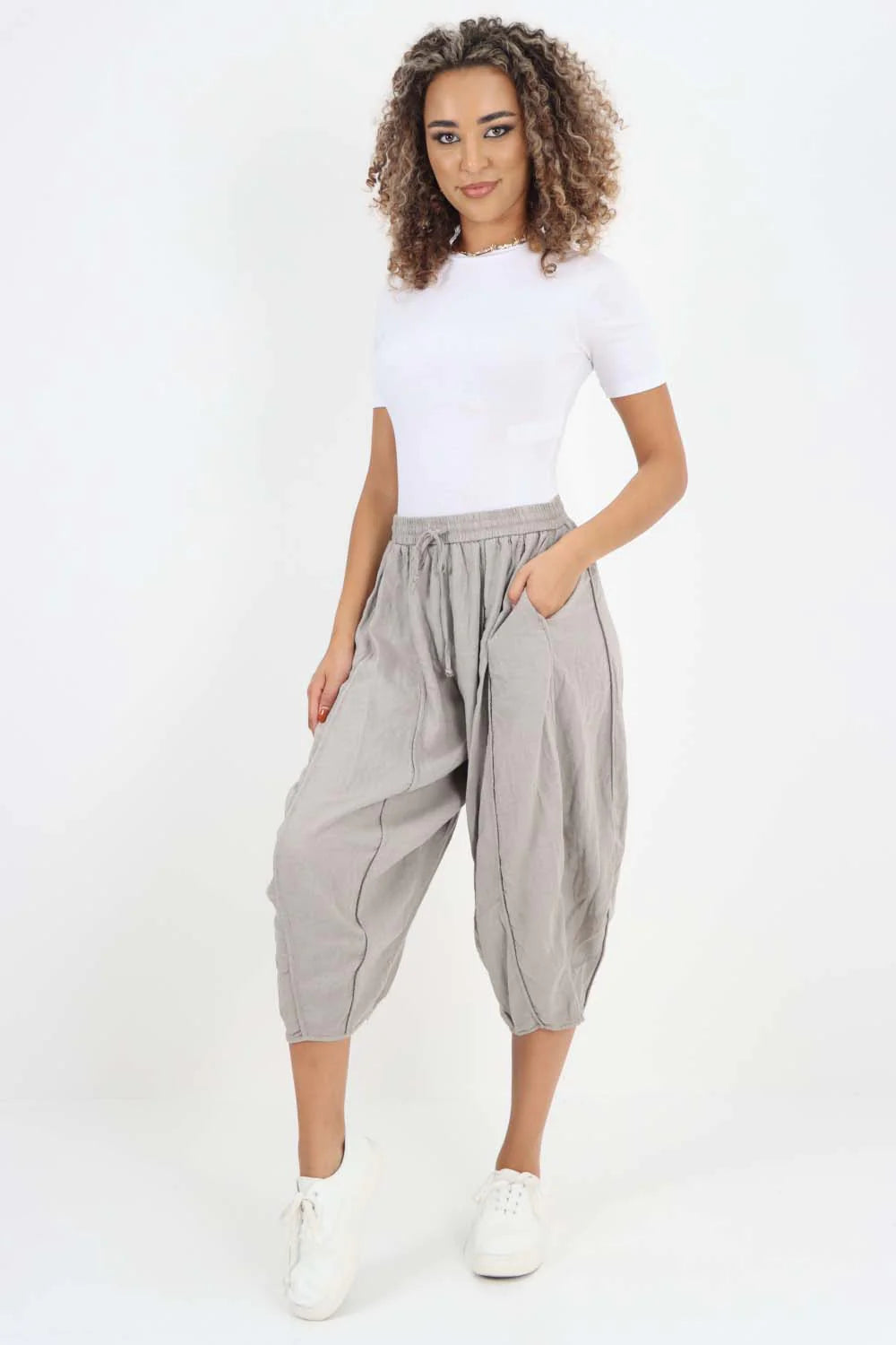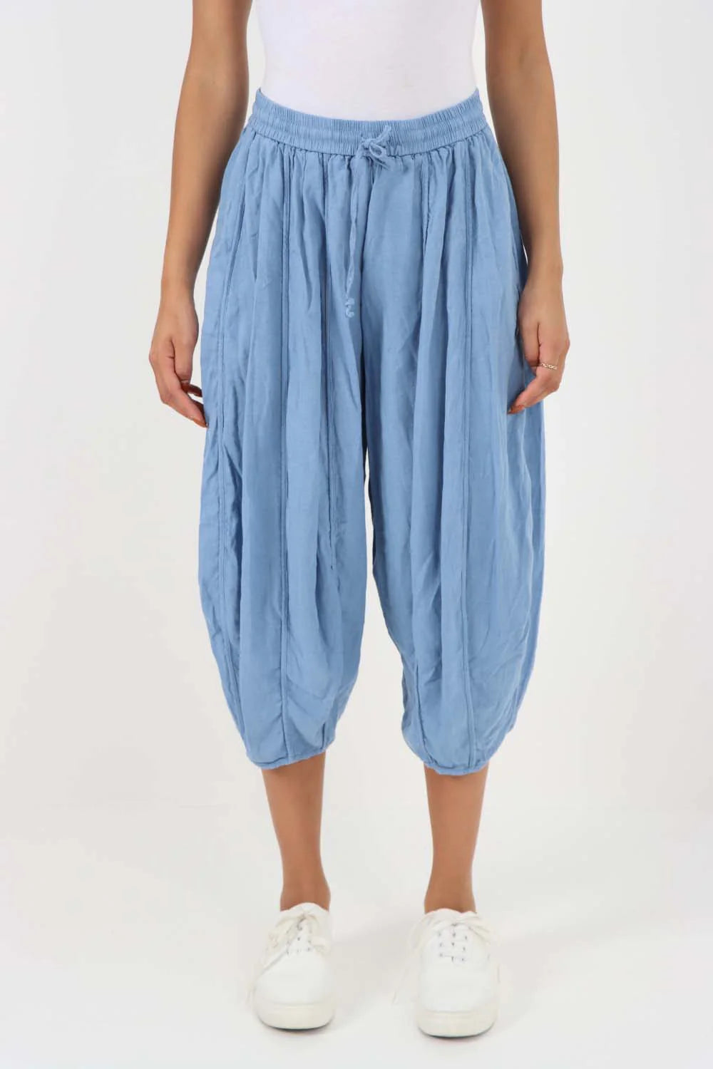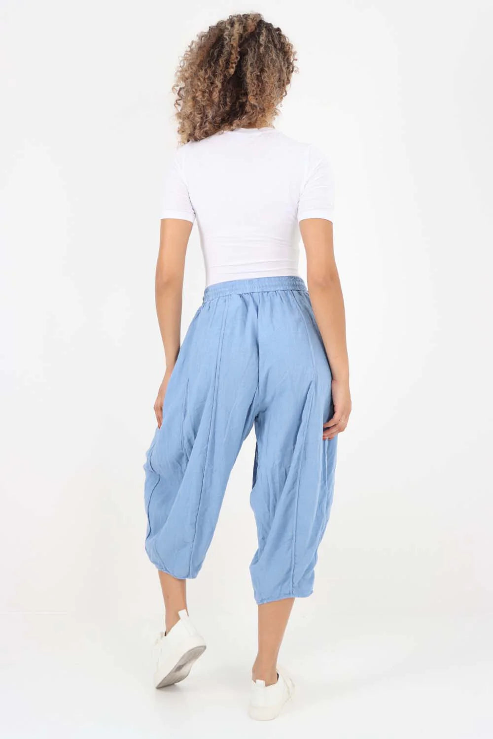 Italian Panelled 3/4 Length Linen Joggers