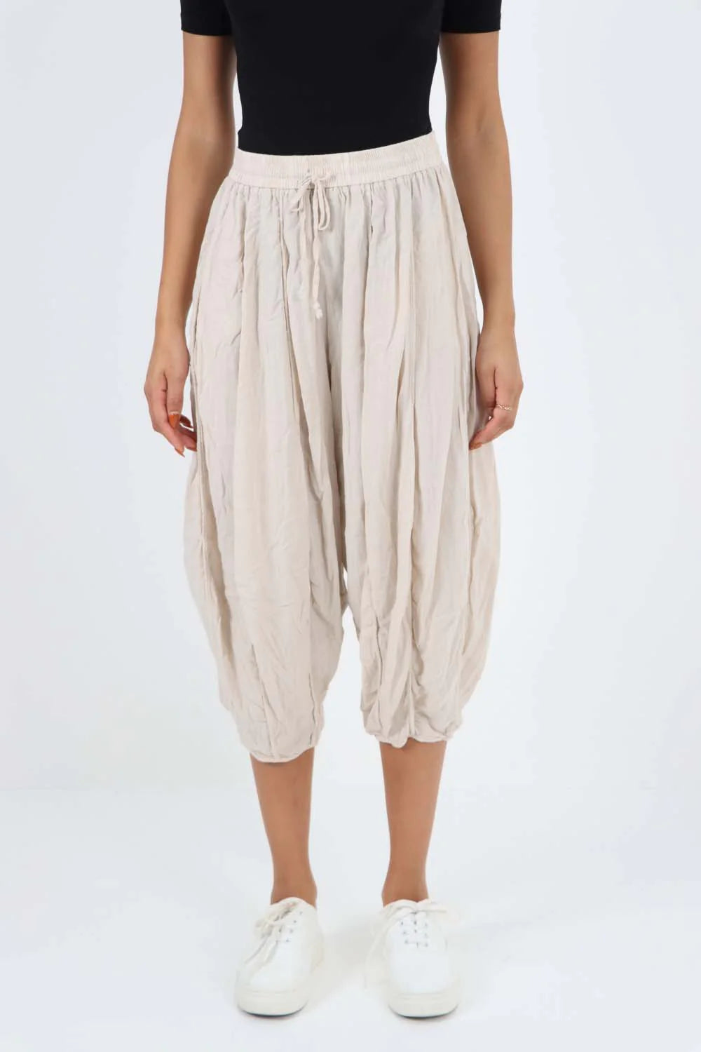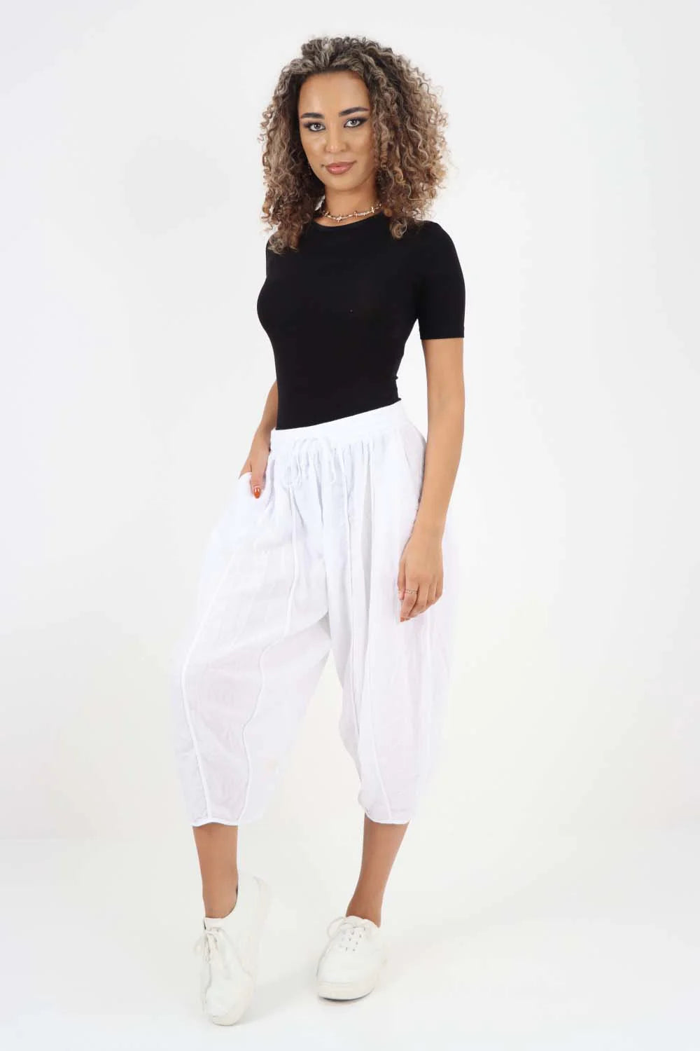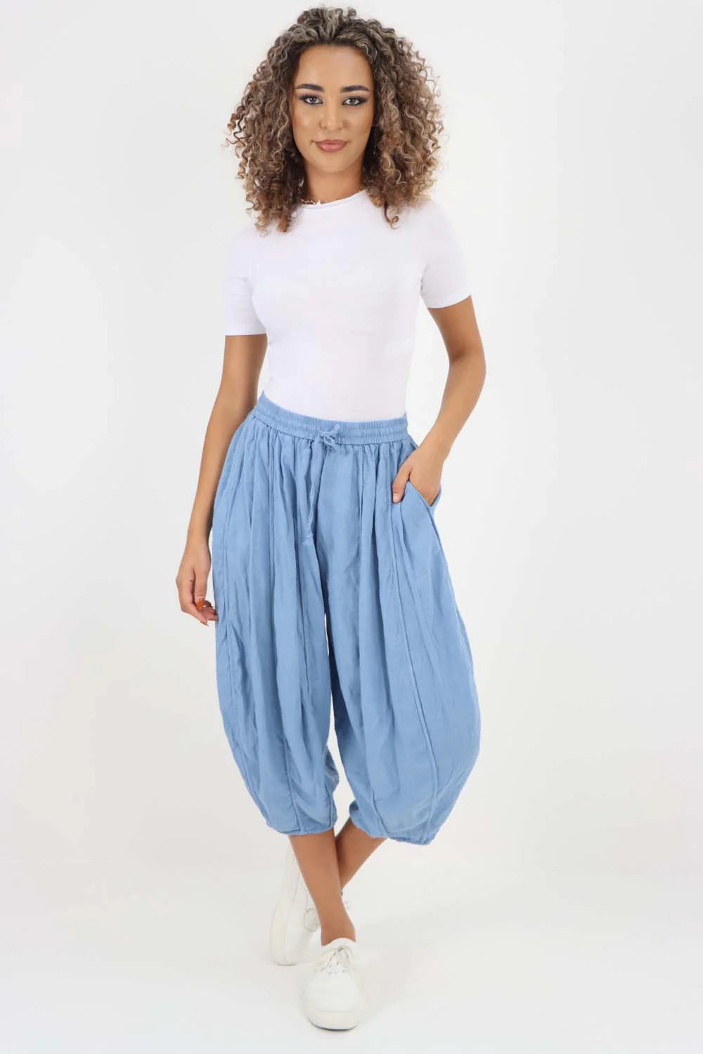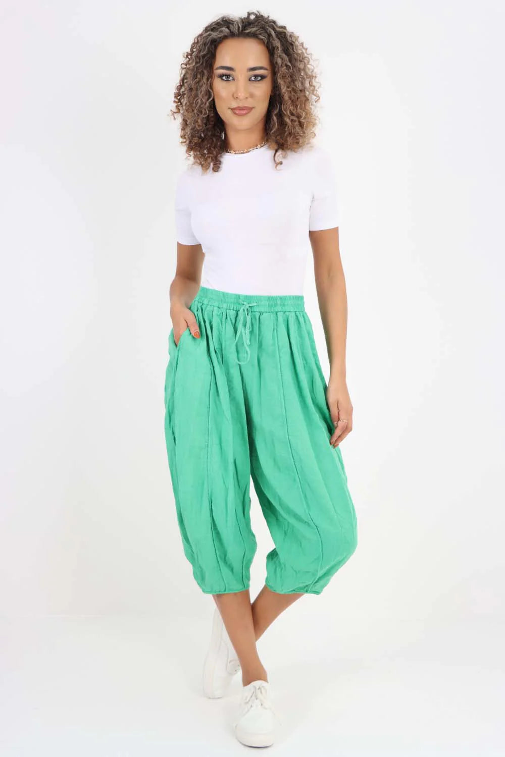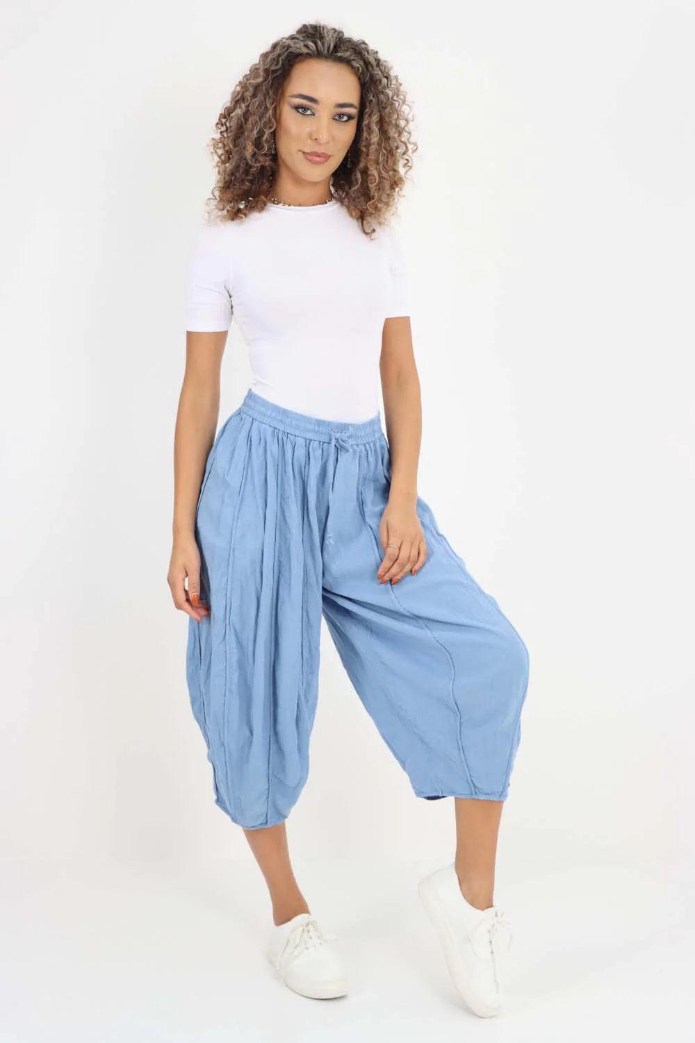 Italian Panelled 3/4 Length Linen Joggers
