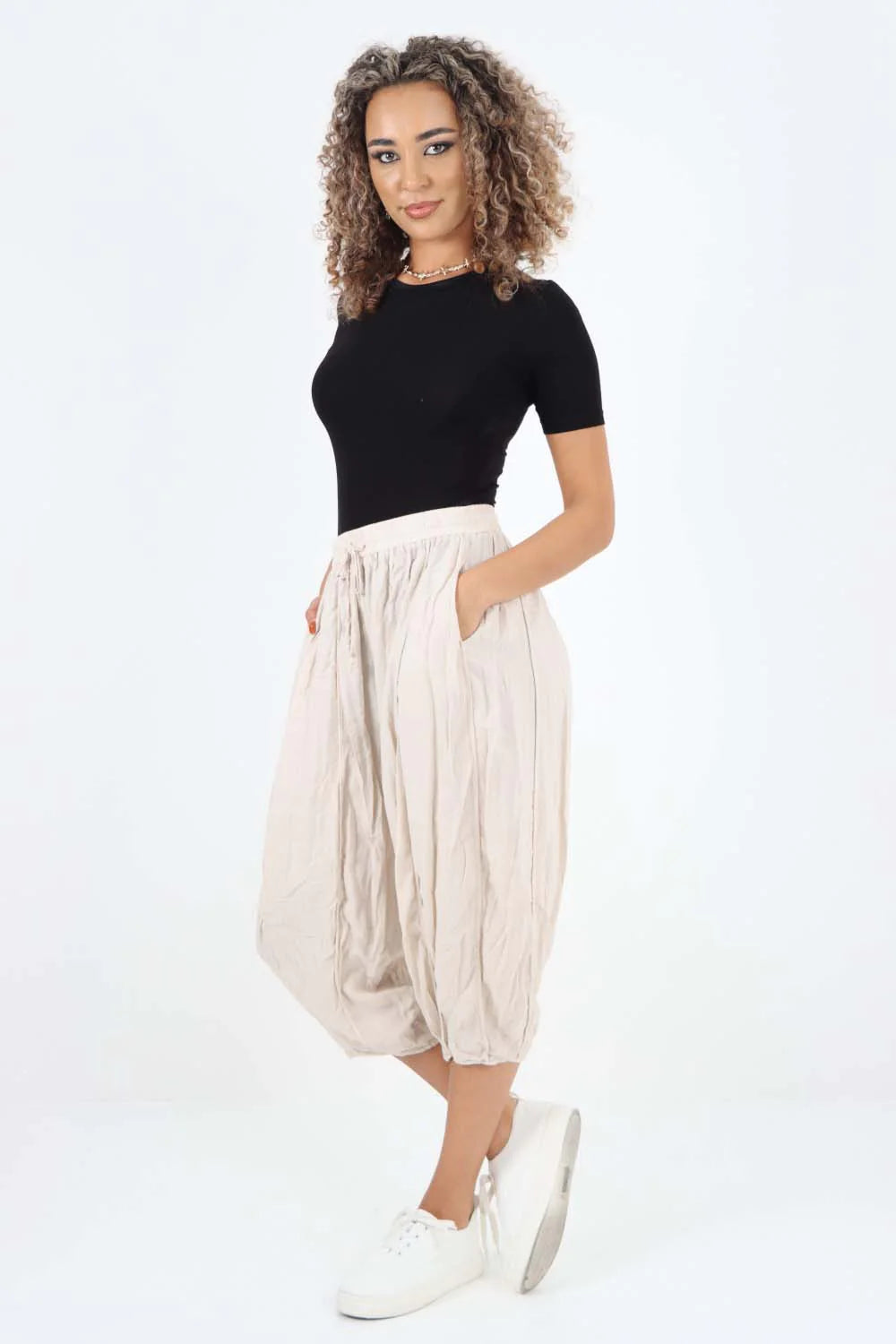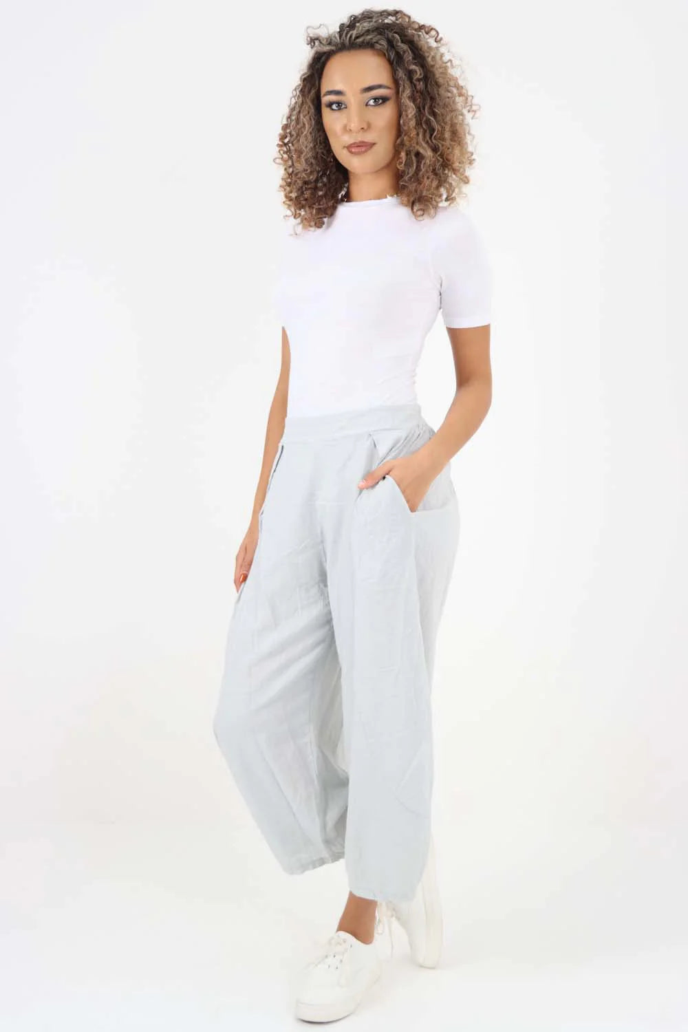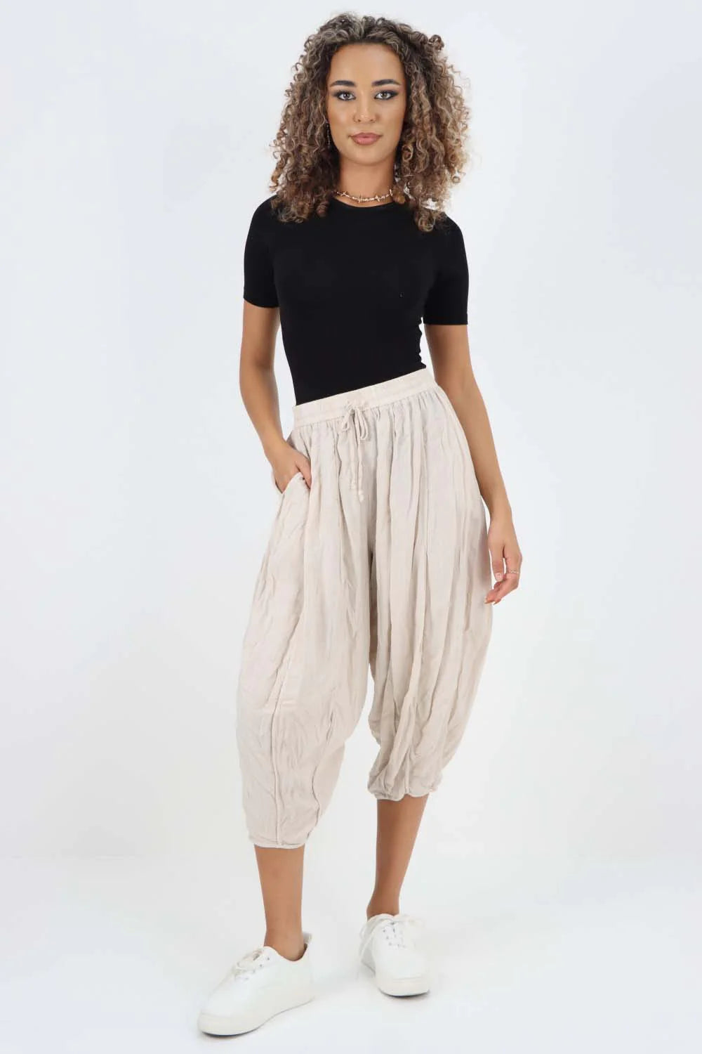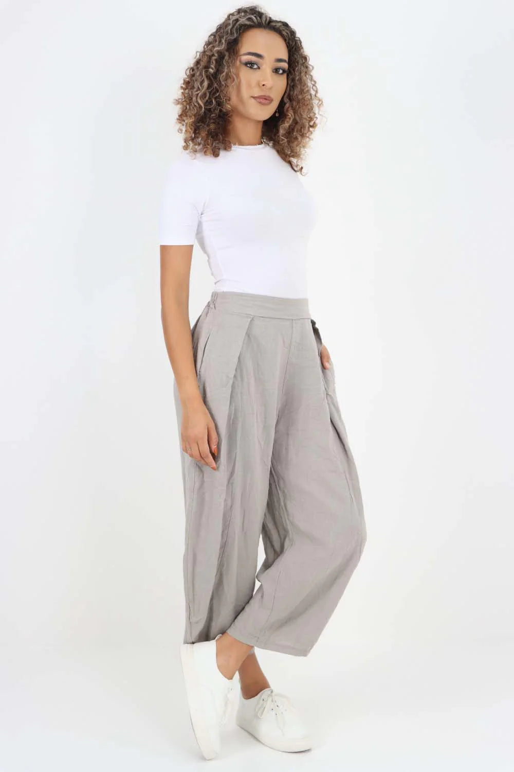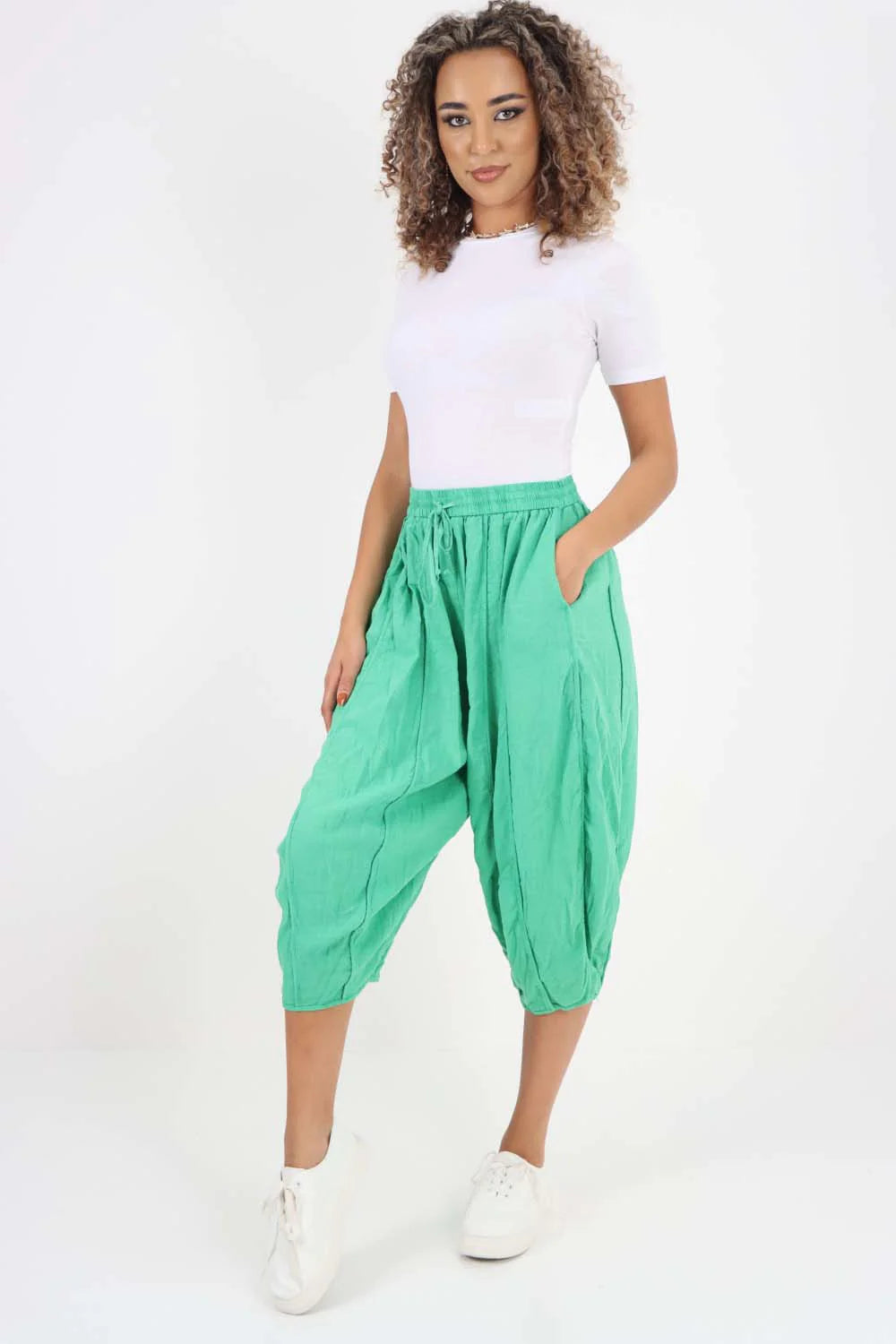 Italian Panelled 3/4 Length Linen Joggers