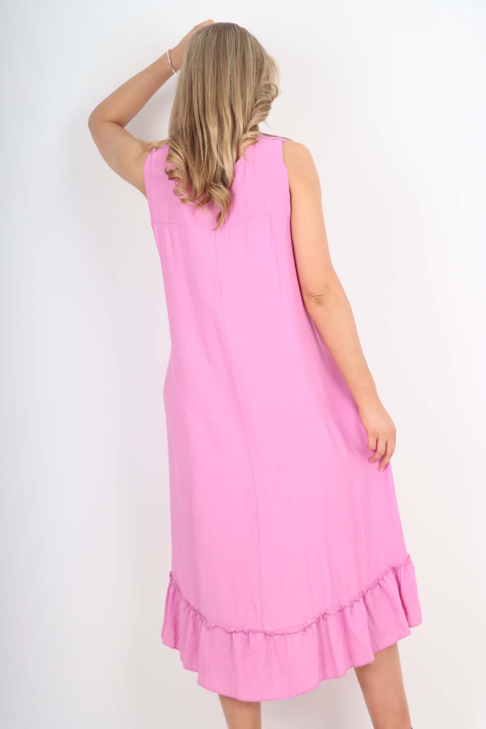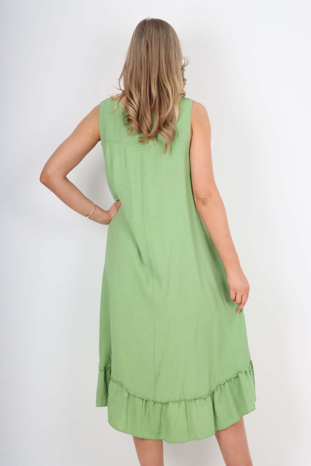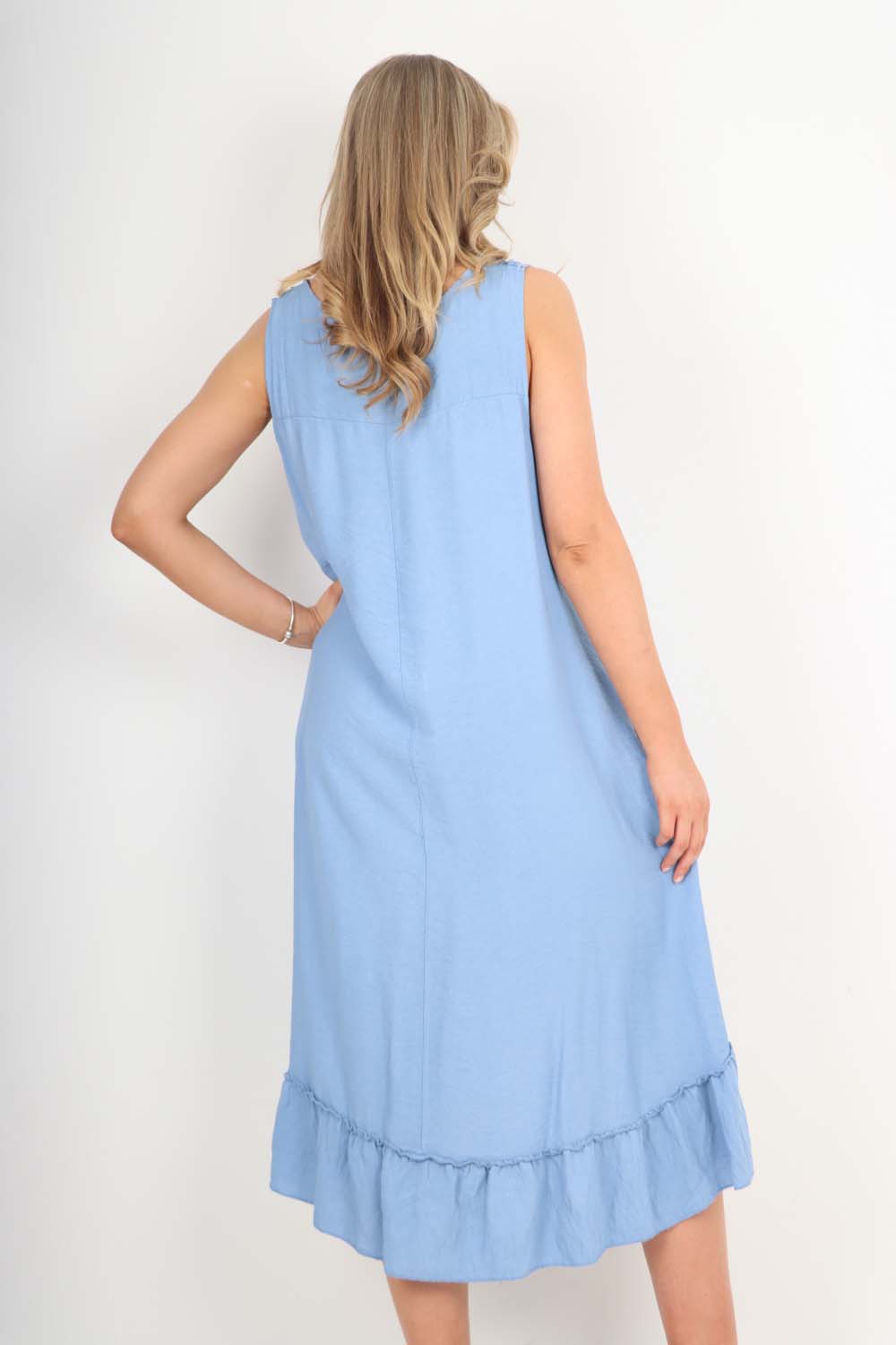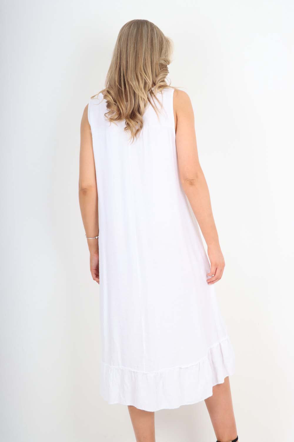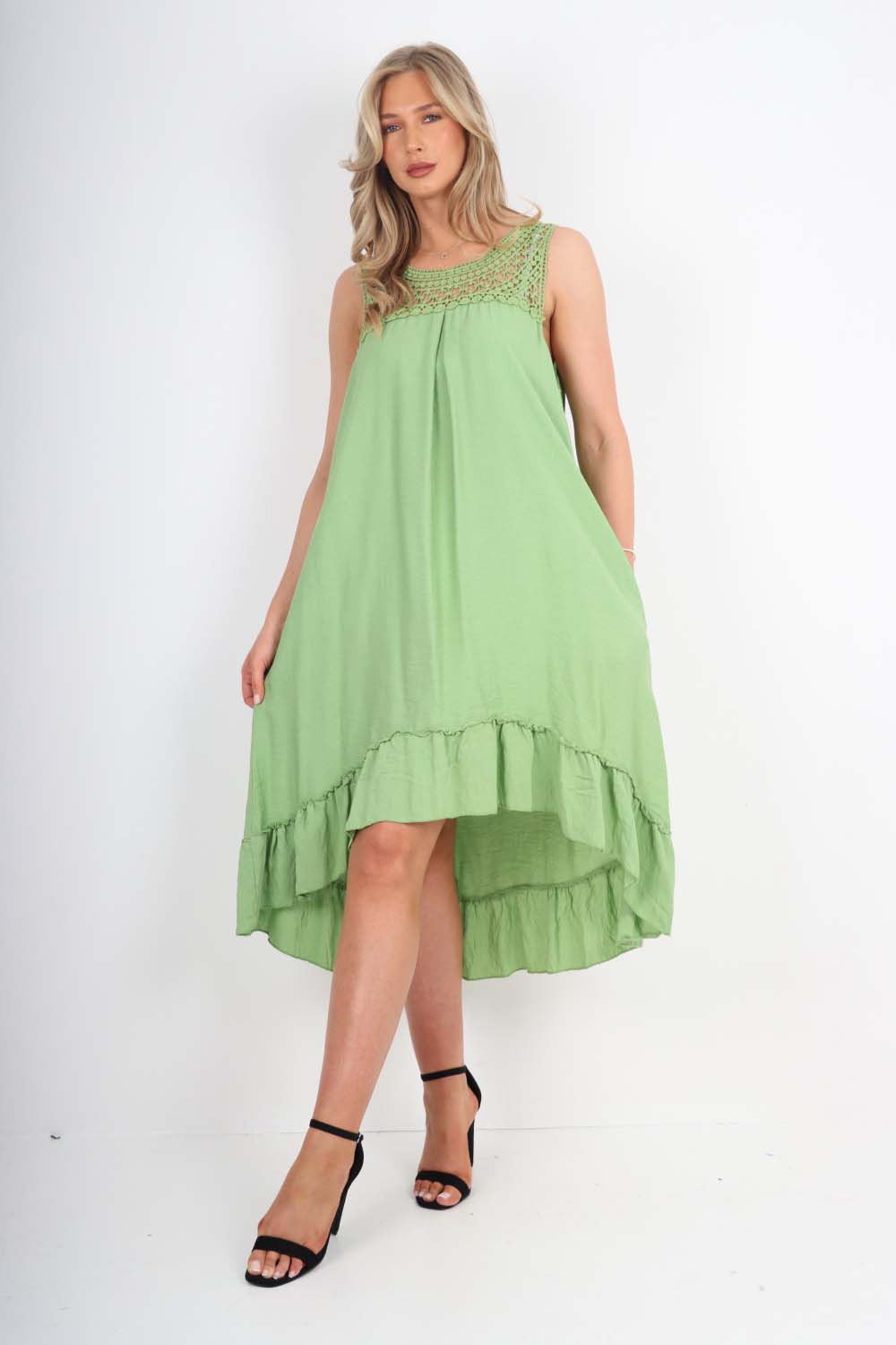 Italian Lace Neckline Dipped Hem Dress