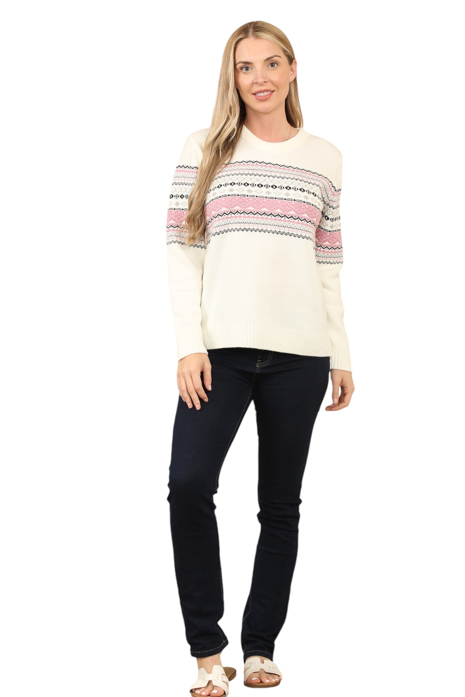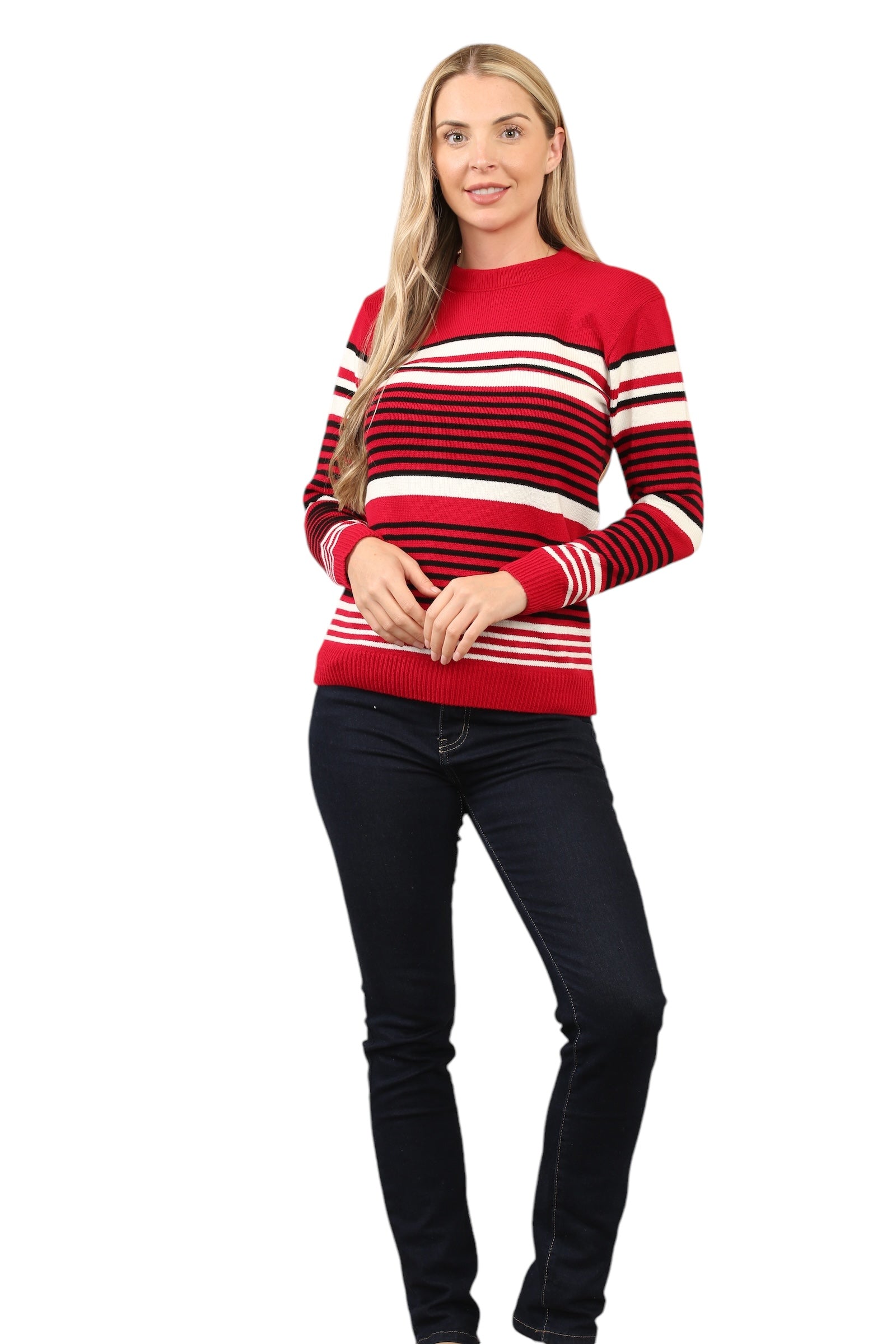 Jacquard Knitted Jumper Striped Sweater Top