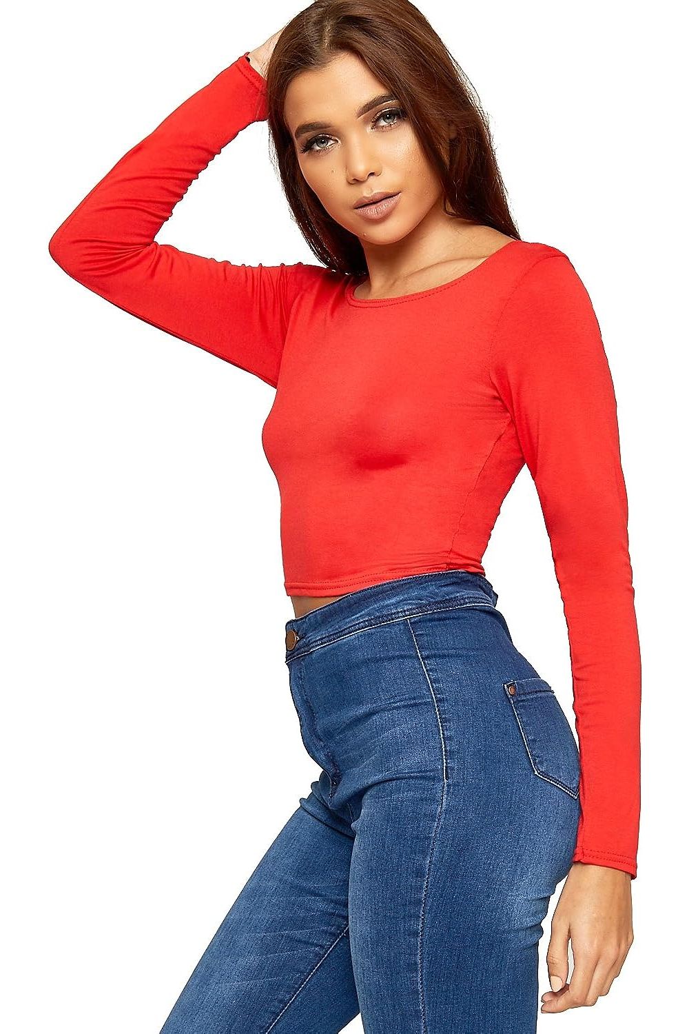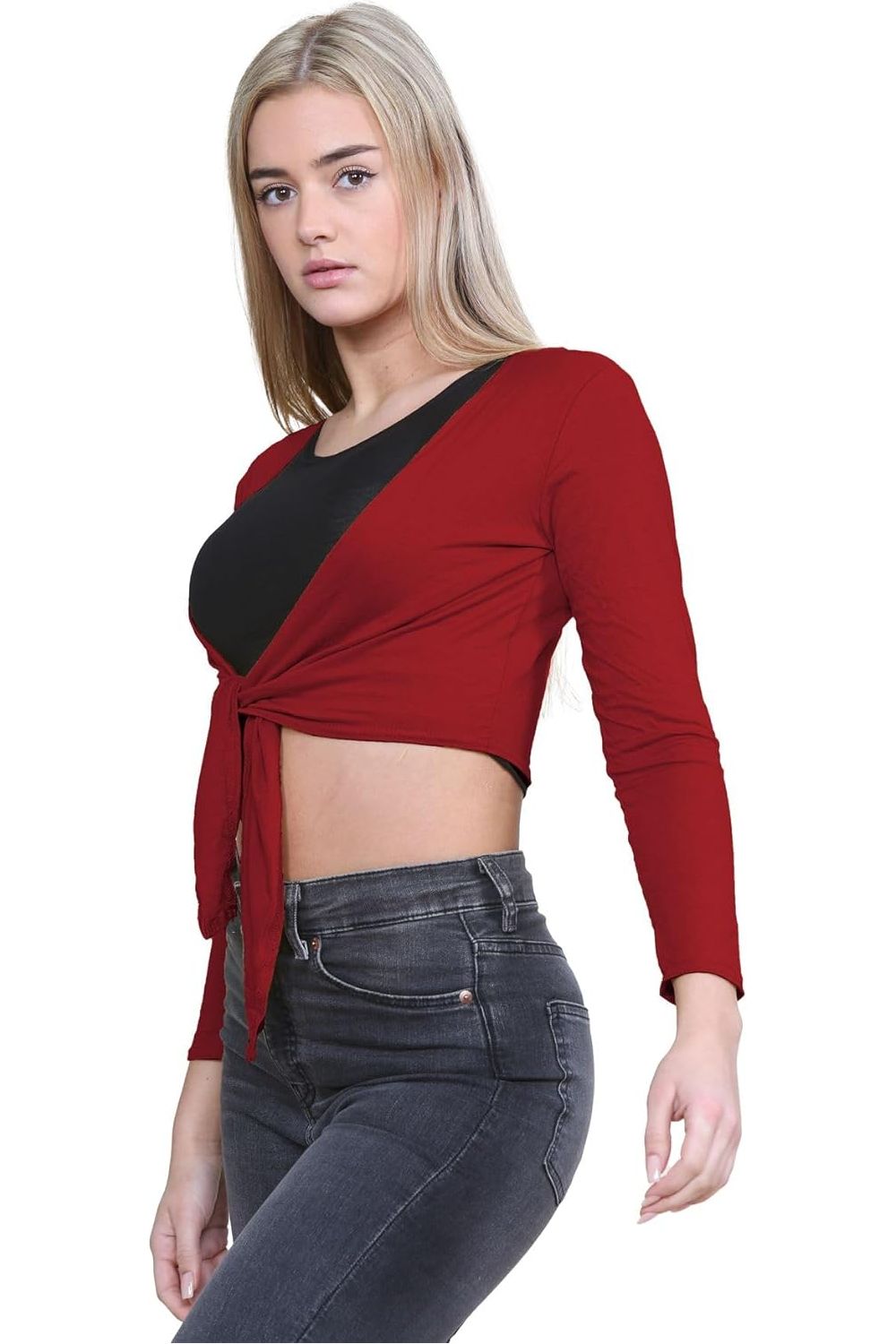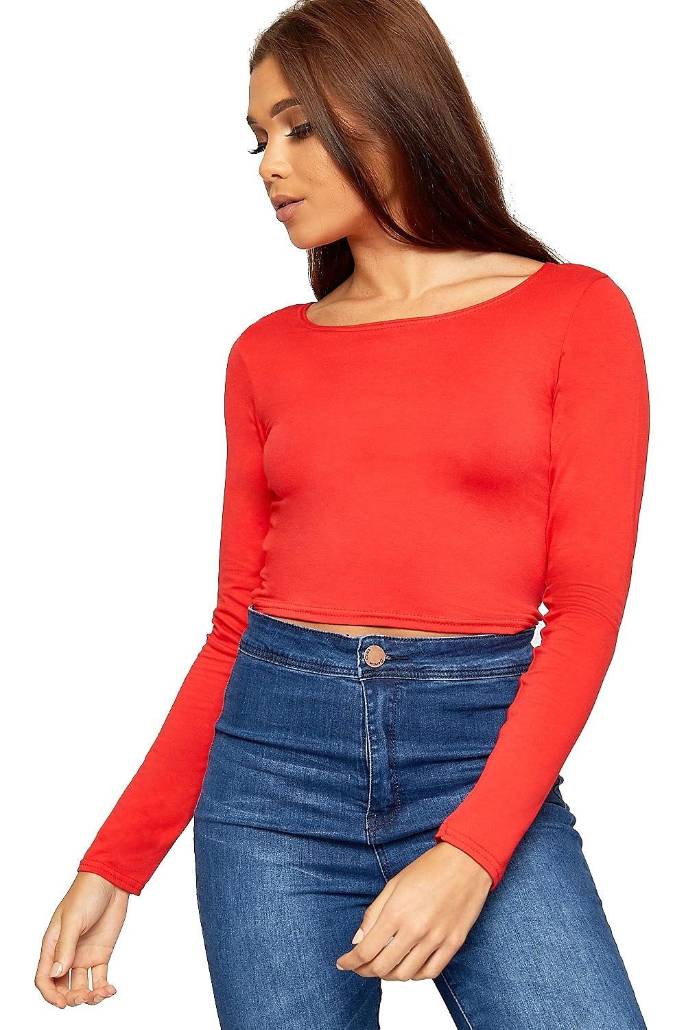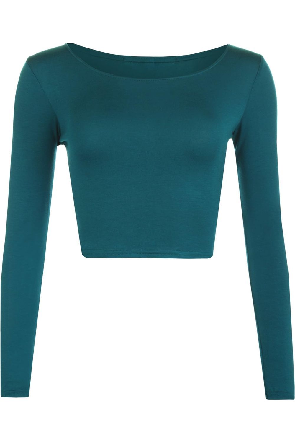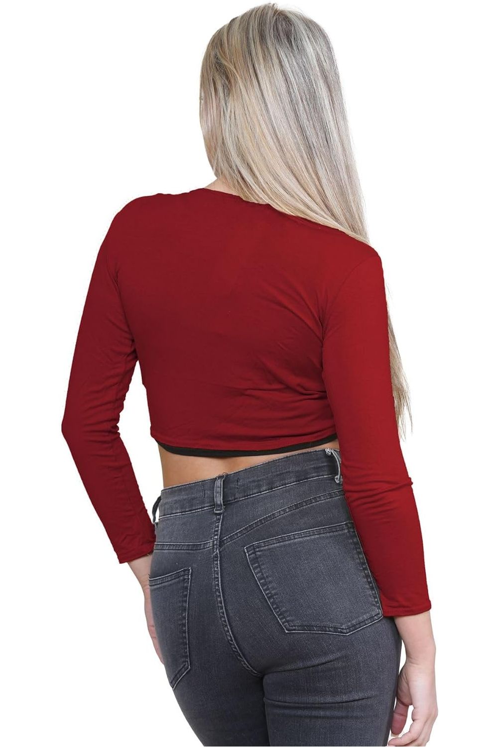 Long Sleeve Printed Crop Tops - Red, Blue, Green Patterns