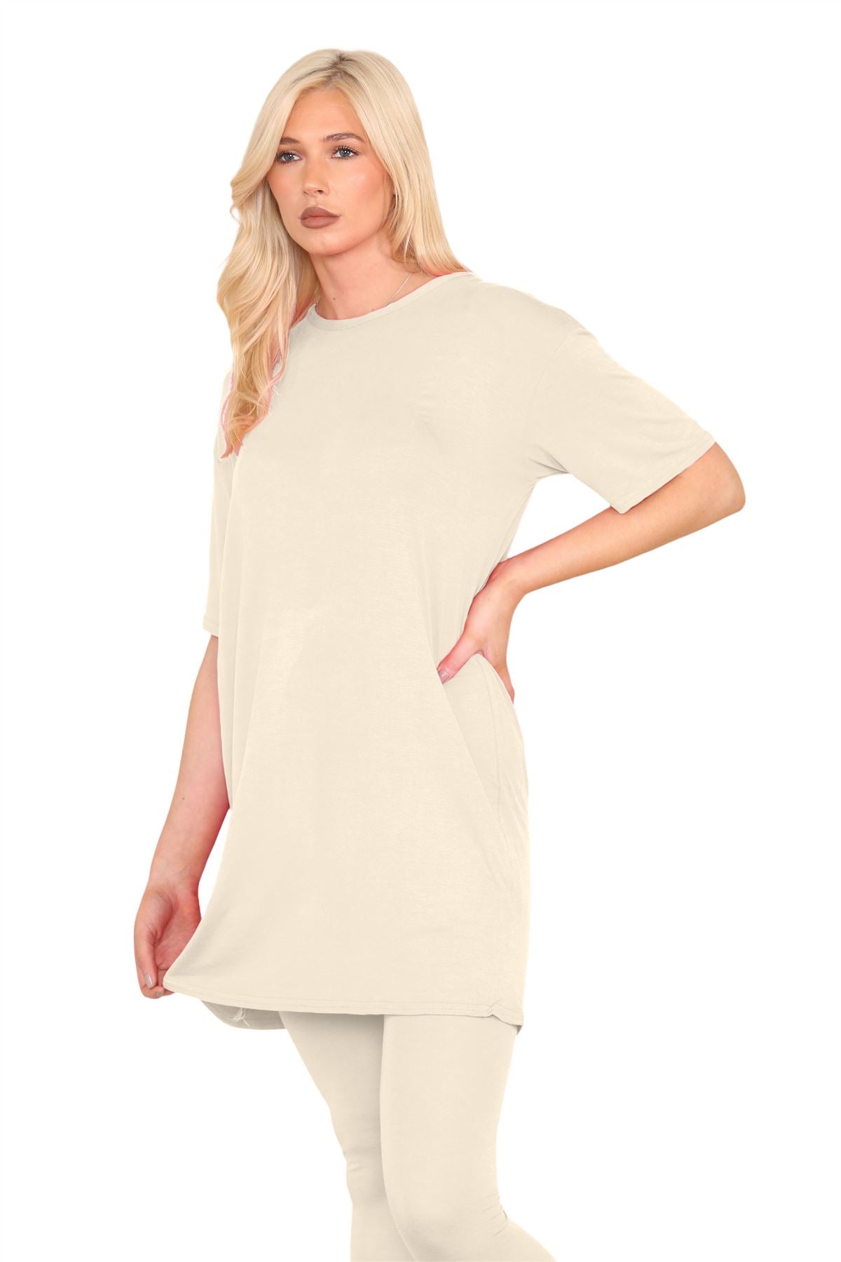Love Side Slit Cycling Short and T-Shirts Co-Ord Two Piece Set with Front Love Slogan