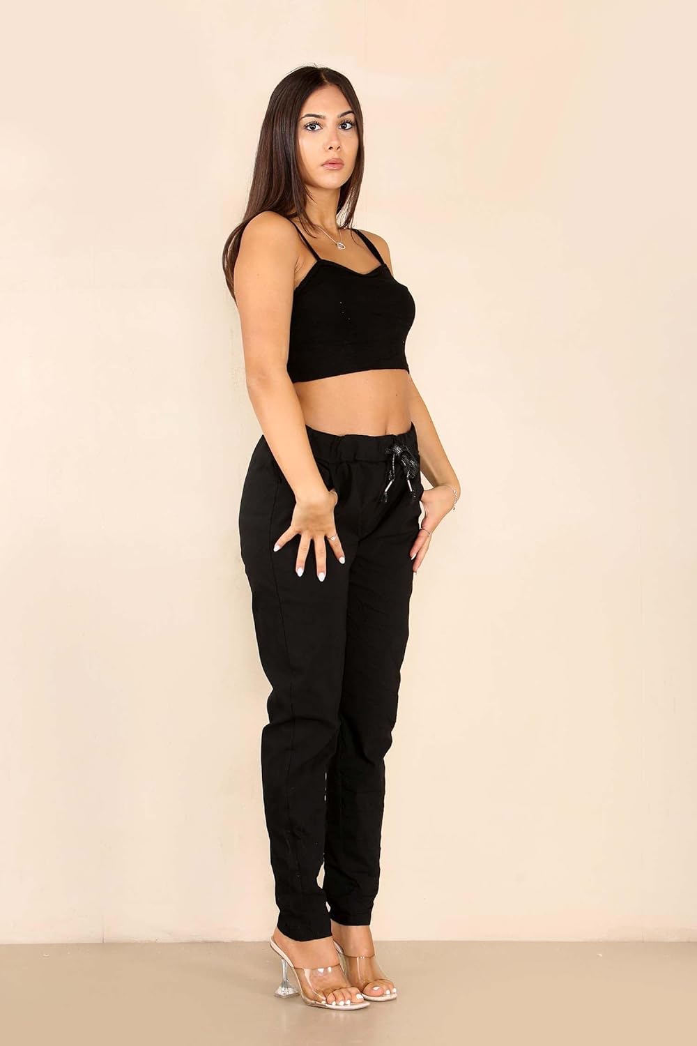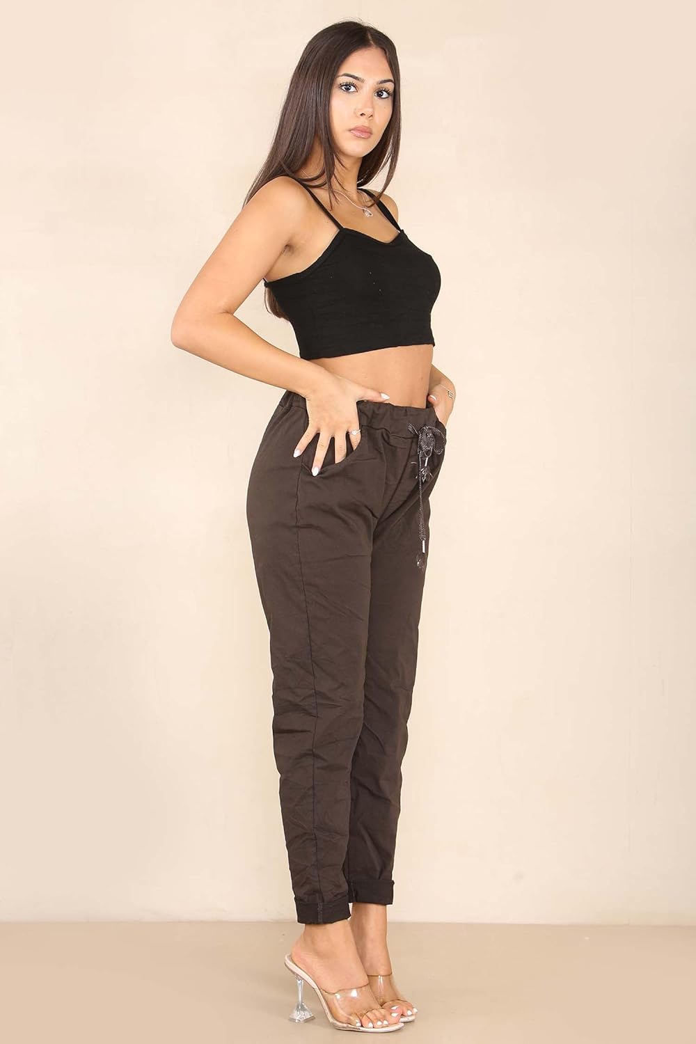 Plus Size Italian Glitter Drawstring Waistband Magic Pants