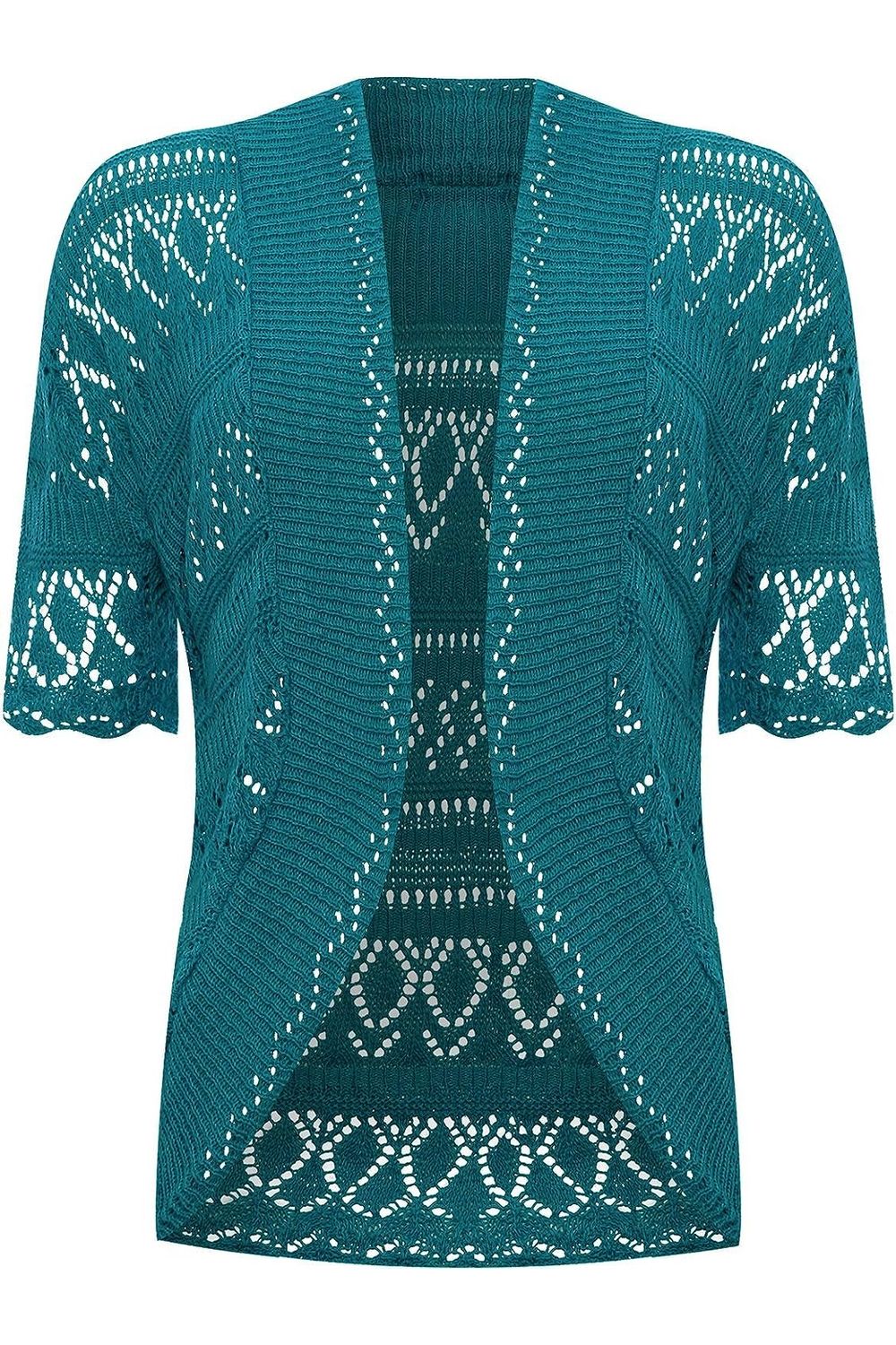 Plus Size Knitted Crochet Short Sleeve Shrug - White Wine Yellow Turquoise