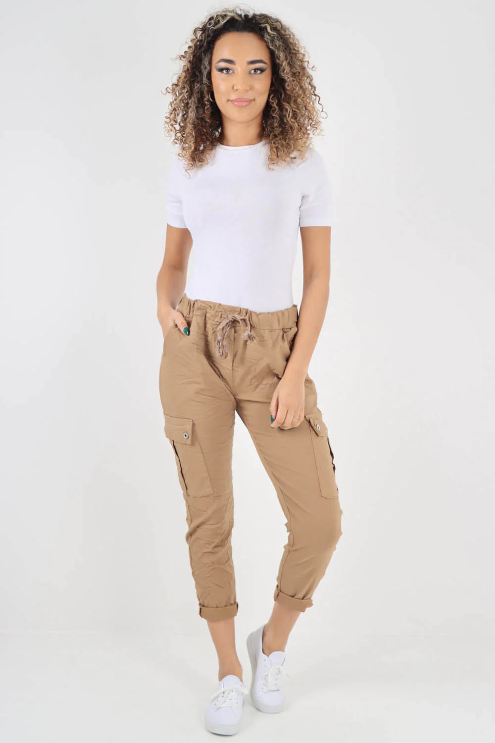 Plus Size Italian Drawstring Waistband Magic Cargo Trouser