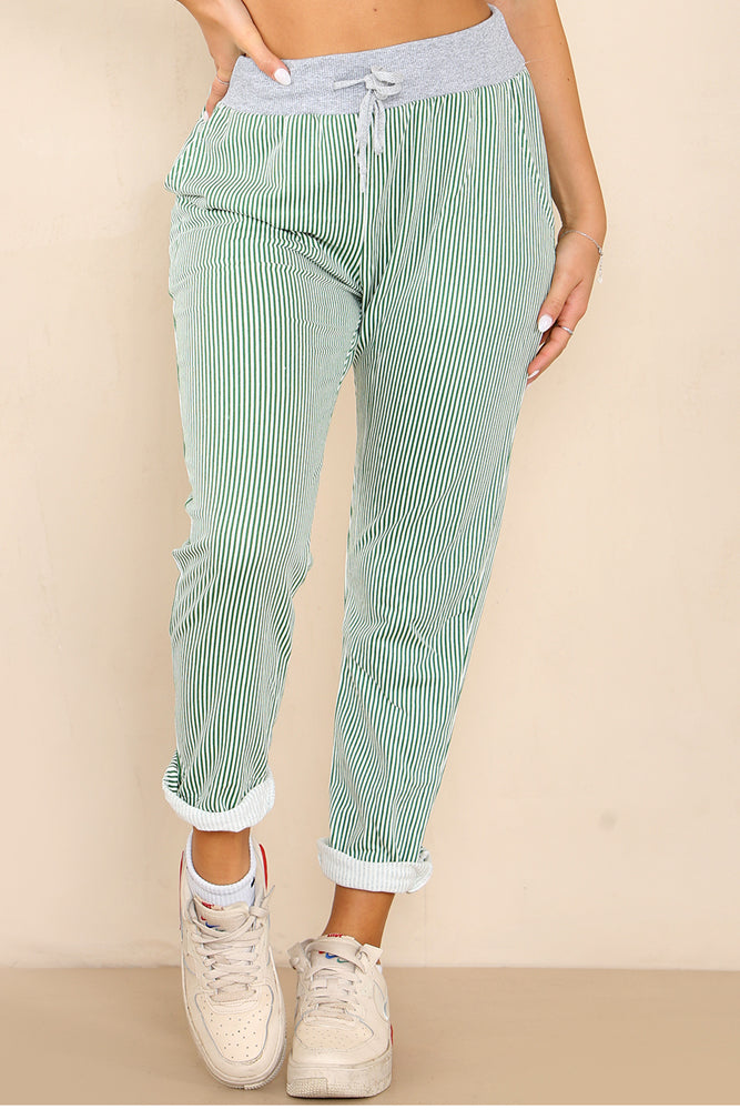 Plus Size Italian Striped Print Drawstring Cotton Joggers